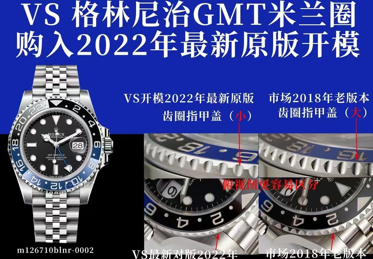 VS 格林尼治GMT 米兰圈 雪碧圈 可乐圈均购入劳力最新2022 年原版开模!非市场 2018 年老版本!圈口齿圈最新2022年是(小齿指甲盖)而老版本是(大指甲盖) 请各位表友注意区分!市场顶级天花板GMT 。