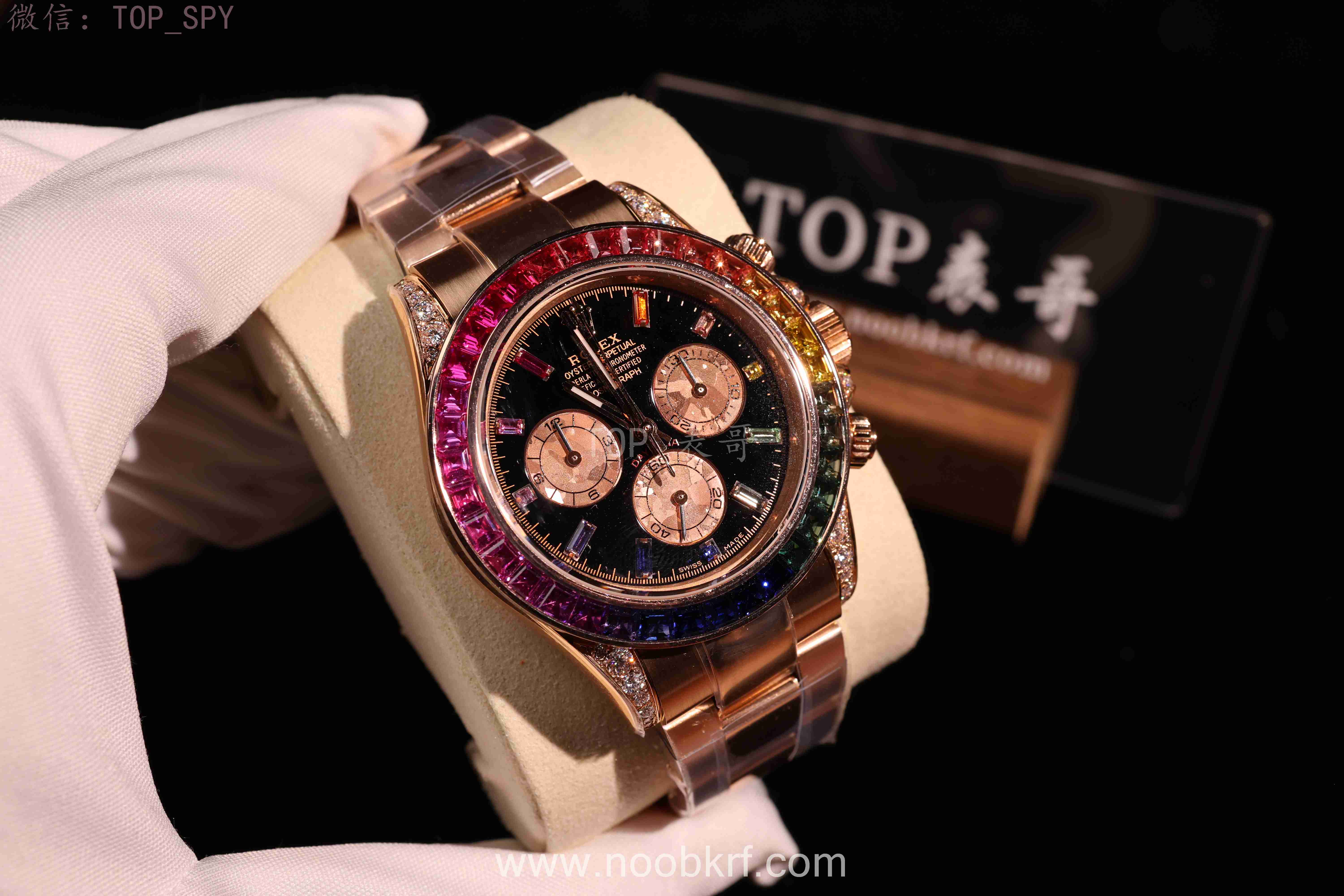 hello,大家好,我是TOP表哥,今天带给大家的腕表评测来自RX工厂的“满改”版本的劳力士彩虹迪,腕表官方型号:劳力士宇宙计型迪通拿系列116595 RBOW腕表(彩虹迪)。