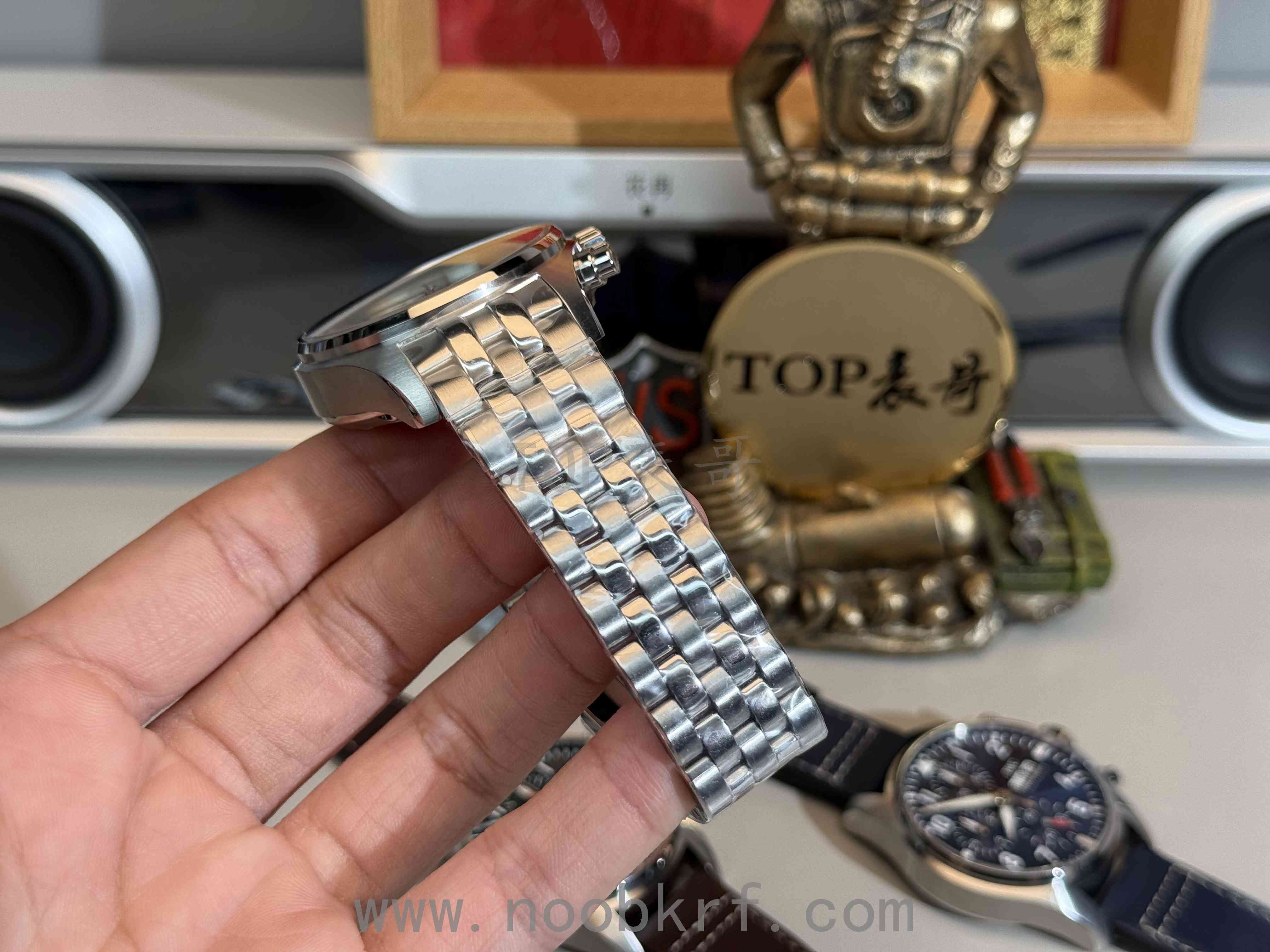 目前APS工厂的新款万国飞计41只要钢带和皮带的快拆组合,胶带版本不知道后期会不会同步更新。在钢带打磨和细节的倒角方面,通过实物上手差异是不小的,目前表哥还是建议搭配皮带或者订做表带会更好。