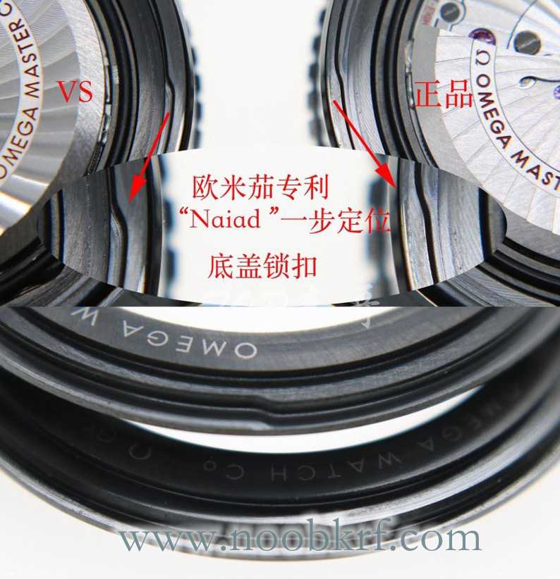 2,欧米茄获得专利的全新陶瓷Naiad锁扣技术,确保定向旋入式表背上镌刻的字样能始终保持在合适的位置,以便欣赏表背的精美设计。”正品的这个结构,VS也是复刻的完全一致。有什么用呢?简单的说,就是以后买到的VS版本的“深海之黑”,每一只表底盖上的字体位置都能做到如下图,正正的。不用再纠结底盖字体的位置不正了。