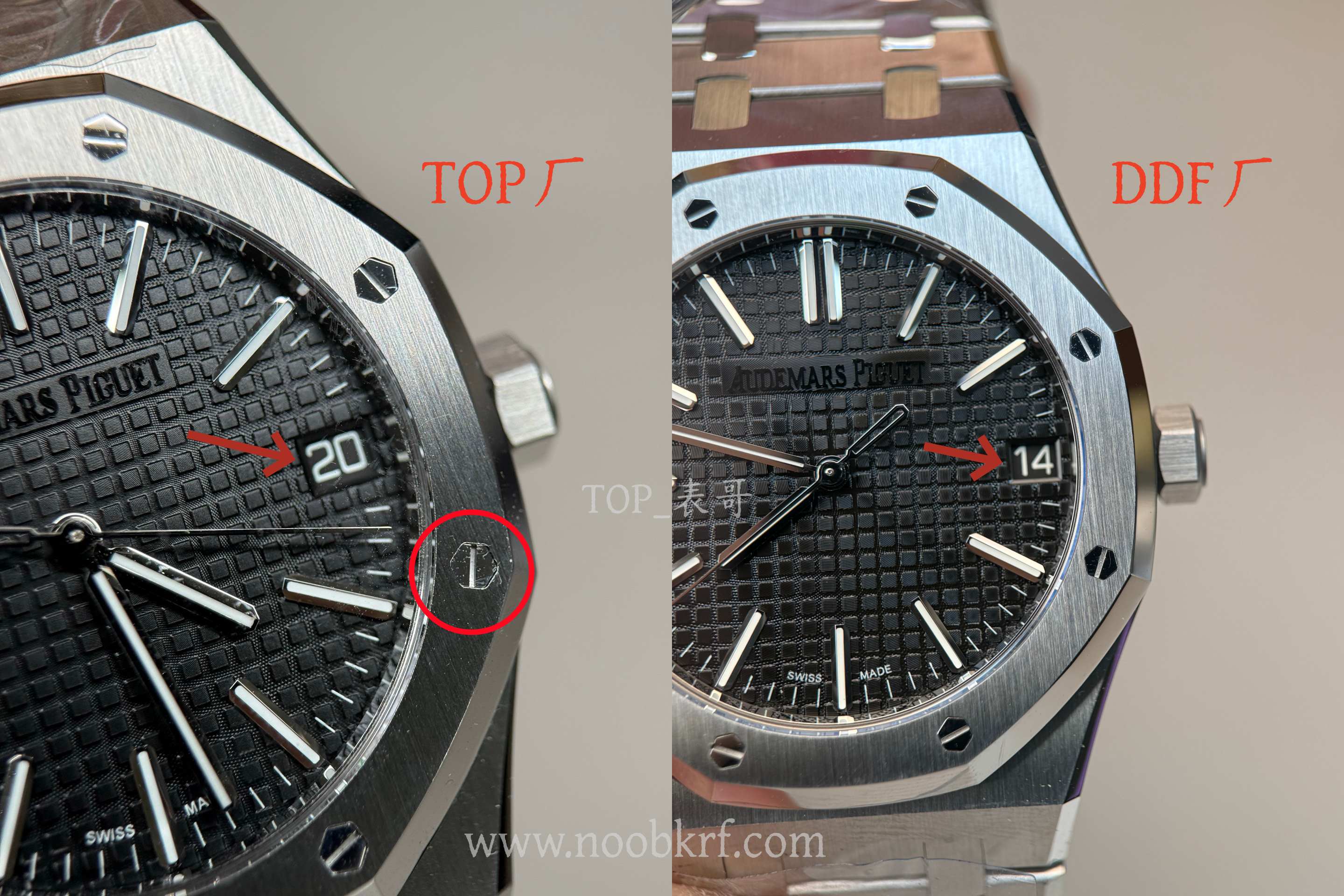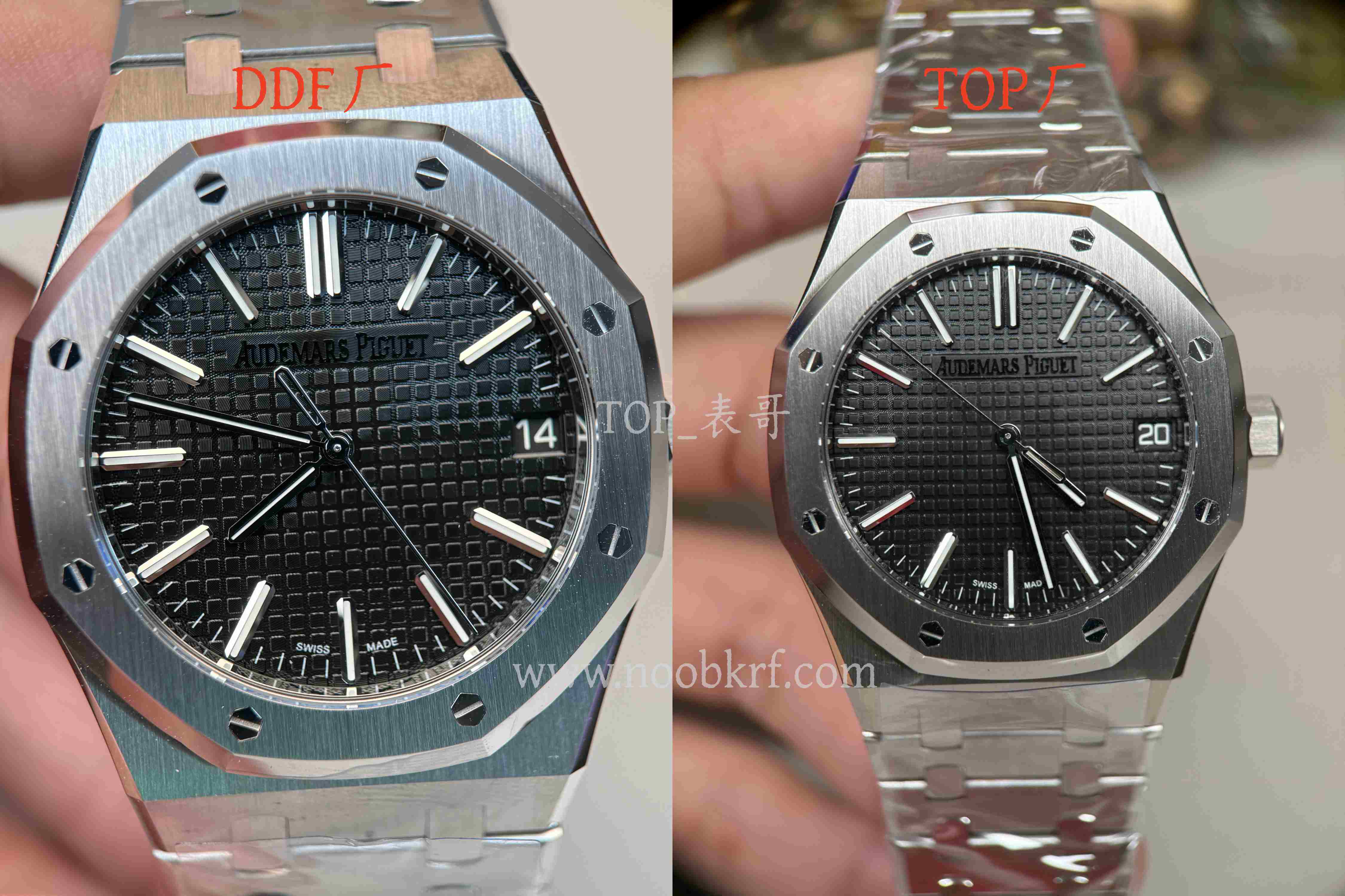 在介绍DDF工厂的爱彼15510之前先给大家对比一下之前的TOP工厂的爱彼15510,其实在整体的外观部分真的的非常难以分辨那个更好更加接近正品,并且单独看盘面的颜色来说均是做工水准非常高的,黑盘原本的色差并不是非常大,另外则是在反光的时候不会呈现类似APS工厂那种油腻的感觉,这一点来说TOP工厂和DDF工厂都要比APS工厂要更加对版的。