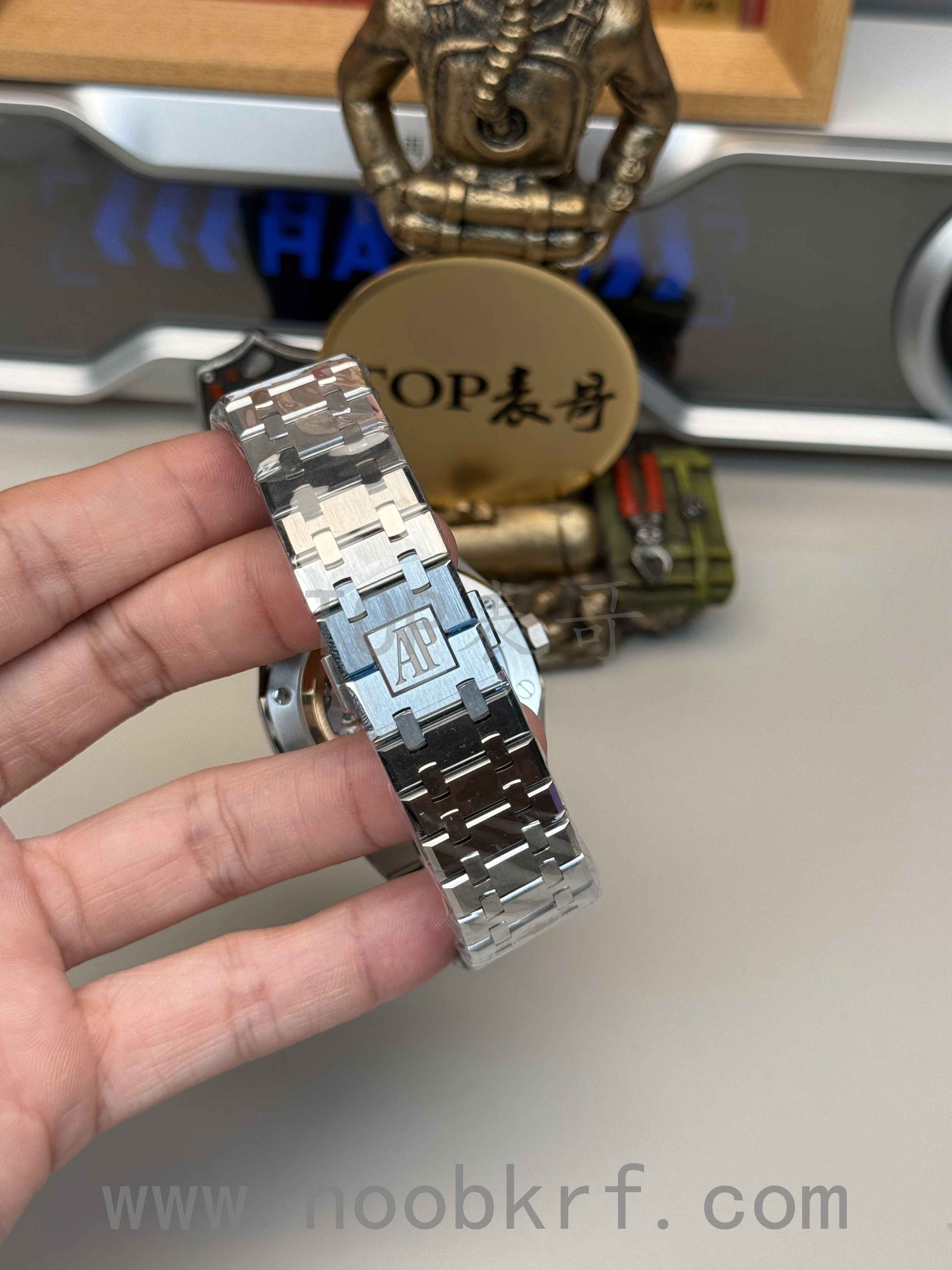 通过几个细节点的差异,不难看出来DDF工厂的爱彼15510ST精钢黑盘在细节的处理上要比TOP工厂的爱彼15510ST精钢黑盘腕表好,也不难怪在价格上DDF工厂相比较TOP工厂贵出了200的差价,所以目前来说无论是追求更加好的版本,表哥还是推荐DDF工厂的爱彼15510ST黑盘,而在其他蓝盘、白盘、绿盘颜色上目前由于表哥还没有拿到DDF工厂的实物暂时没办法给大家做出客观的评测,希望大家谅解!最后给大家看看DDF工厂爱彼皇家橡树1551ST精钢黑盘腕表的实拍!