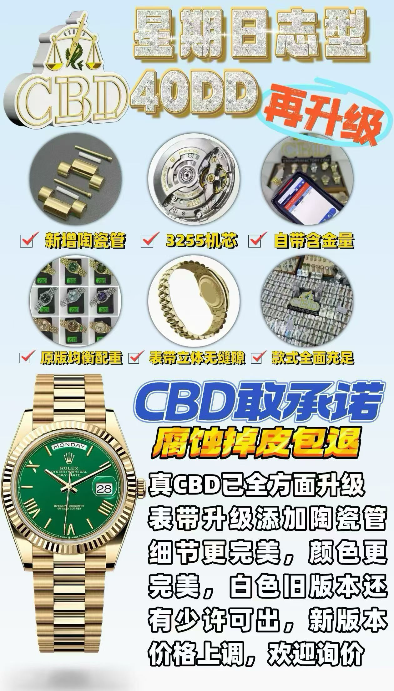 对于CBD工厂的劳力士星期日历型腕表,表哥做过非常多详细的评测,其优点就是内置的配重材料钨钢与外层精钢的完美结合,重量上做到了无限接近原版一致的克重,另外则是做到原厂镀金表壳不蜕皮,同时也能完美的适配厚包金加工处理。
