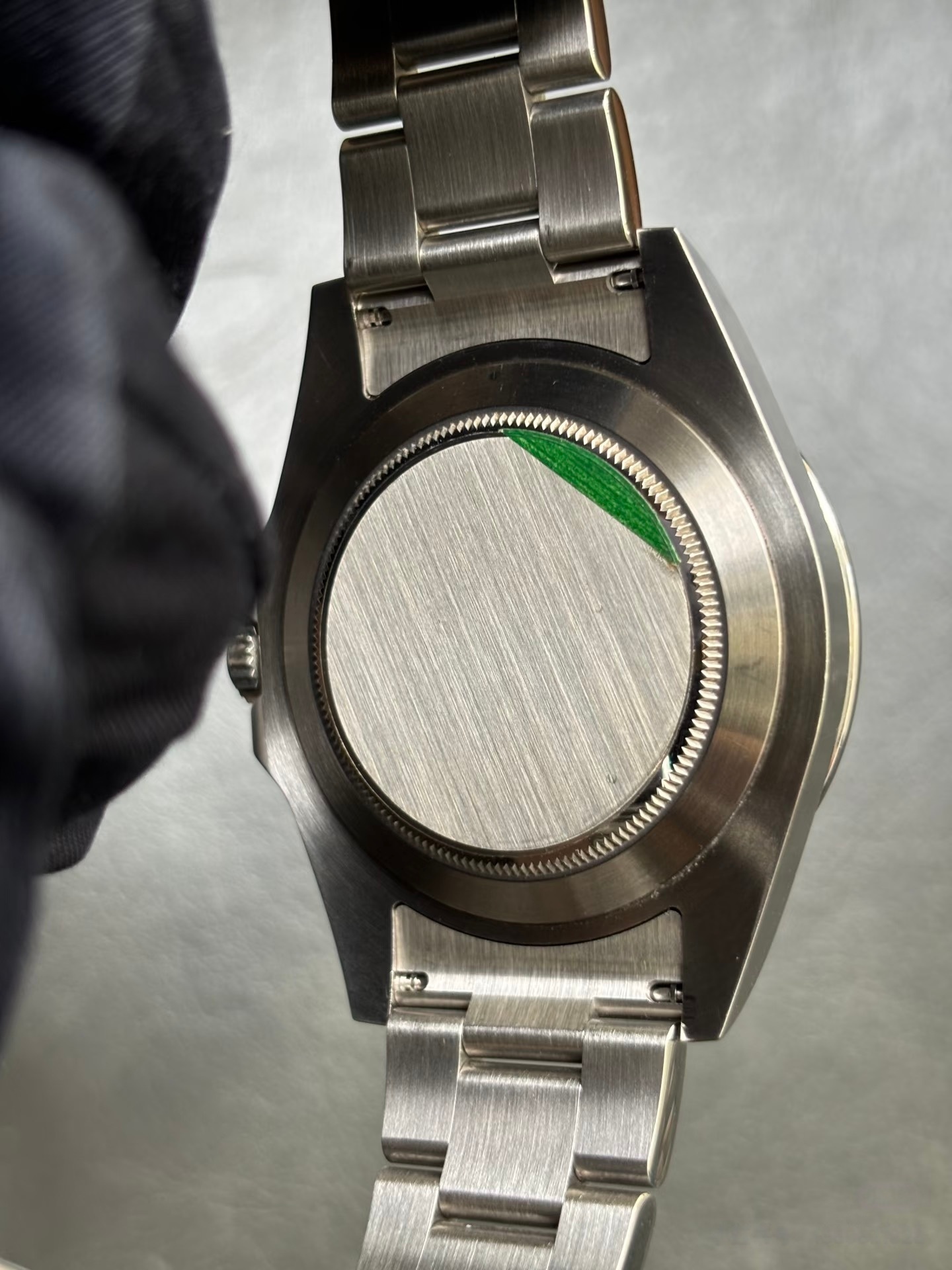 表冠采用劳力士经典的旋入式三扣锁三重防水系统,搭配密封垫圈,拧紧后可完全隔绝水汽,确保100米的防水深度,满足日常游泳、洗漱等涉水需求,无需担心水汽进入机芯造成损坏。表壳采用一体成型中层结构,旋入式底盖紧密贴合表壳,不仅提升了防水性能,还能有效保护机芯,减少外部震动对机芯的影响,整体做工严苛,彰显劳力士顶级品控。