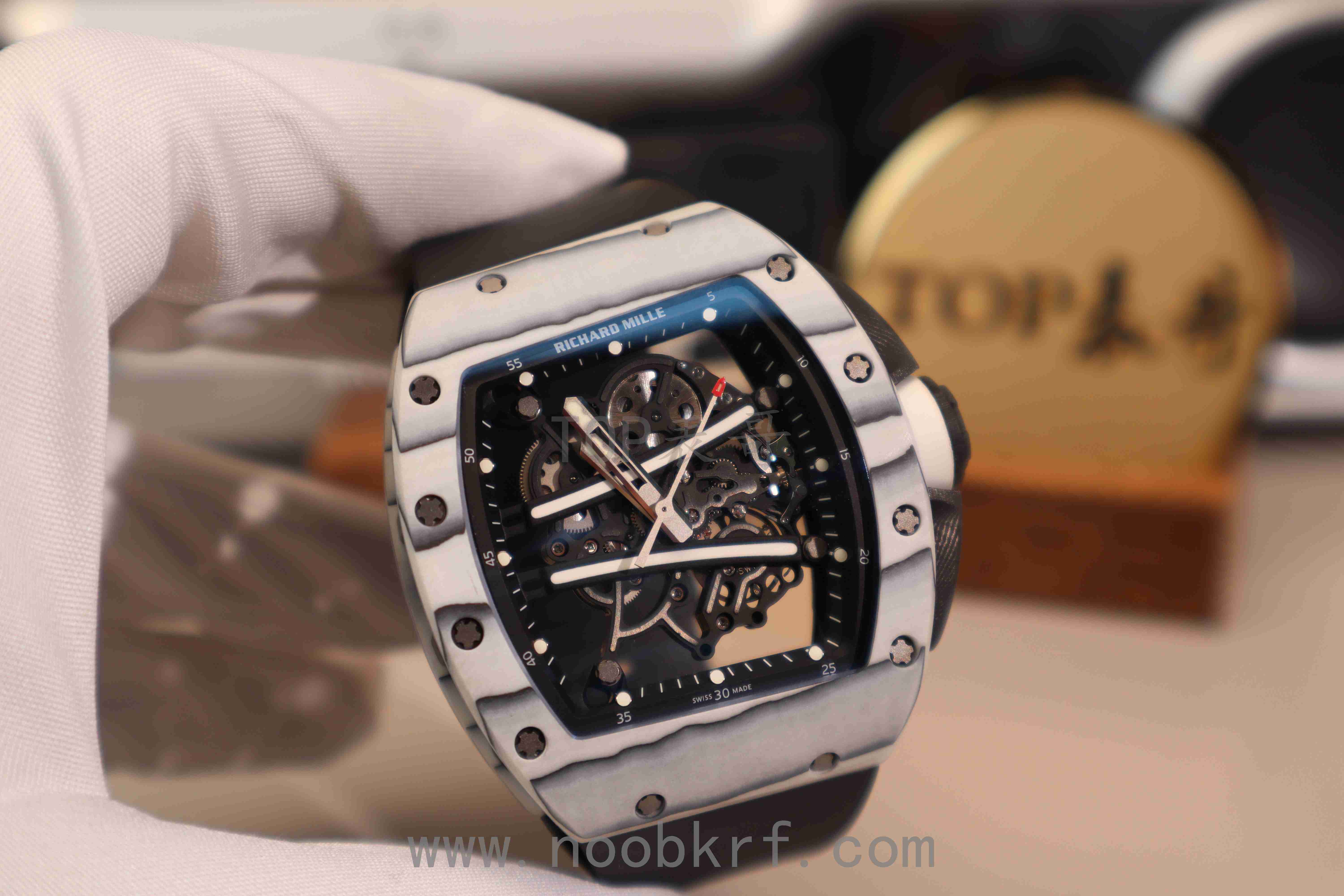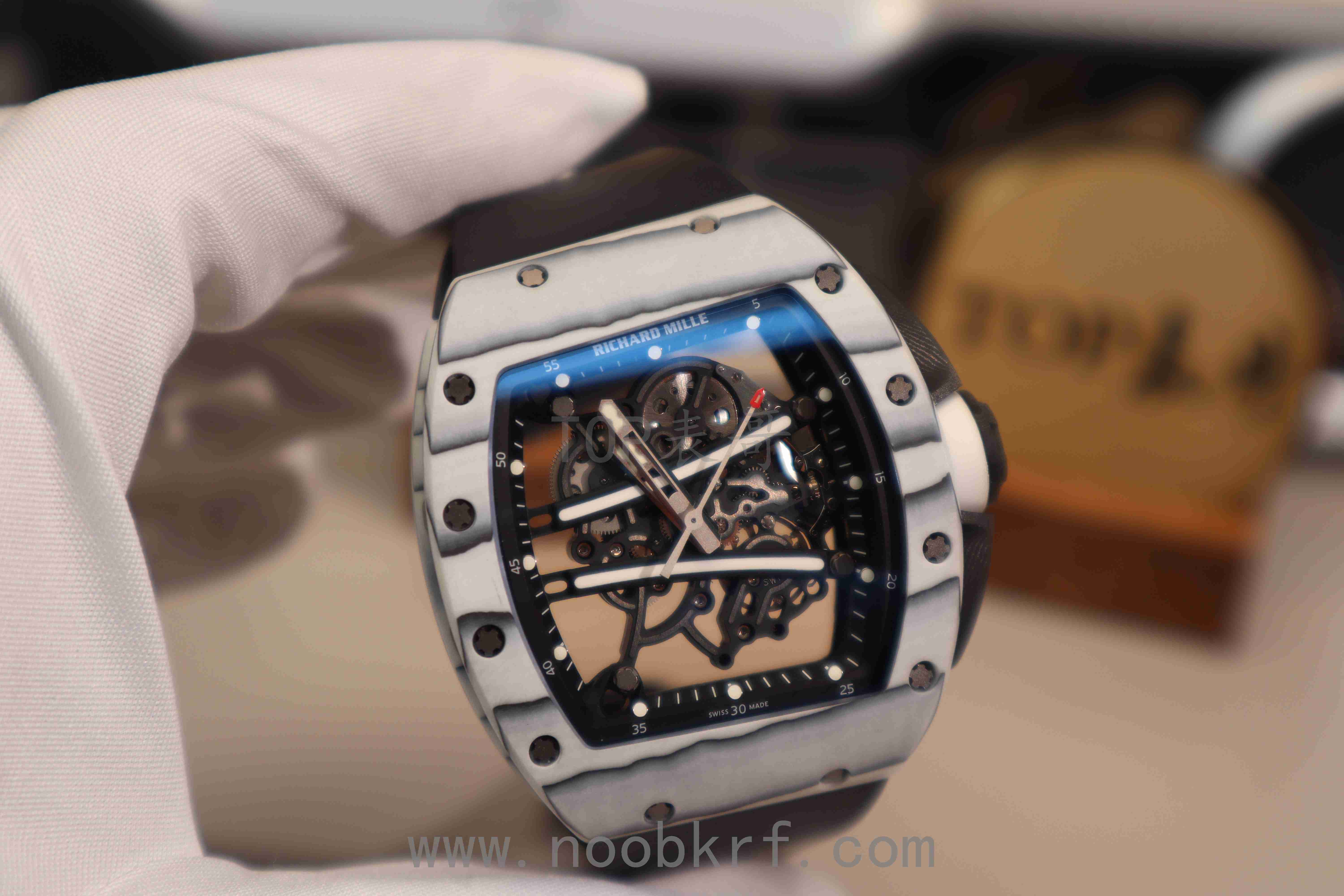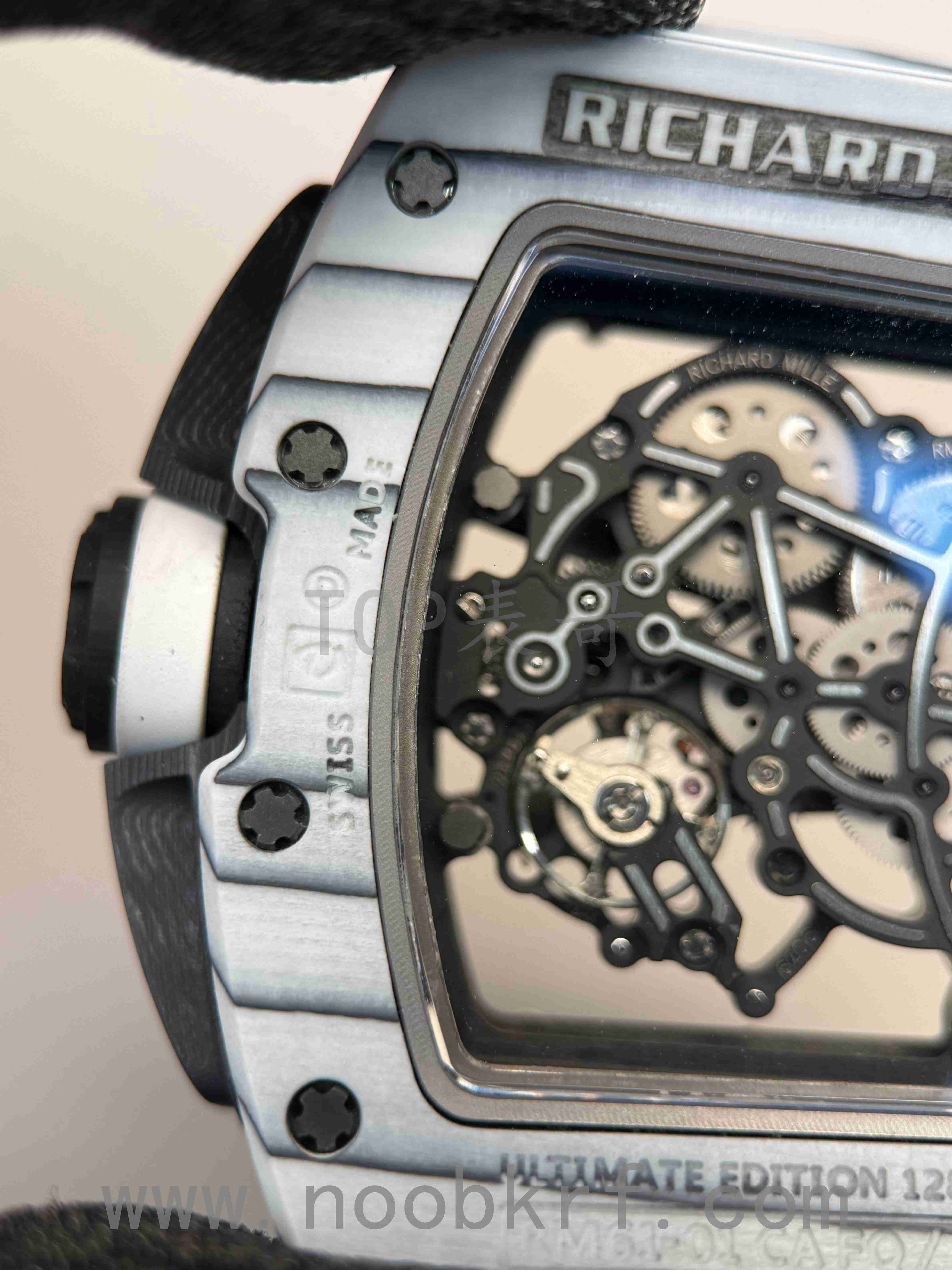 RM61-01 白跑道:白色 NTPT 碳纤维 / 白陶瓷,超轻量 (约 80-100g),高抗刮性