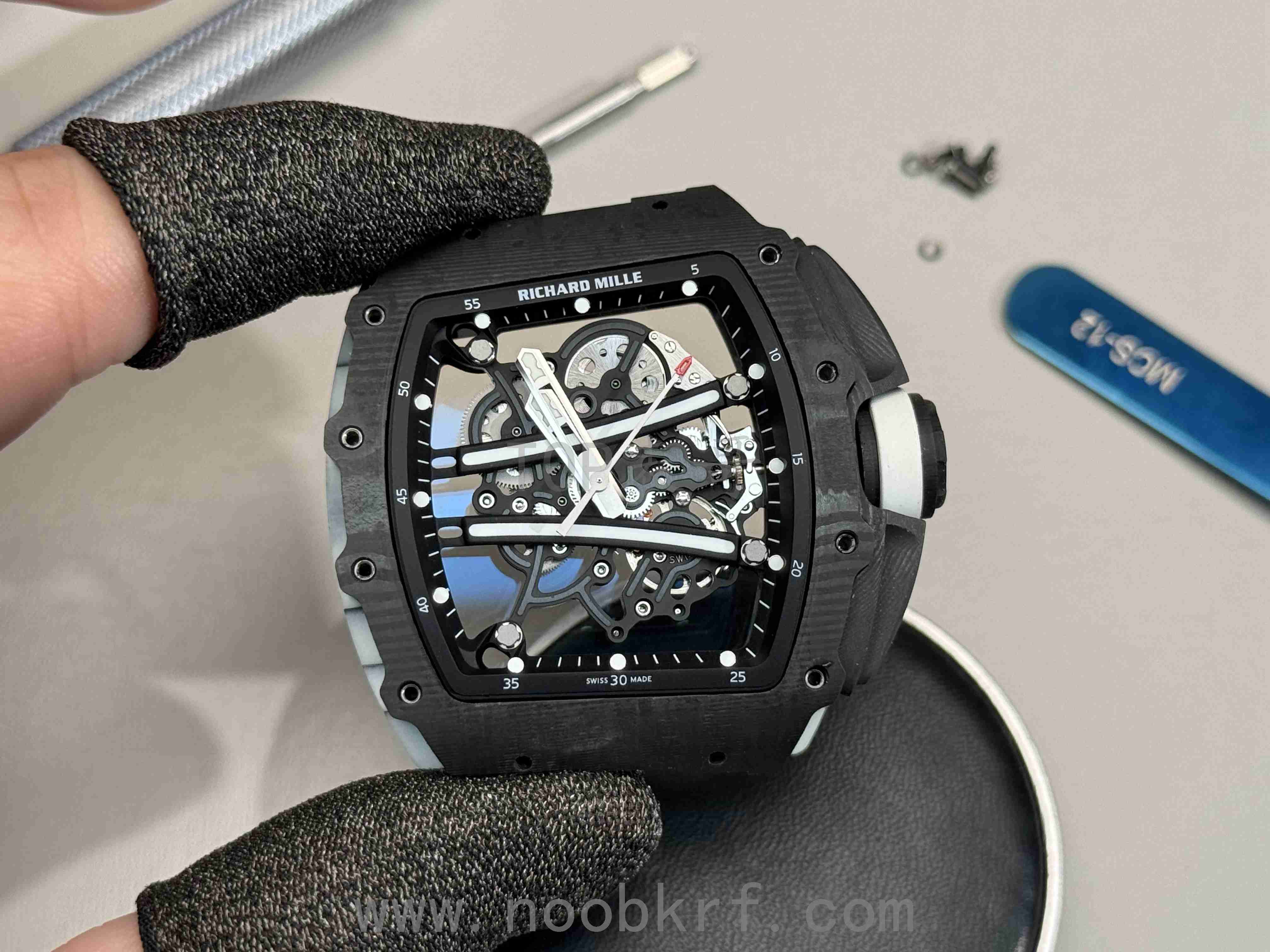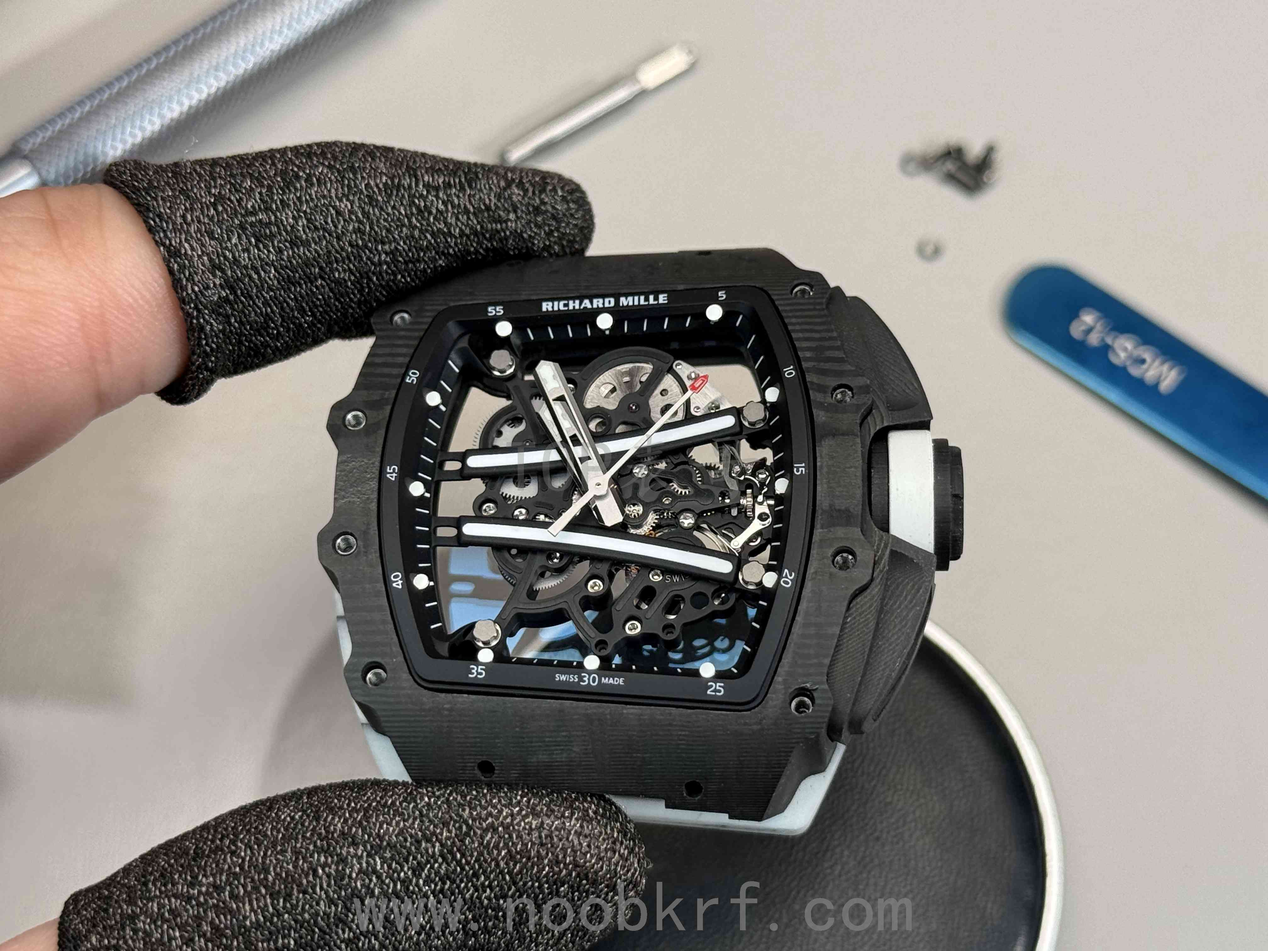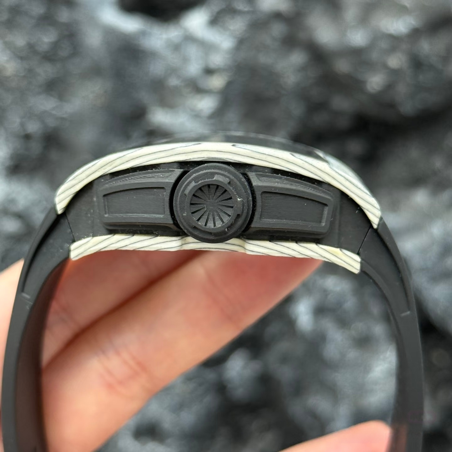 Carbon TPT® 是理查德米勒与瑞士North Thin Ply Technology公司联合开发的高性能碳纤维复合材料,专为制表业优化,兼具轻量化与极致强度。