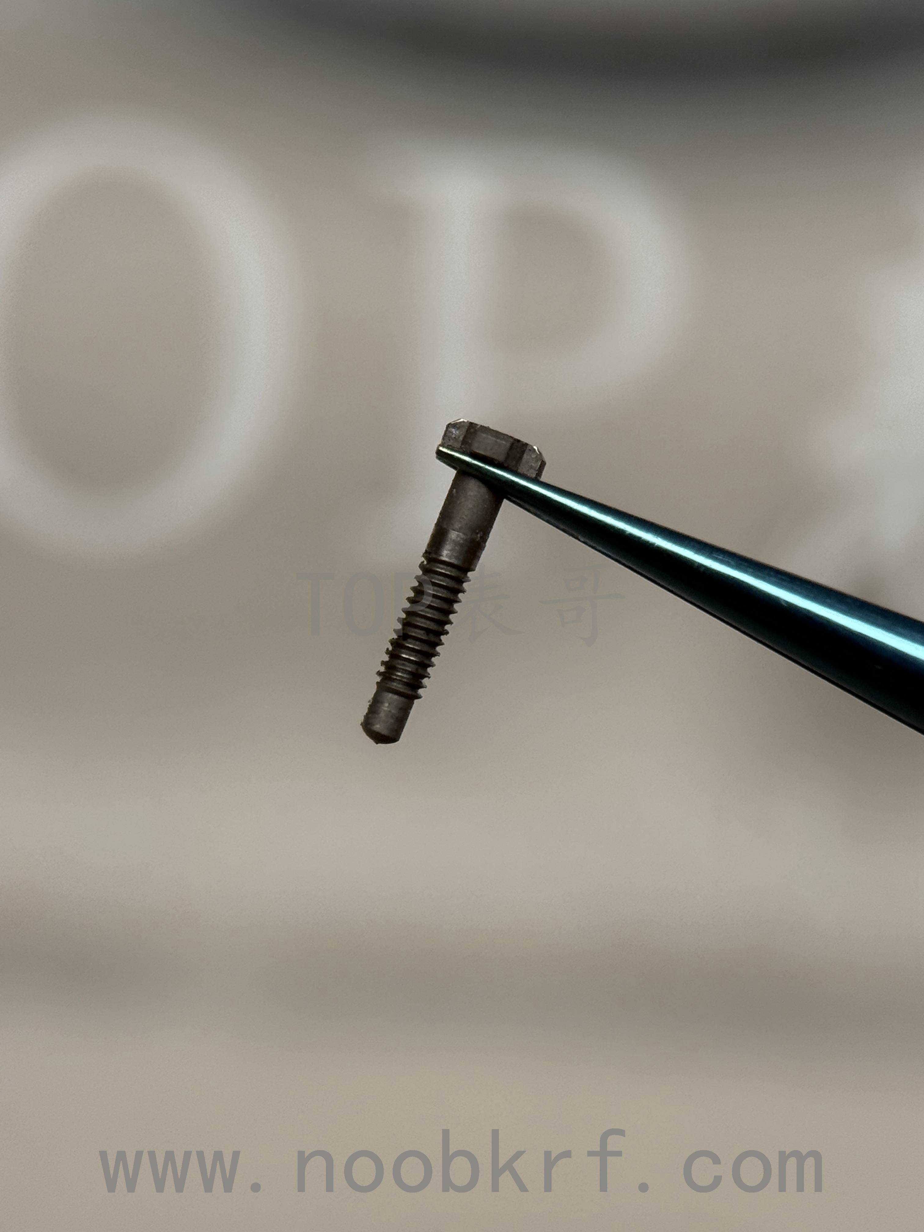 在材质上是真材实料的钛合金,这一点无需担心,至于是不是真正的五级钛合金表哥则是不得而知了。不过有一点大家可以放心的就是,无论是表壳外层的固定螺丝,还是机芯框架的固定螺丝均是带有二次打磨,并且带有对版的斜面倒角工艺处理,外观上螺丝同步原版。