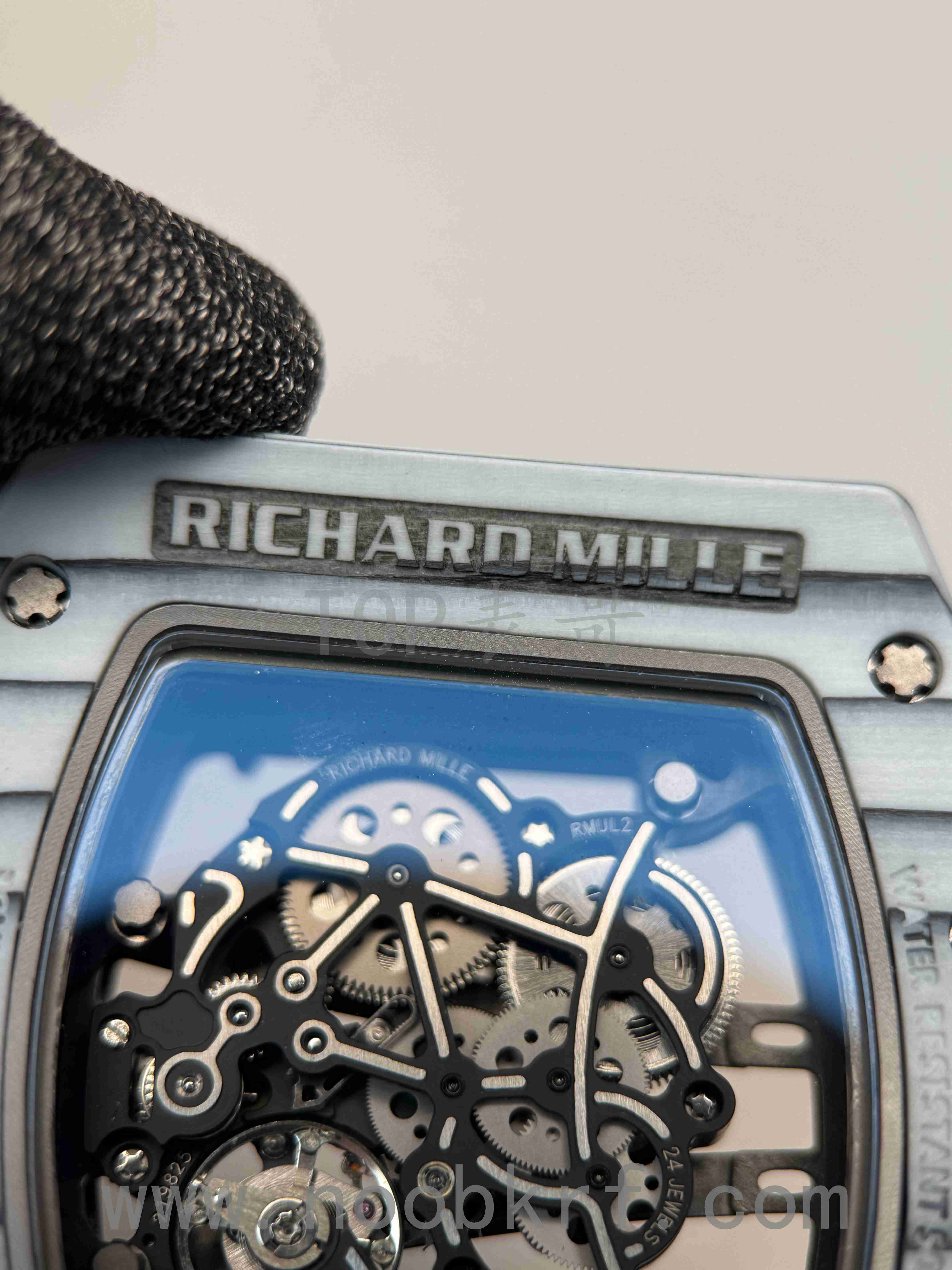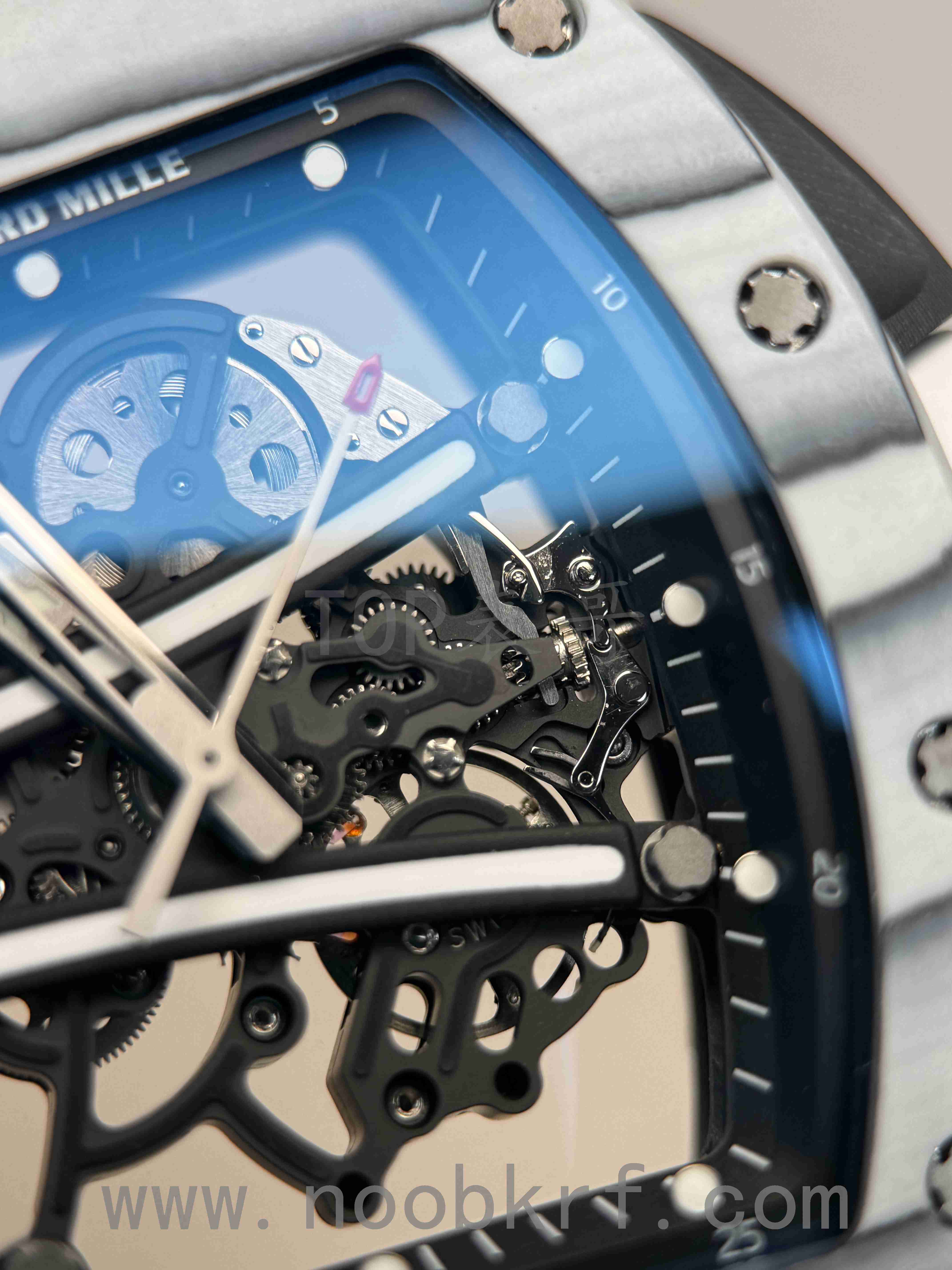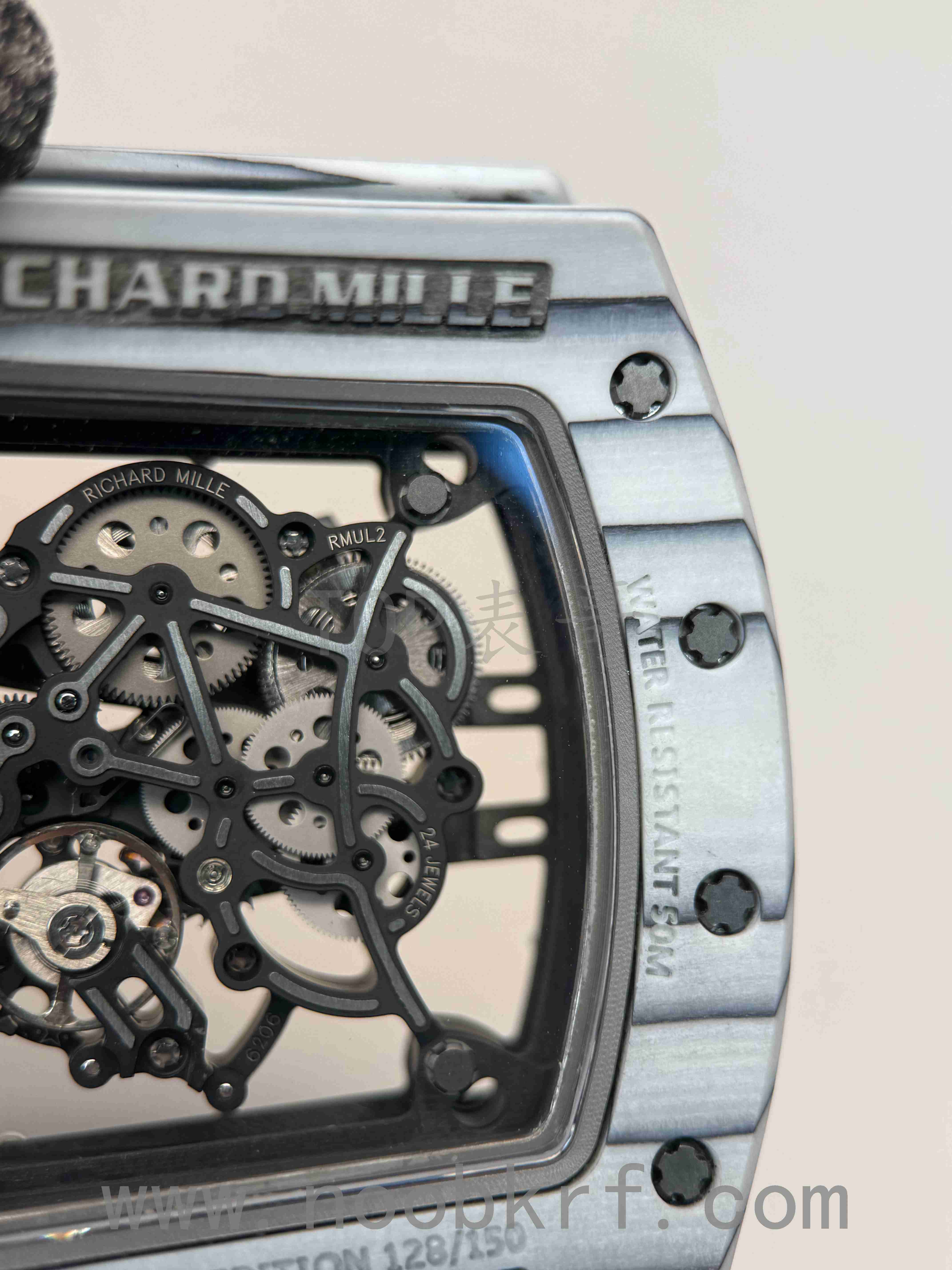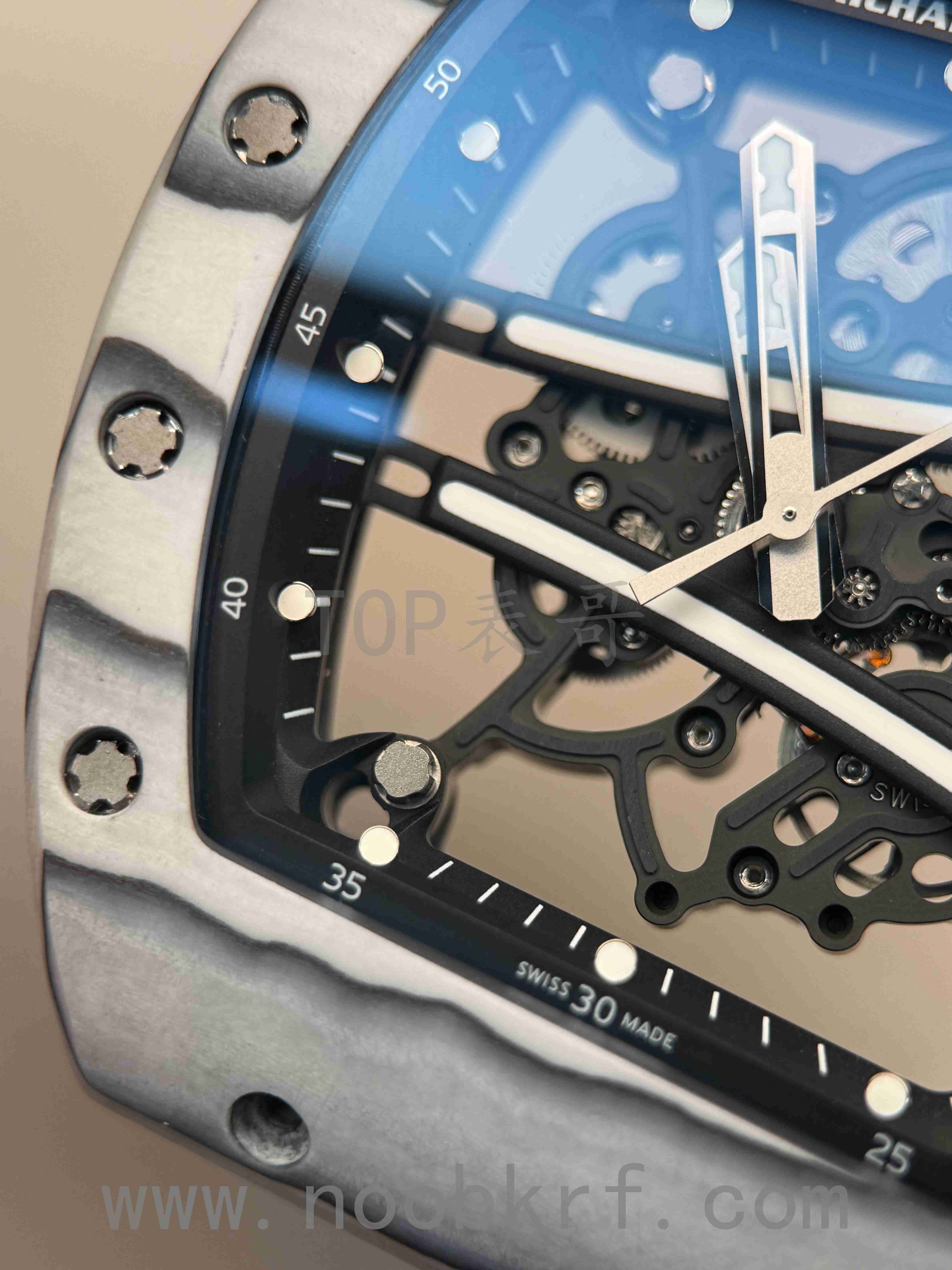相比较理查德米勒055,061的的表壳螺丝是带有垫片的,而055则是没有螺丝垫片,表哥感觉这个估计是与061的不对称的表壳形状所导致的。