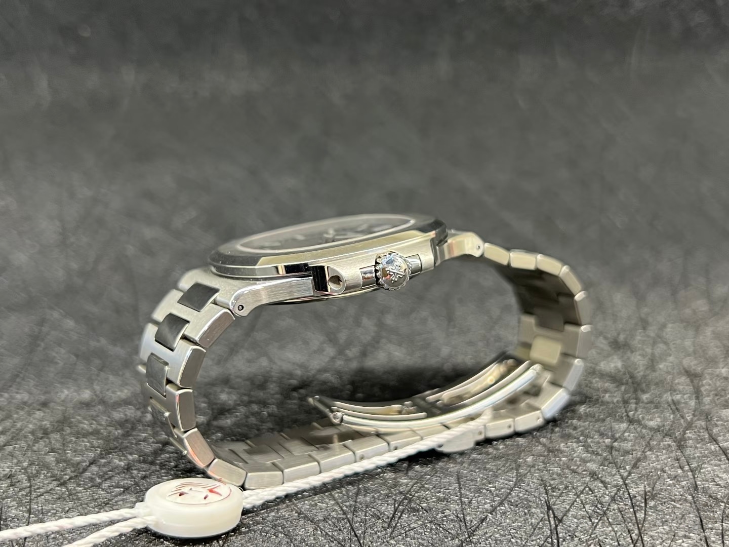 表壳:采用不锈钢材质,表壳直径为 40 毫米,厚度约 8.5 毫米,尺寸适中,适合大多数男士佩戴。其八角形表圈设计独特,灵感源自游轮的舷窗,搭配舷窗式表耳,线条流畅,兼具运动感与优雅气质。表圈侧边为弧线设计,圈口交替使用抛光与拉丝工艺,工艺精湛。