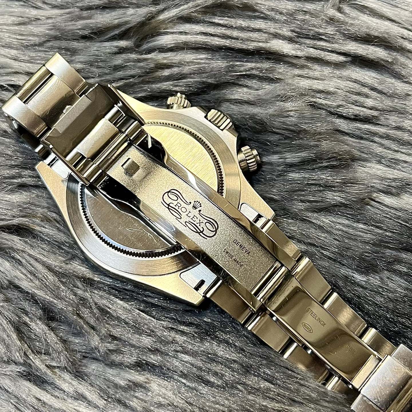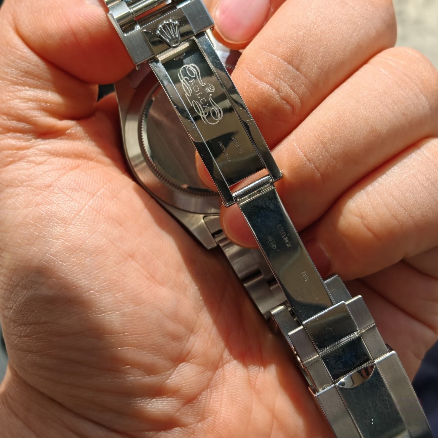 早期带洞扣(2008 年前);2008 年起统一为磨砂(拉丝)三重蚝式折叠扣(带 Easylink 5 毫米微调);2015 年年中(有说 2015 年 3 月起) ,表扣中板由磨砂升级为镜面抛光(亮扣),2016 年在售的 116520 几乎均为抛光中板的最终版,磨砂扣在 2016 年多为库存老表,产量极少;这两种表扣的外部结构一致,仅中板处理工艺不同,很容易通过打开表扣观察区分。