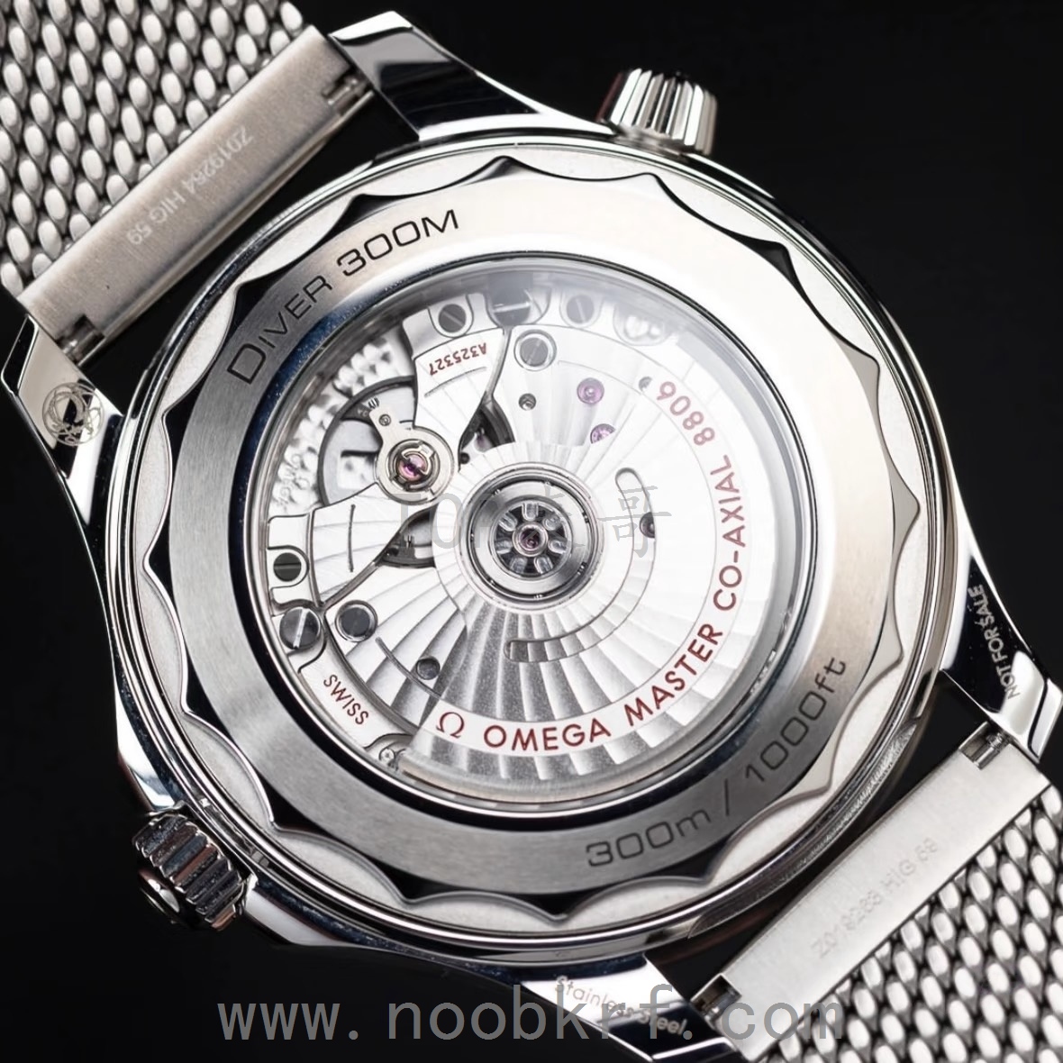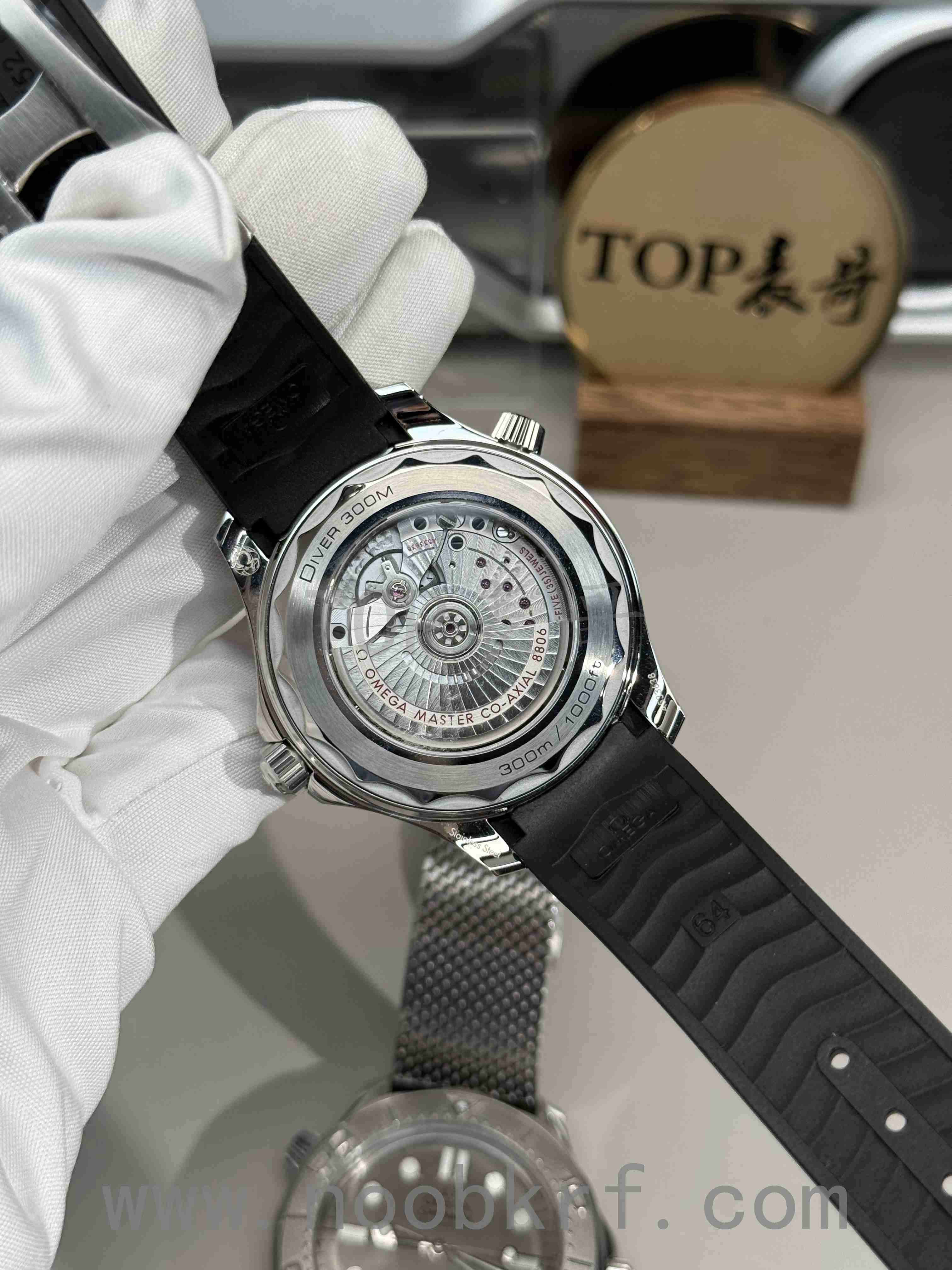 背透可见欧米茄当家的欧米茄 8806 至臻天文台自动机械机芯。最重要的是这两枚新表也是大家呼声非常高的无日历海马300米。