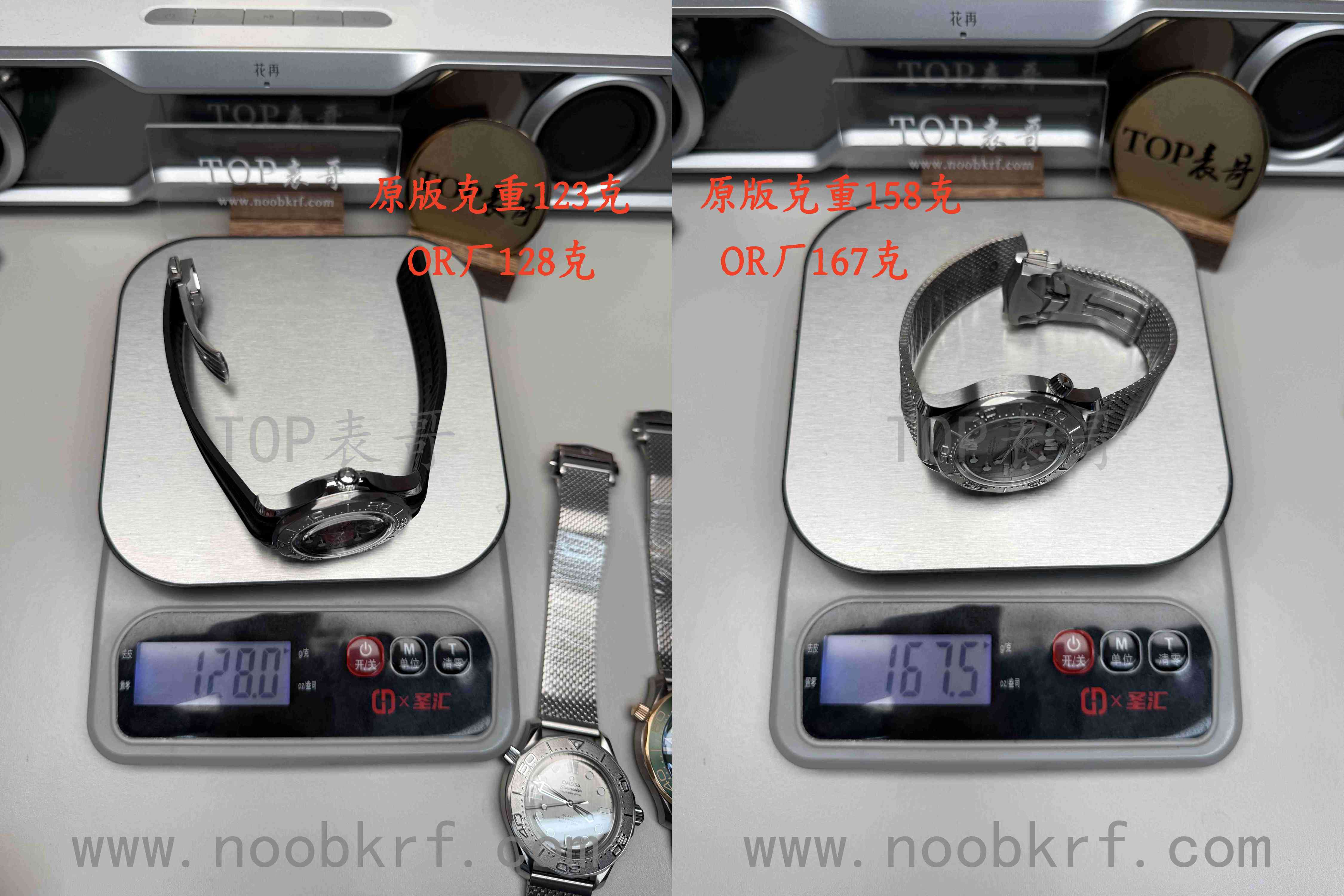 相比较青铜金的非常接近克重,反观这一款海马300的灰海马,相差的重量则是有点“大”了,胶带版本克重相差5克,米兰带版本克重相差9克。表哥感觉估计是在外圈材质上,OR工厂这里并没有完全同步原版用上了真的钛合金材质,材质上的差异导致重量产生偏差。