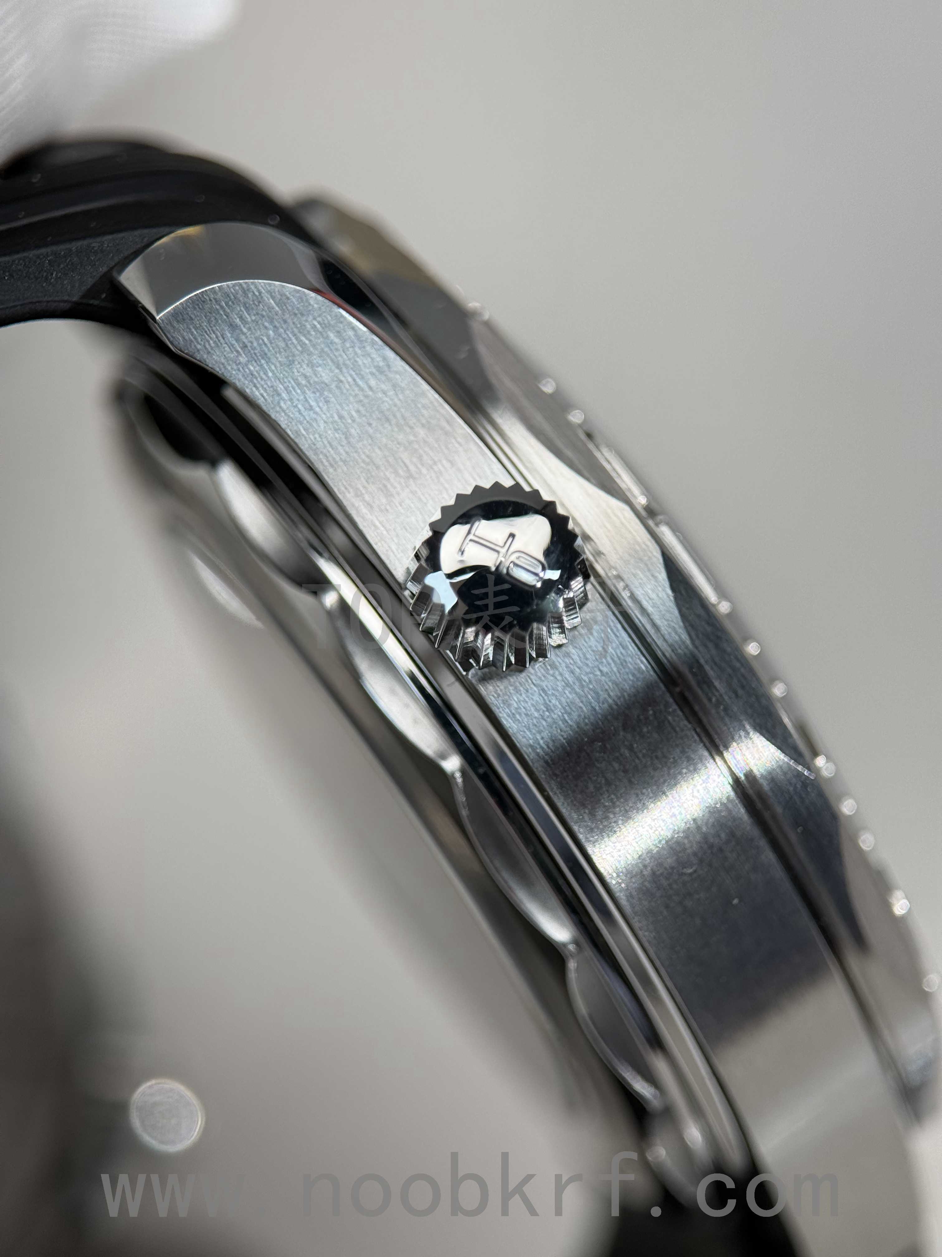 通过多角度的不同光源的原版实拍,不难发现这一款腕表会呈现出深灰色和浅灰色的两种颜色的差异,而且这种颜色差异是非常强烈的,就是这种反差感才凸显了这款腕表的高级感。OR工厂在这一点还是差了点意思,没办法做到最接近的还原,亮光条件下浅灰色还原效果非常接近,不过在暗光条件下那种高级的深灰色还是没办法做到那种冷艳的色调感觉。