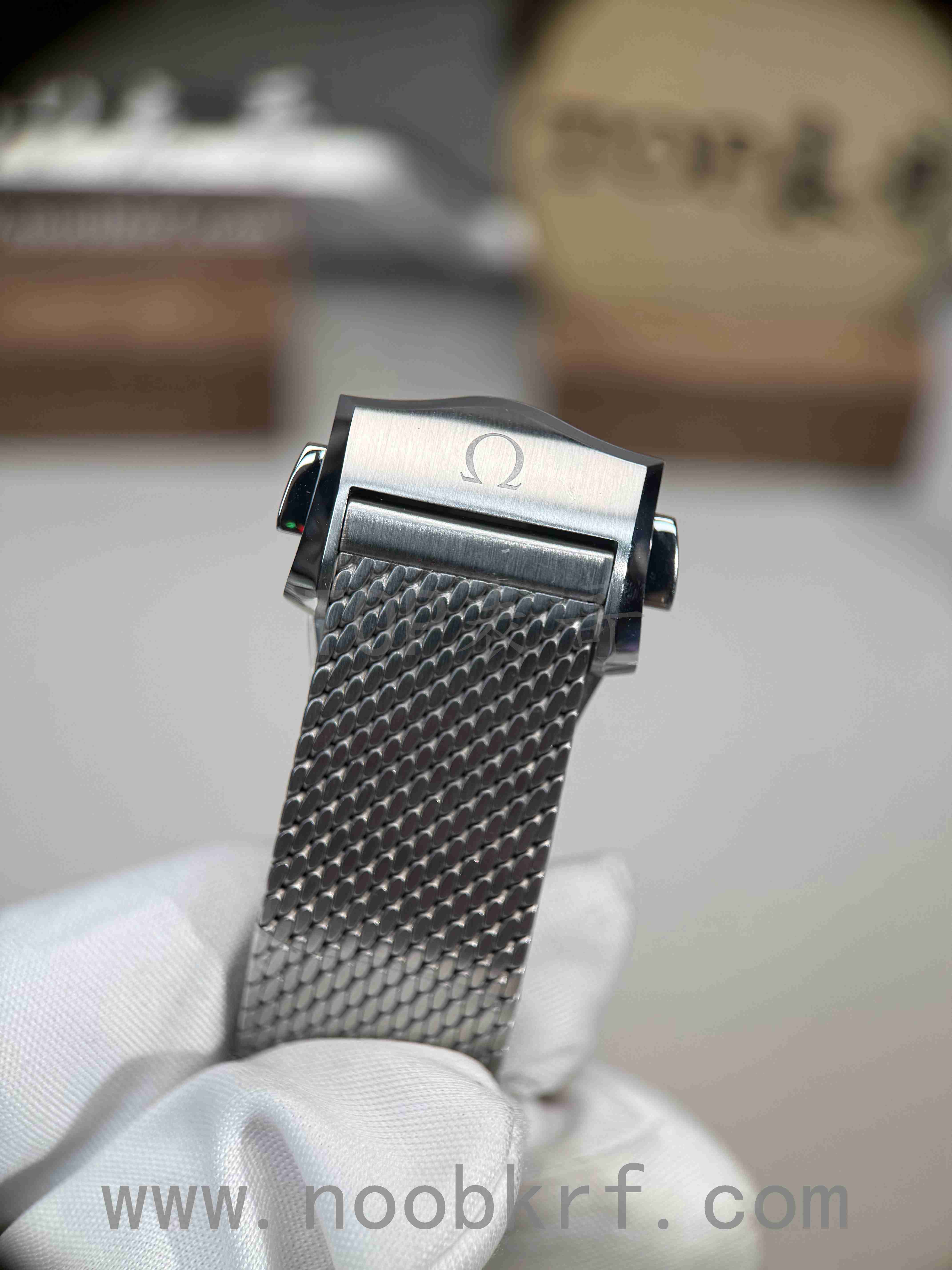 表带上搭配了除了欧米茄非常有质感的拉丝橡胶表带,还有007无暇赴死表款饱受赞誉的米兰钢织表带。