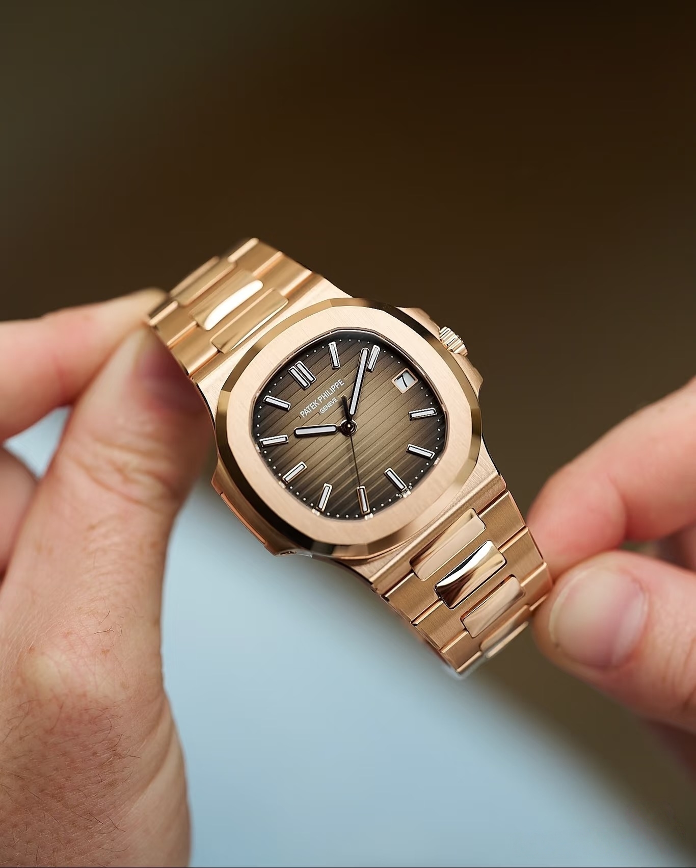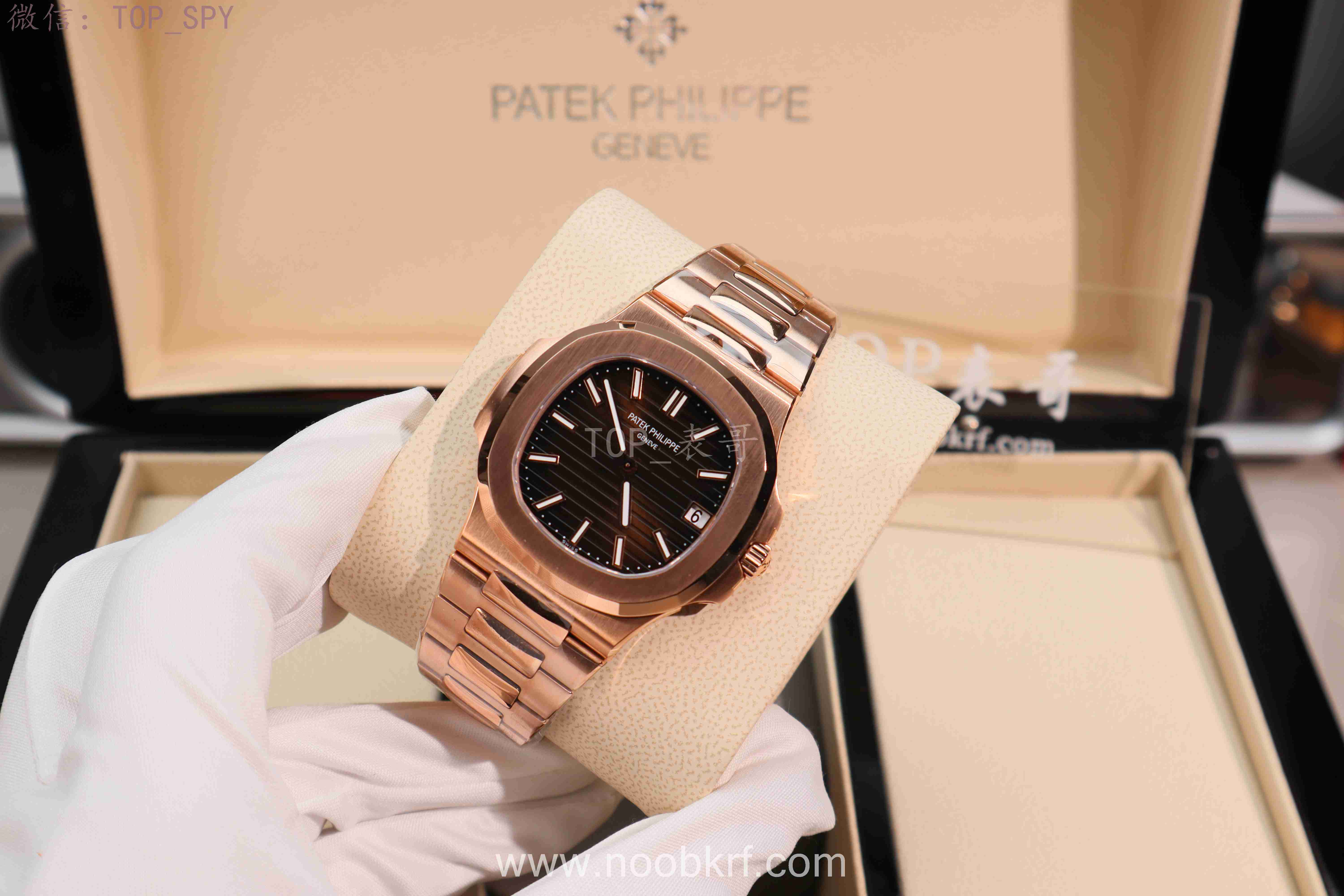 hello,大家好,我是TOP表哥,今天带给大家的腕表评测来自DDF工厂的百达翡丽鹦鹉螺5711R玫瑰金全钢带配重版本,腕表官方型号:百达翡丽运动优雅系列5711/1R-001腕表(鹦鹉螺)。