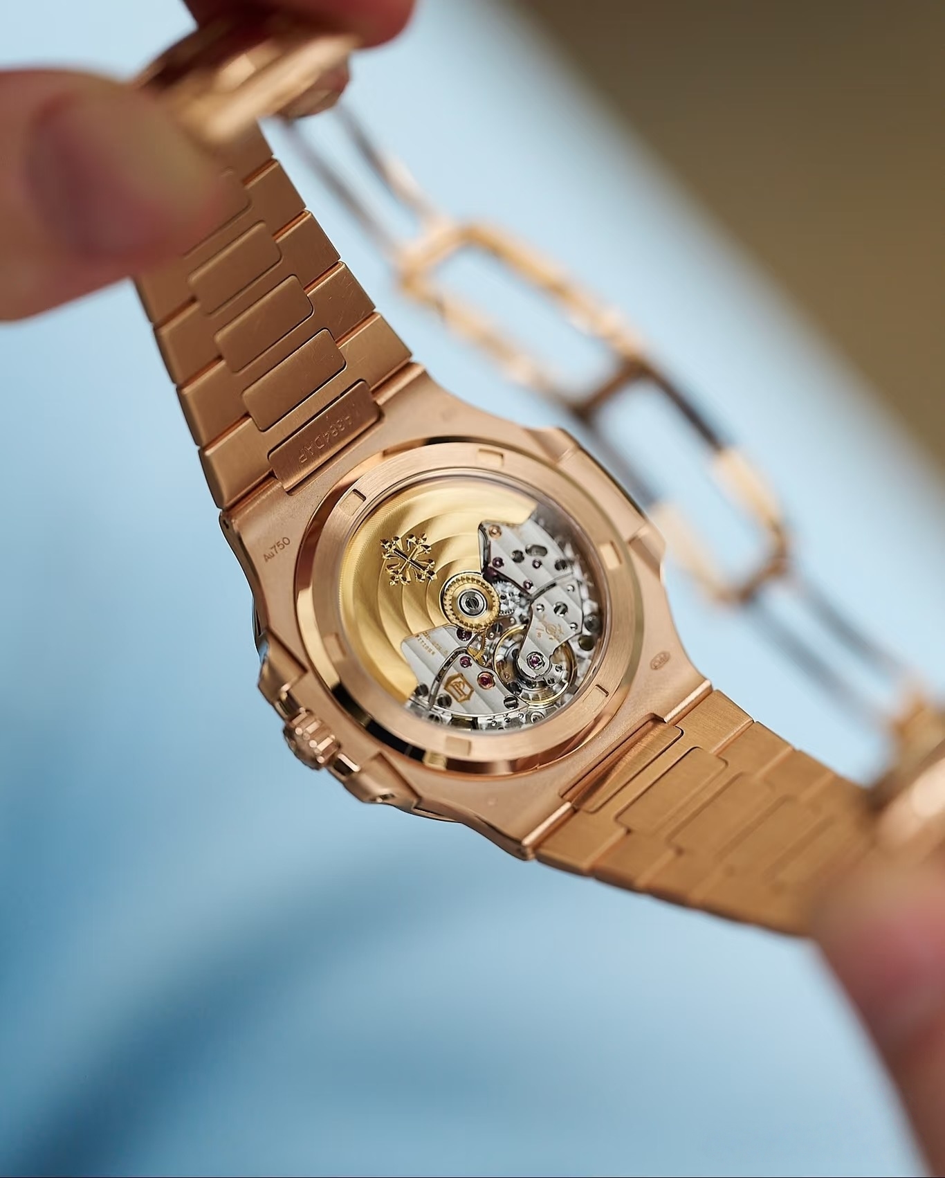 表壳采用百达翡丽专属18K 5N玫瑰金打造,含金量75%,添加铜和银,既呈现温润玫瑰金色泽,又提升硬度与耐磨性,不易刮花氧化,能长期保持美观。