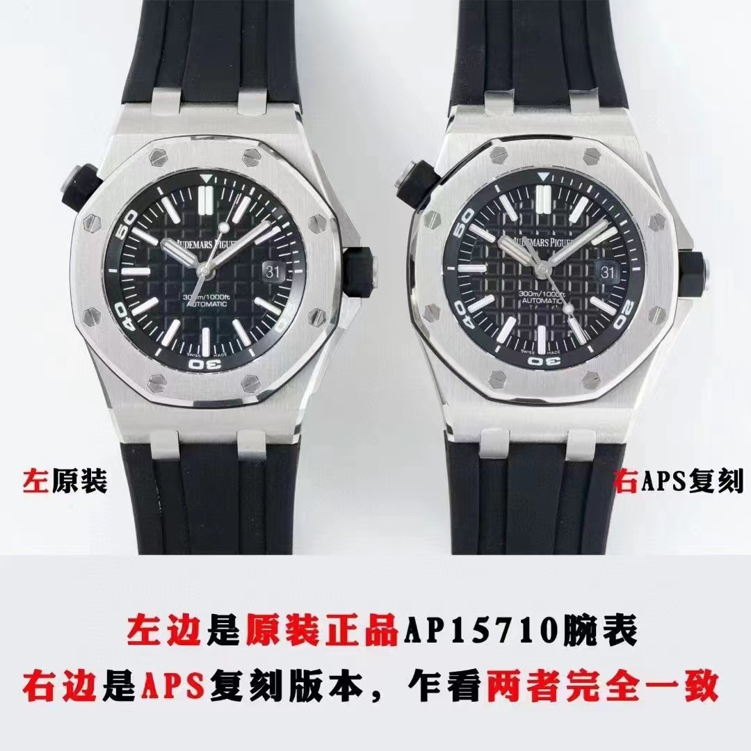 左边是原装正品AP15710腕表,右边是APS复刻版本,乍看两者完全一致