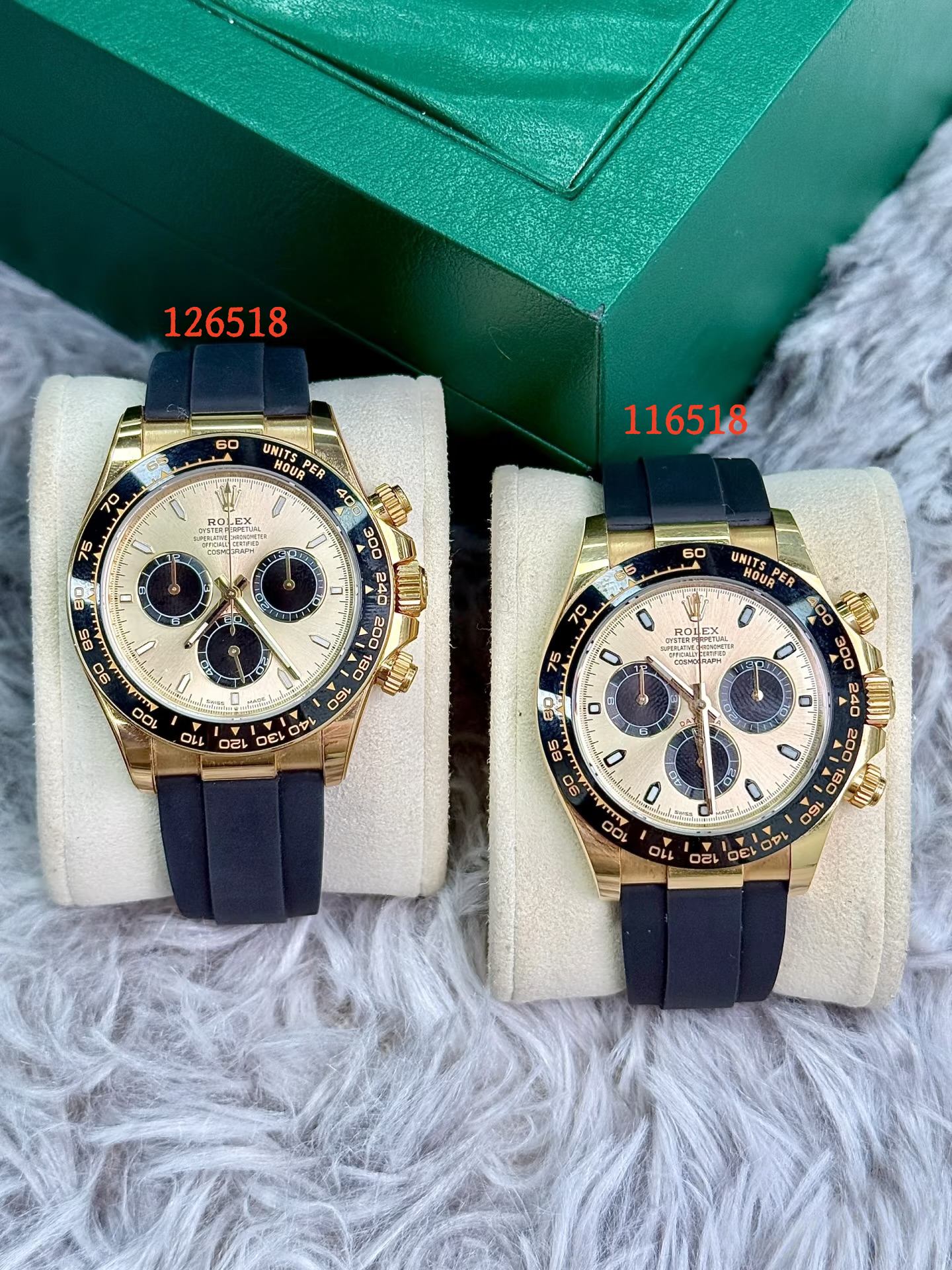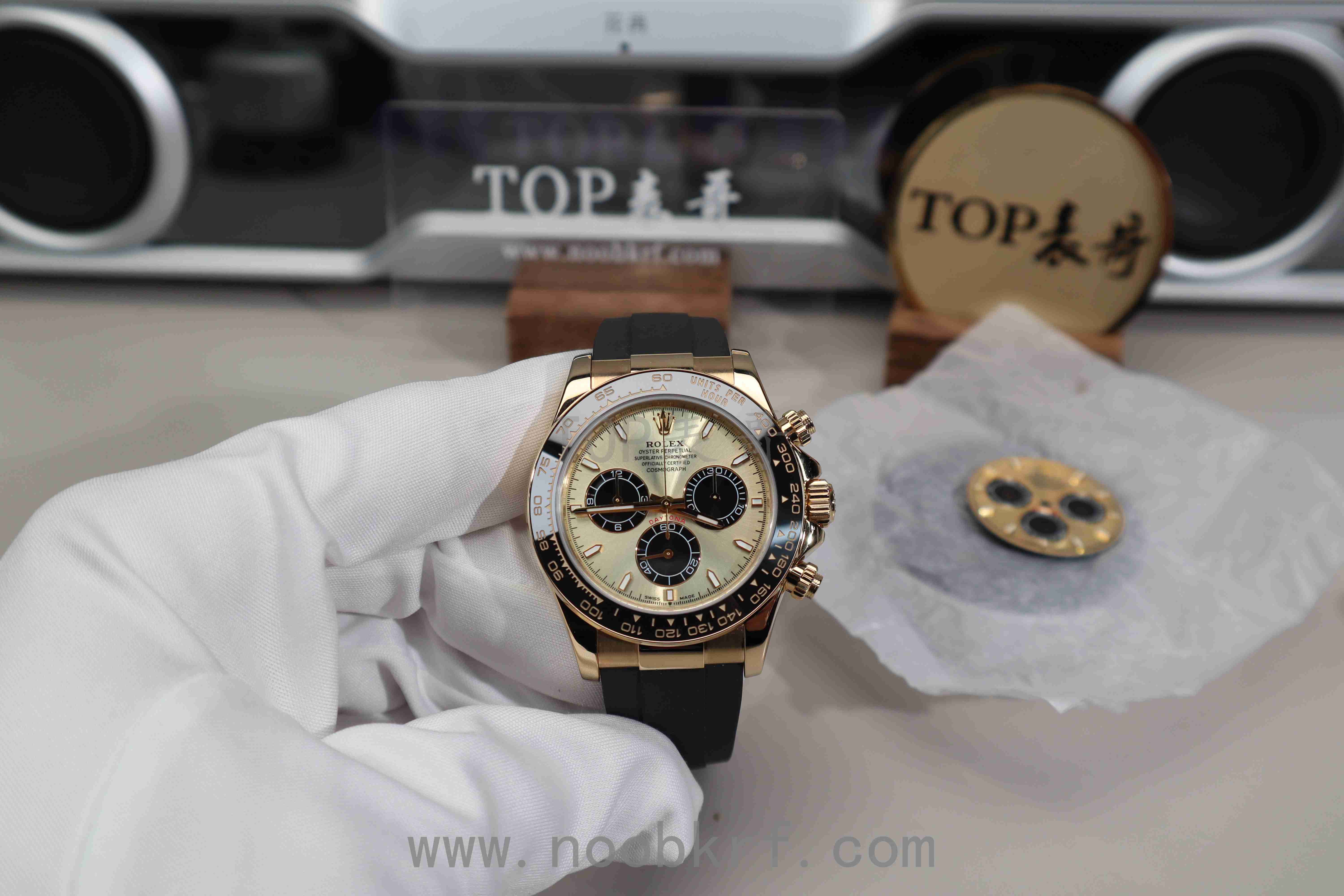CBD工厂目前的劳力士迪通拿系列和星期日历型系列腕表是表哥当下最推荐的改装表底,迪通拿胶带款贵金属款式重量做到了对版的155克左右,18k金钢带版本的迪通拿重量在215克左右,星期日历型40毫米DD更够做到对版的210克左右,第一点是重量基本做到和原装非常接近的程度,第二点则是能够完美的适配加工厚包金,表壳不会出现脱落金块或者脱色的尴尬问题,第三点则是能够完美适配目前市面上所有的改装替用配重,比如盘面、外圈、指针、日历等,换而言之就是也可以通用正品的配件,最后就是CBD工厂非常良心的在机芯方面全系列搭载了丹东的4130机芯和丹东4131机芯。