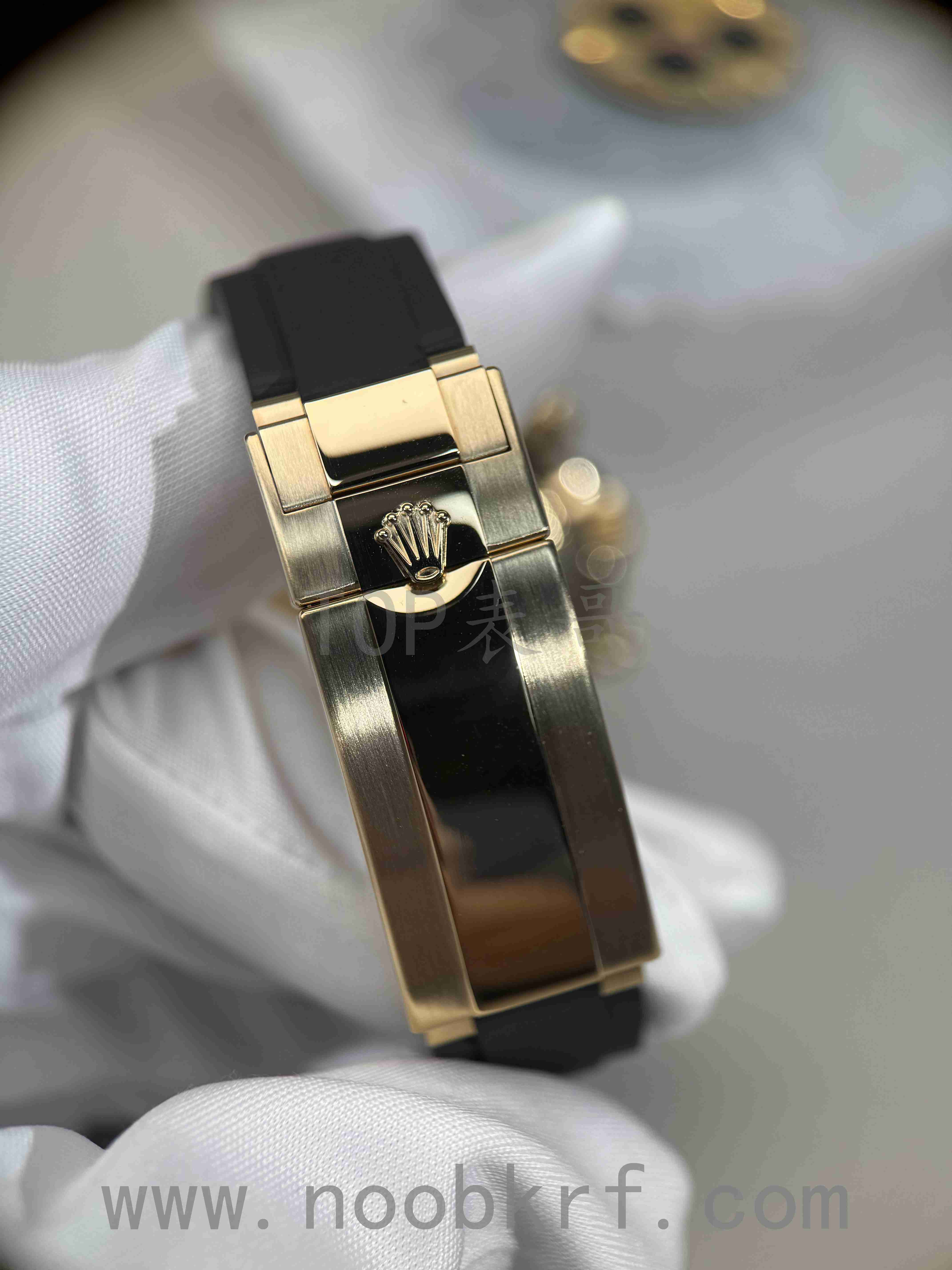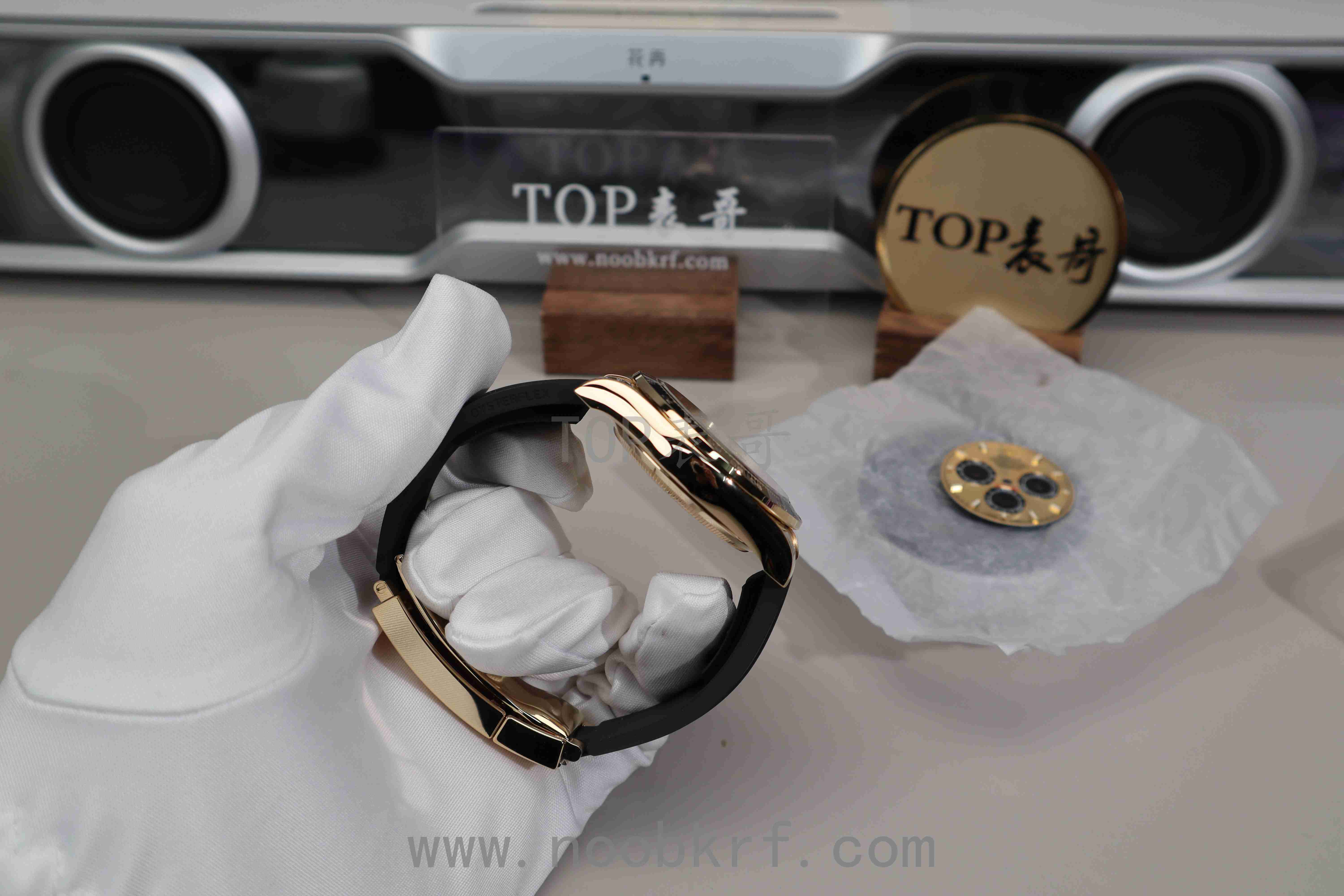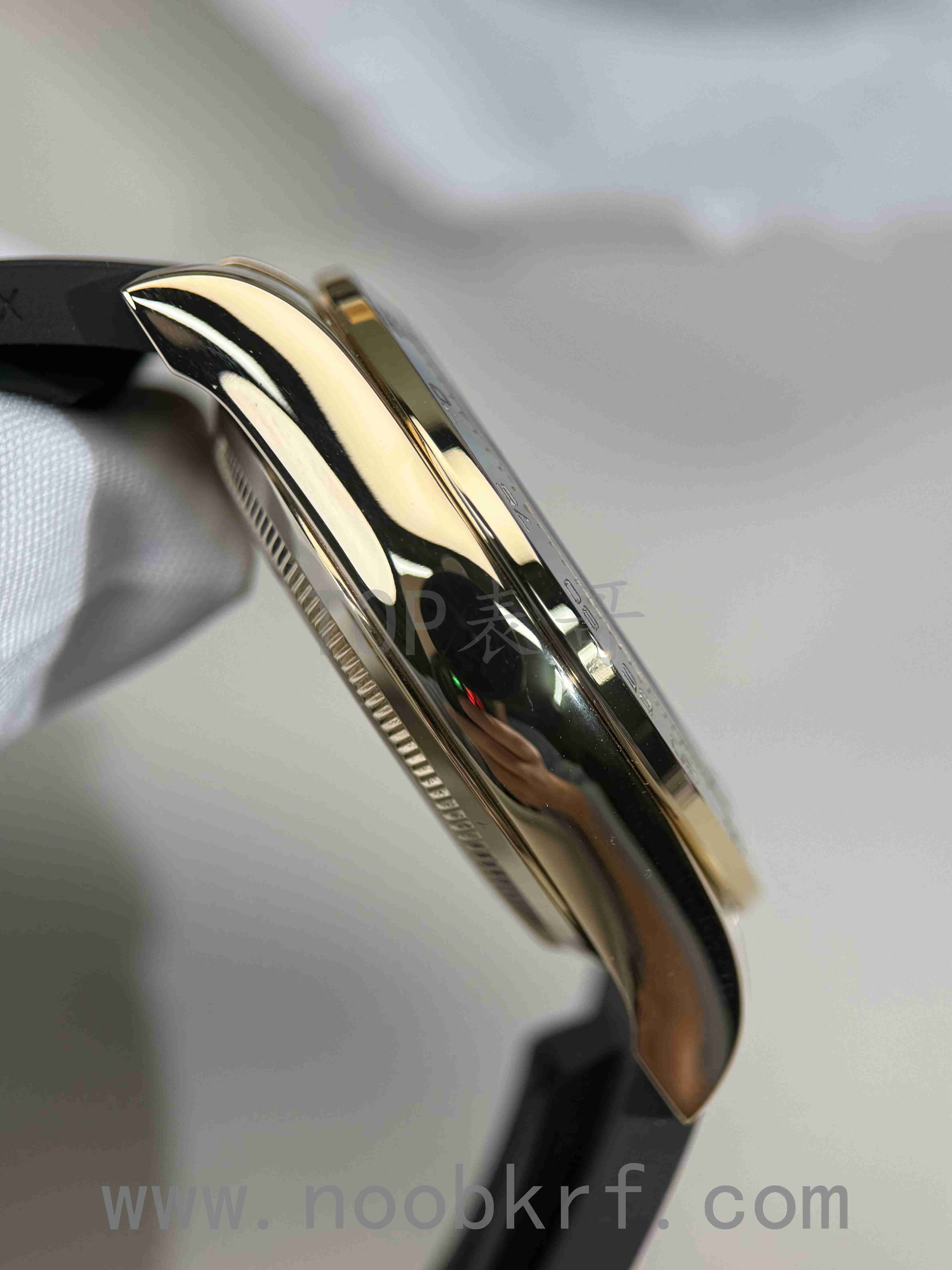 包金方面,表哥在这里不需要太多的重复,大家有兴趣的可以参考网站当中的相关评测,这里表哥总结一下就是CBD工厂的配重材料在内层,外层为钢材质,所以能够完美适配加工包金或者镀金工艺处理。通过加工厚包金后能够让腕表的表壳更加耐磨,毕竟至少用到了4-6克金去进行厚包围,等同于汽车外层的车衣一样,这样会更加耐磨损、耐操。第二点就是进行对版的金色调色,总所周知劳力士的黄金和玫瑰金颜色均不是18k金的原色的,就好像这一款余文乐普通的18k金简单的包裹上去,物理变化并不难,难的是进行对标原版的调色,再进行对版的调色后进行包金工艺处理,所以出来的表壳颜色效果非常接近正品,这效果是十分重要的。