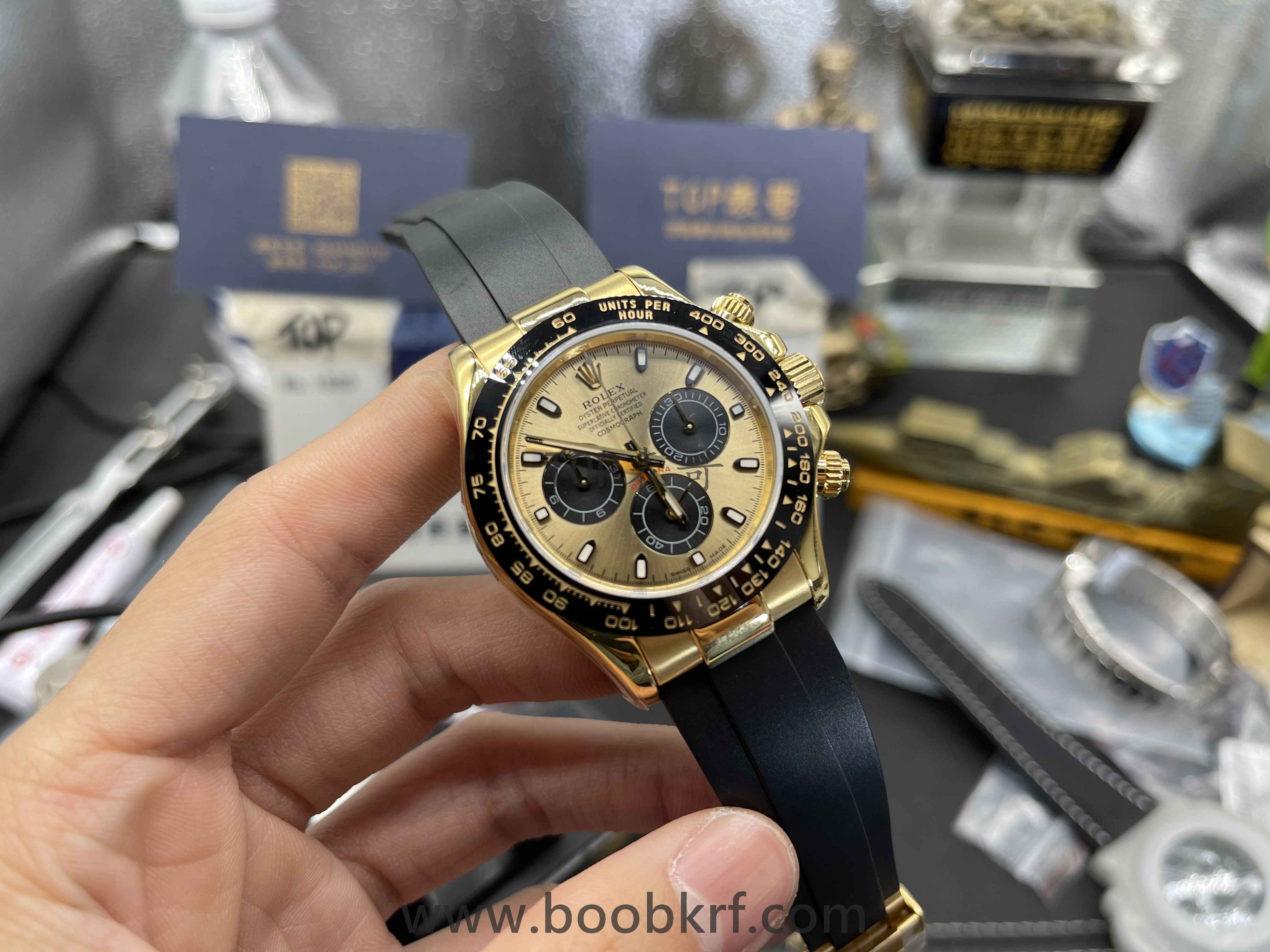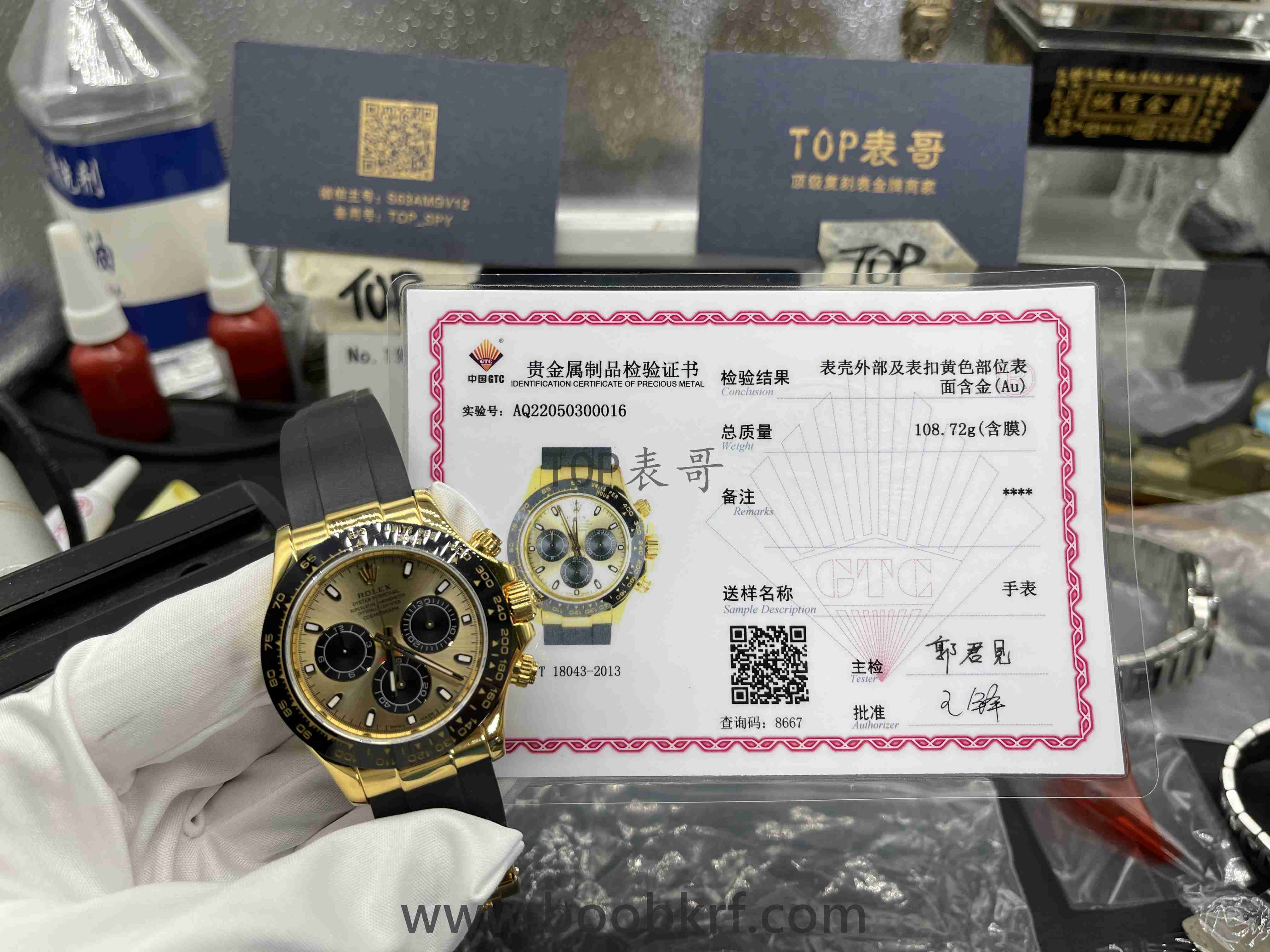在文章评测的上半部分图片展示的为N厂原厂的劳力士迪通拿116518ln镀金版本的实拍,现在下部分均为经过包金后的实拍展示,大家可以仔细对比一下其质感的差距。
