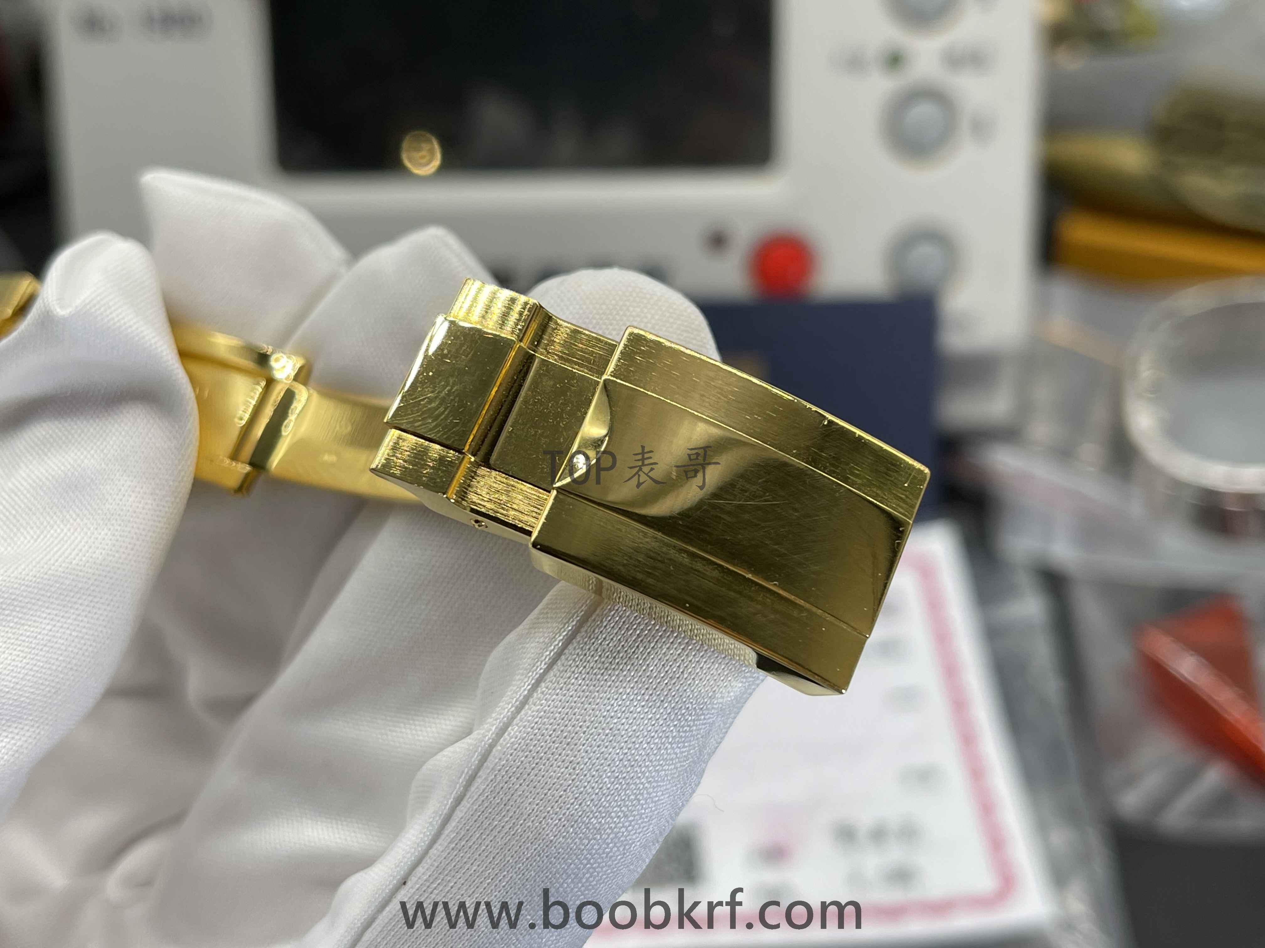 这里要区分的一点是,包金并不是纯K金表壳,一般包金的意思是在原基础为精钢表壳的材质上外层进行一次贵金属的工艺处理,黄金一般为24k而玫瑰金的为18k,所需要的克数就会少,价格低。而纯K金表壳的意思就是直接用贵金属来制作表壳,3D打印出表壳的磨具,直接用贵金属材质填充,表壳一体成型,正品的表壳就是这样制造,这样下来的成本高,价格就是包金工艺的十倍不止,因为还有工时、人工、损耗。