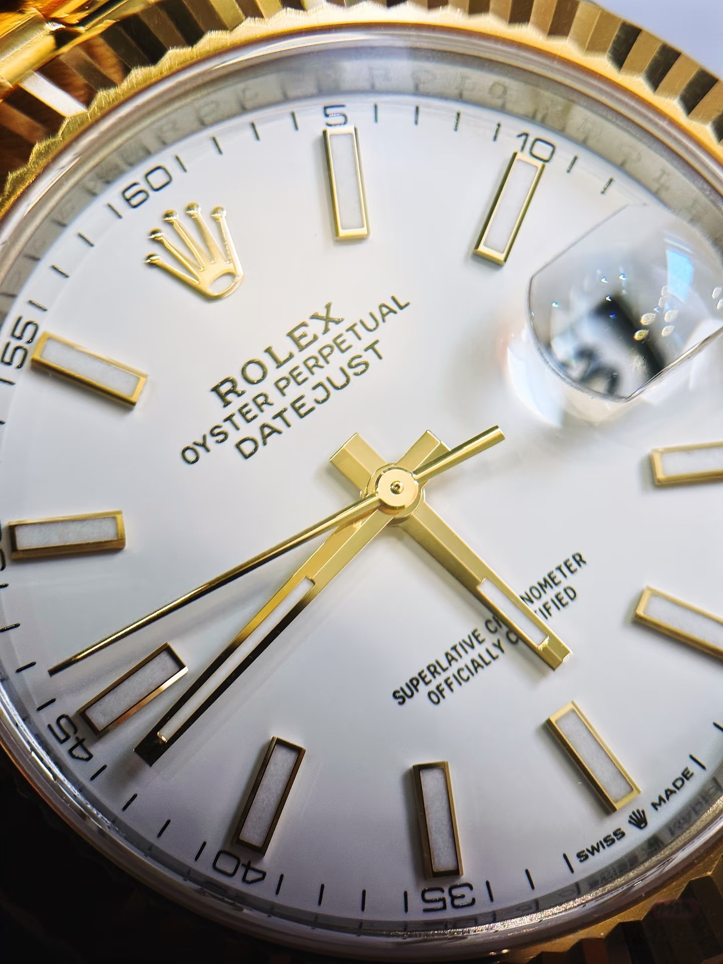 盘面工艺尽显劳力士匠心,每道工序严苛把控。表盘基底选用高品质黄铜夹板,经多层黄金与镍镀层处理,有效隔绝空气水汽,防止氧化褪色,为后续工艺筑牢基础,确保长期佩戴色泽如新。