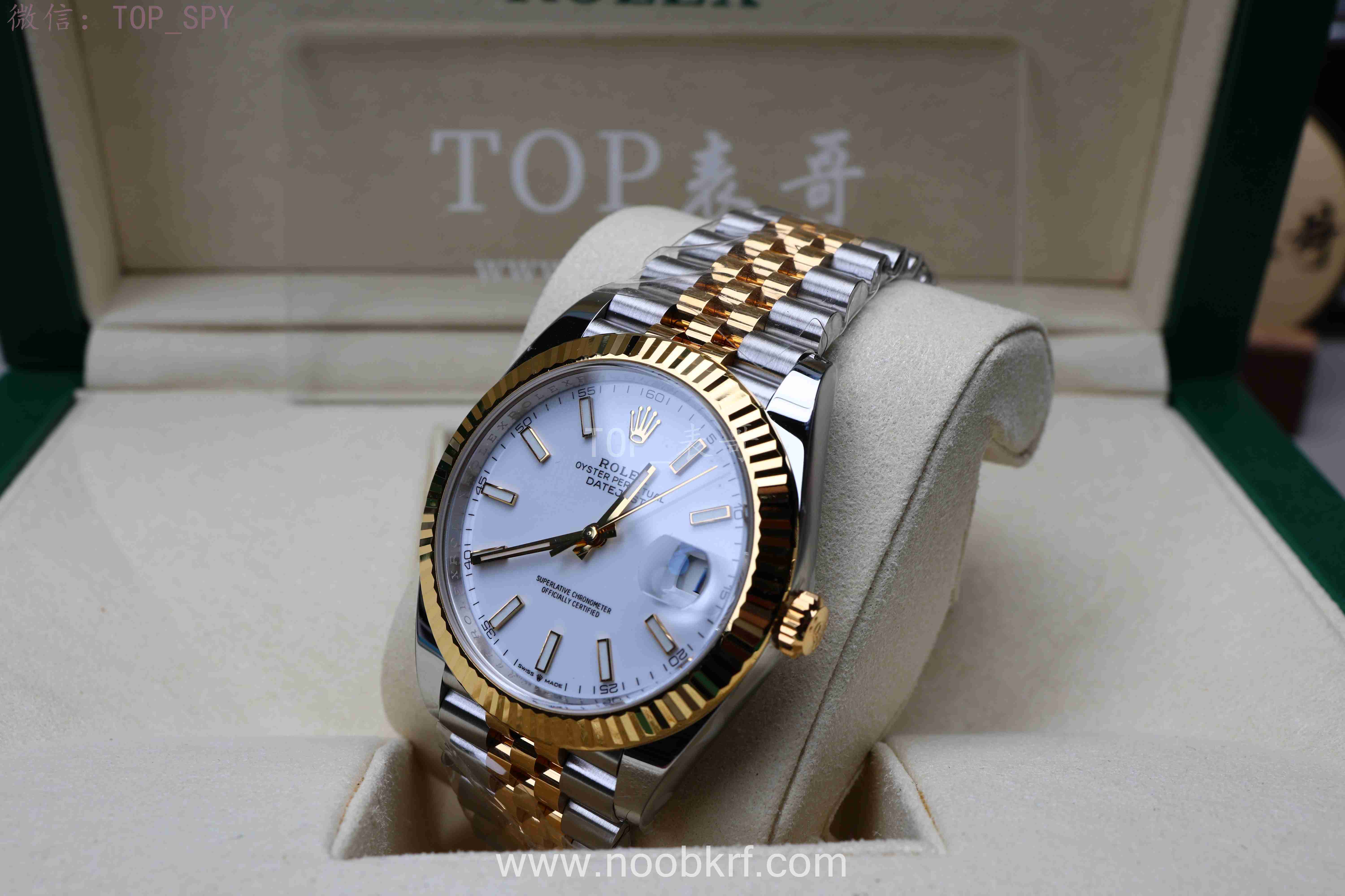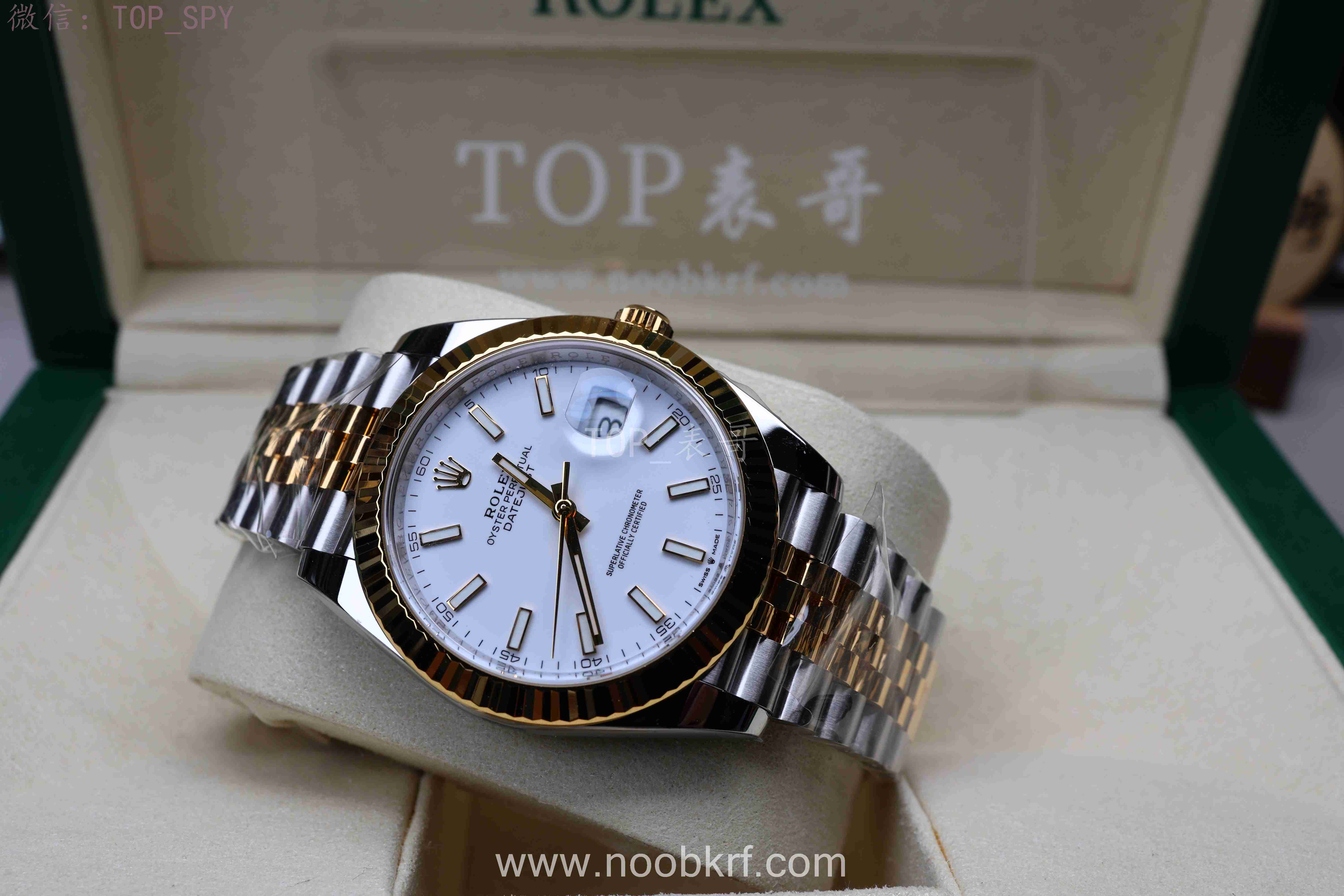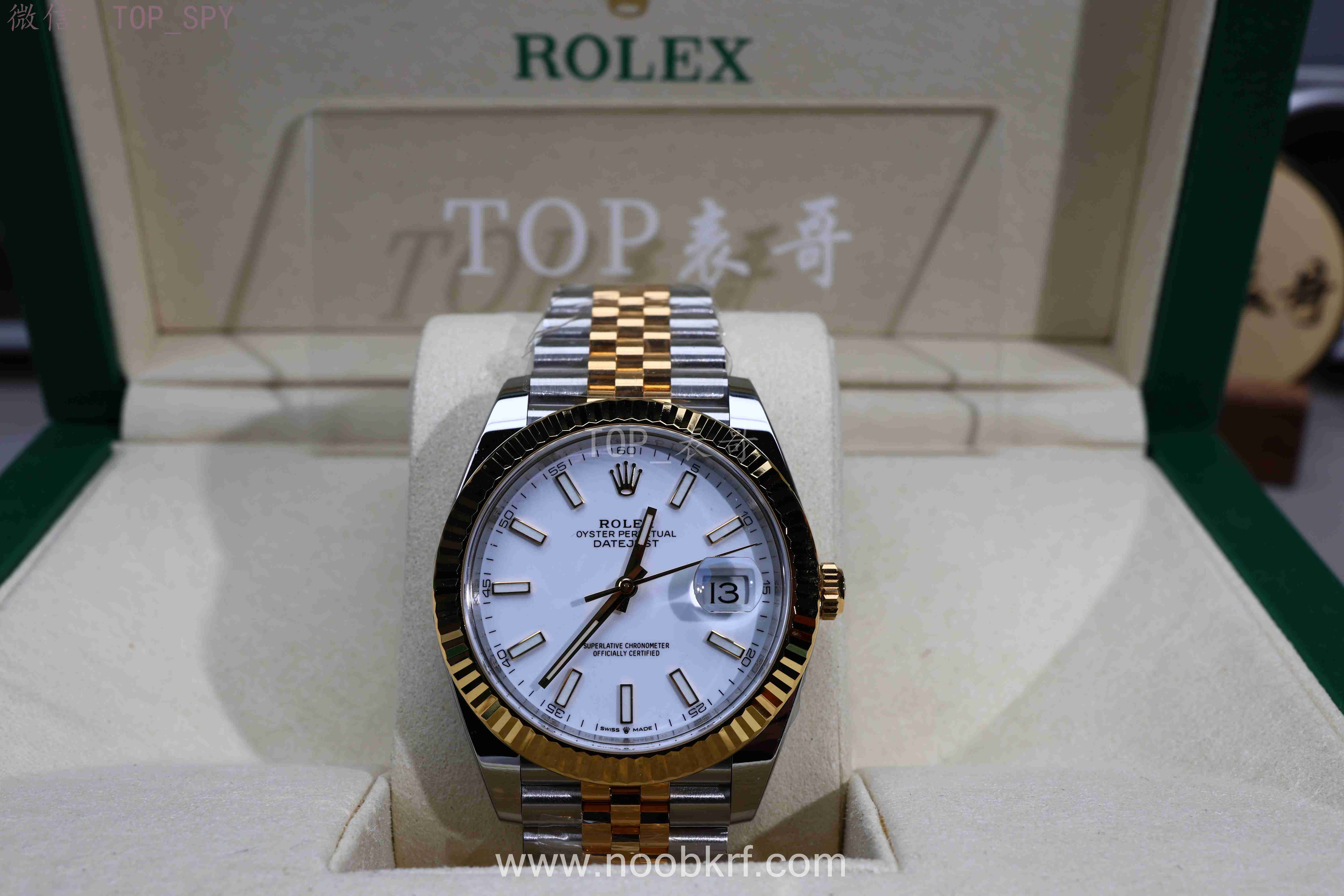 V厂劳力士日志41毫米,作为clean工厂的正宗接班人,毫不夸张的说就是继往开来,完美继承了clean工厂的优秀家底,在精钢款式上面秉承了clean工厂的家底盘面+最优秀的buff指针+最对版的实心中轴,并且也是直接搭载了丹东3235机芯,解决了曾经C厂使用上海3235机芯的不足。而今天V厂也是给大家带来了最新的间金款式日志41毫米的样板,这次带来了间玫瑰金和间黄金款式,虽然是镀金设计,不过其盘面还原度和指针、中轴依旧是非常优秀的,更多的给大家实拍视频和图片展示来欣赏一下这一款黄金间金日志41毫米白盘腕表。
