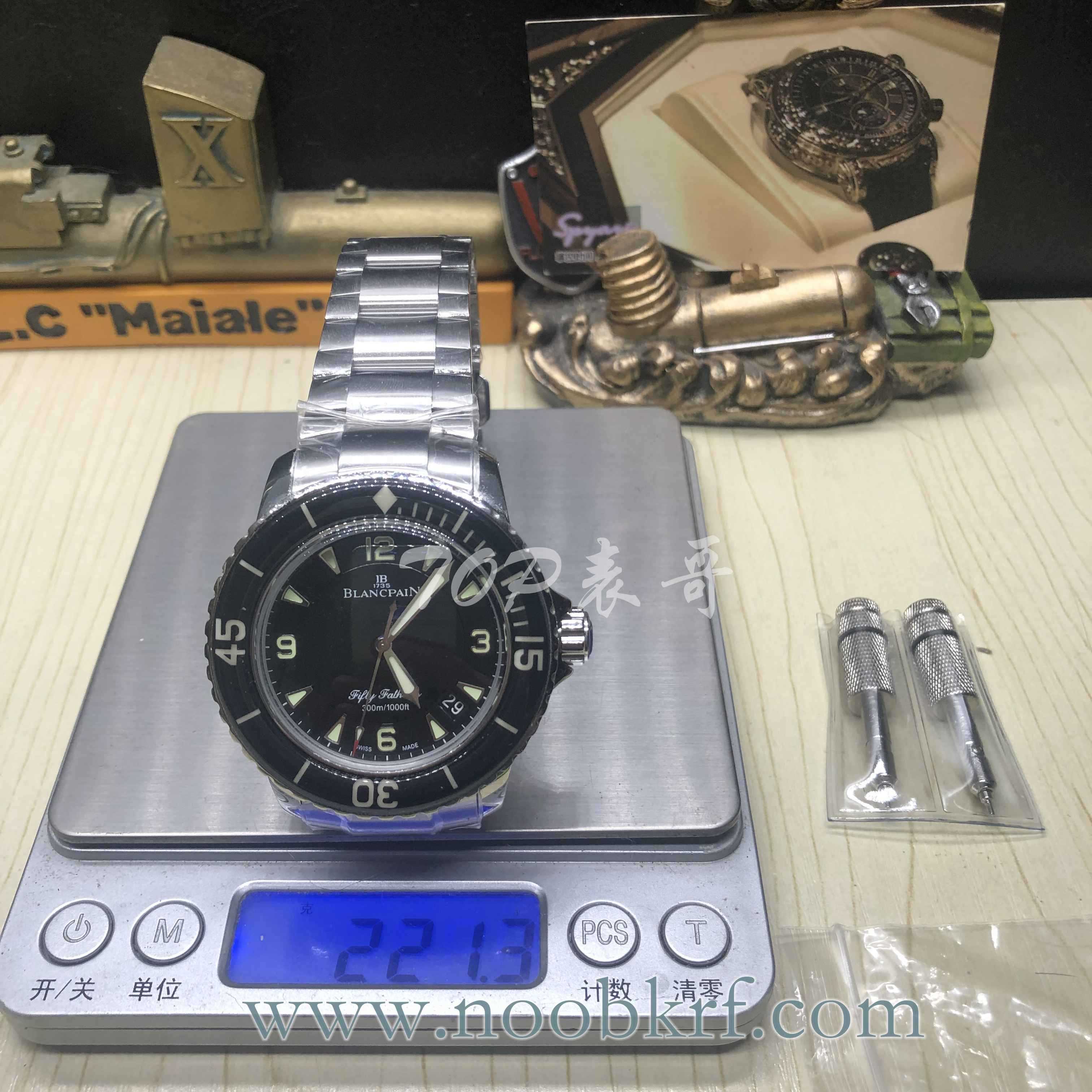 hello,大家好,我是TOP表哥。今天给大家带来的腕表对比评测是来自ZF工厂的宝珀五十噚,这款是大家非常熟悉的款式,复刻表当中五大神器之一,不过今天这款腕表ZF厂也是推出最新的钢带款,官方型号为:5015-1130-71。