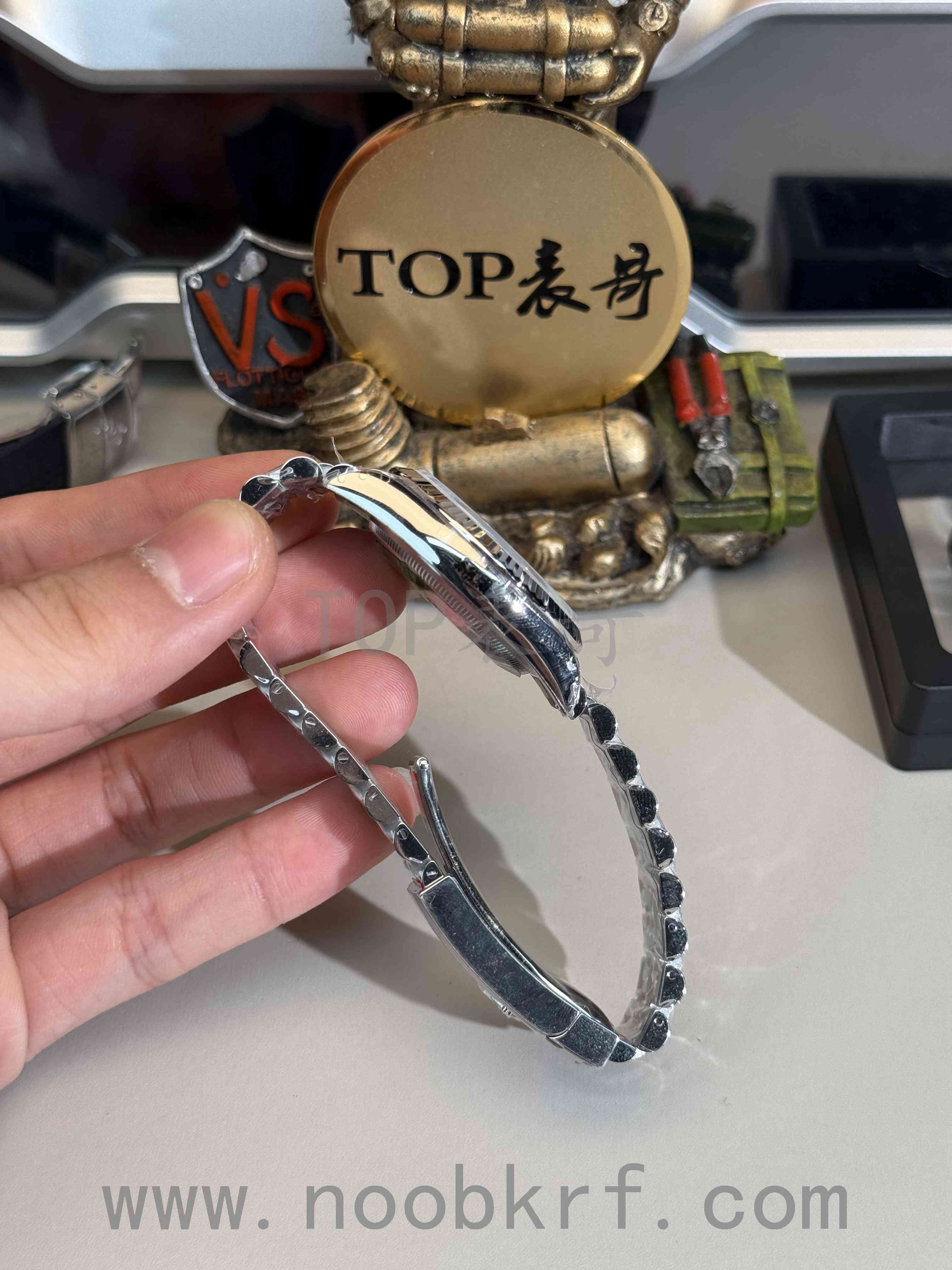 这次vs工厂的升级是十分有针对性的,外观方面在精钢材质外圈进行了电镀18k白金工艺的处理,在外圈方面看着更加闪亮,相比较精钢材质会显得更加明亮有质感。另外则是三点位置的泡泡镜进行了对版的无色镀膜,而且在镜面六点位置的激光防伪皇冠标志更加清晰明显,镜面R边对版。