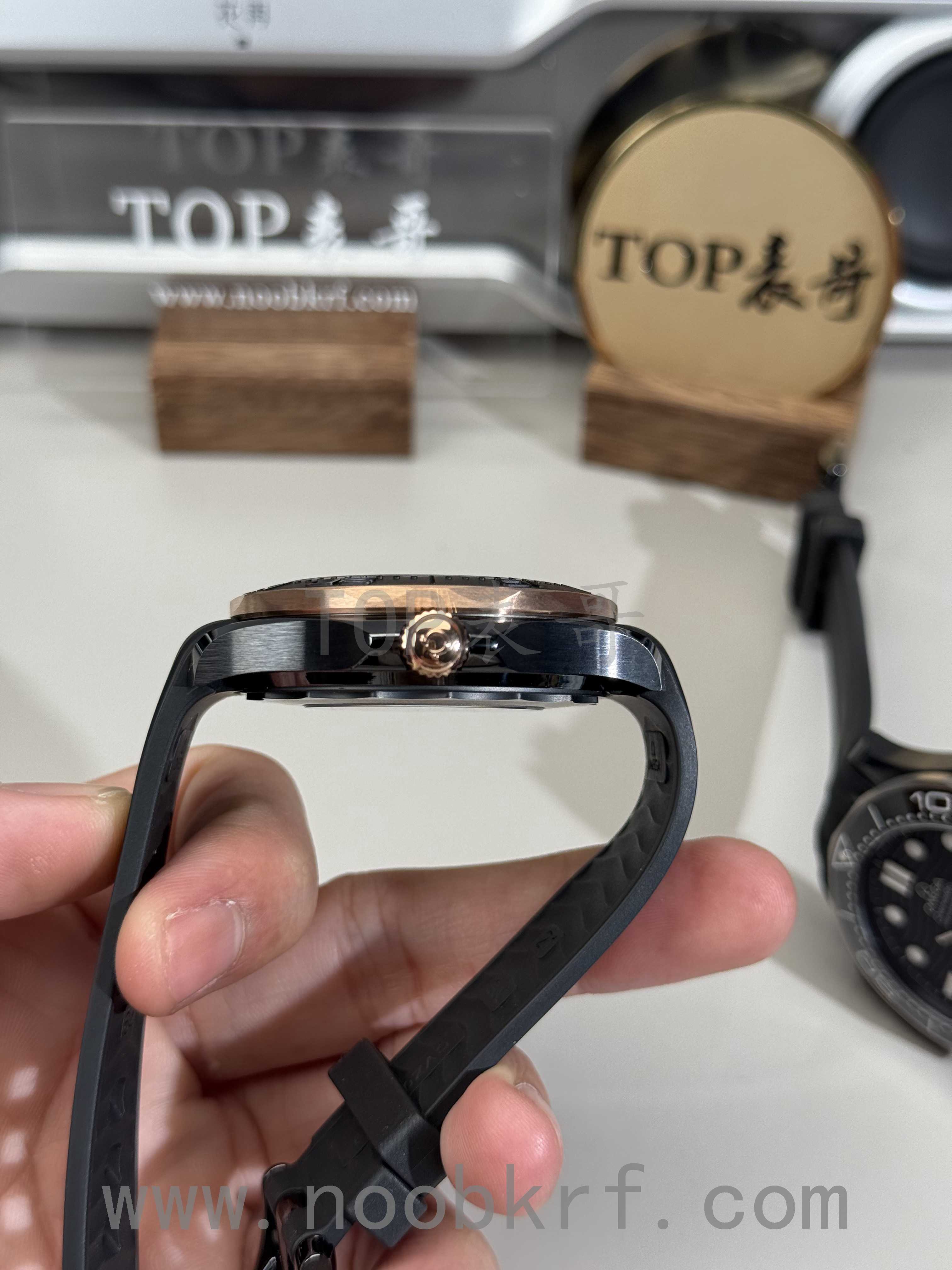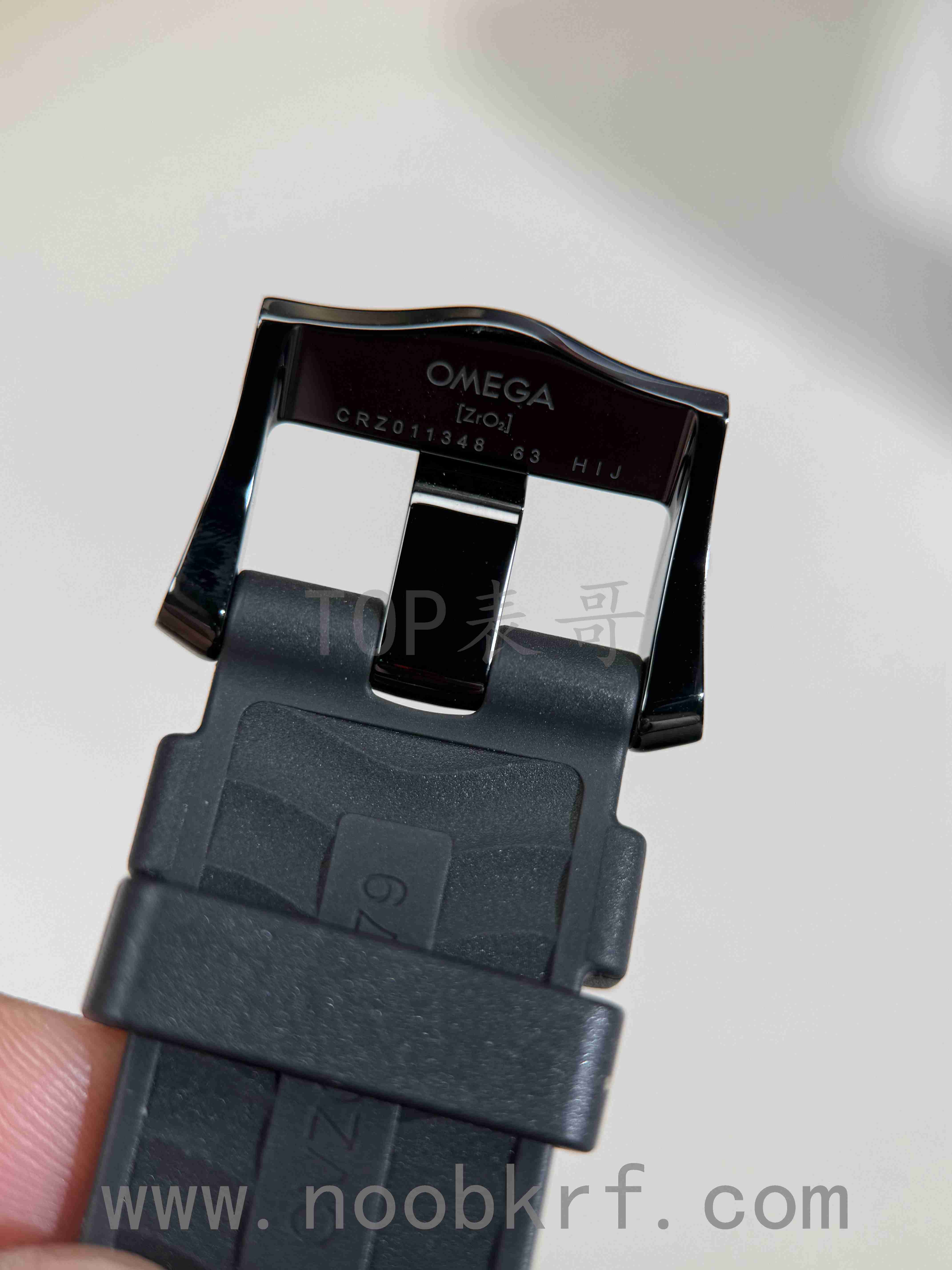 表带采用一体式黑色橡胶材质,触感柔软,贴合性好,非常适合长时间佩戴或潜水运动使用。表扣则为陶瓷材质,采用针扣结构。