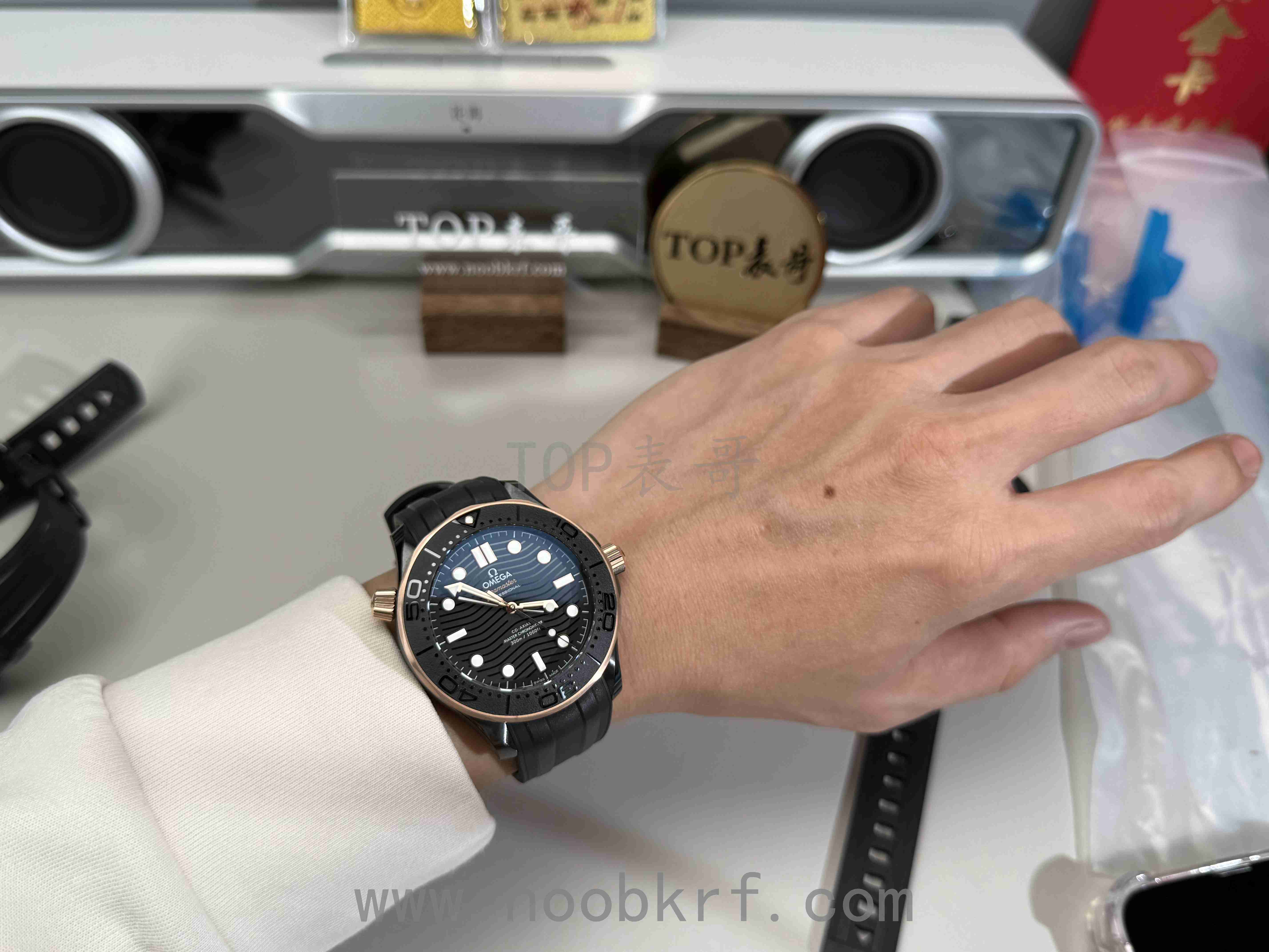 hello,大家好,我是TOP表哥,今天带给大家的腕表评测来自OR工厂的欧米茄海马墨黑金,陶瓷表壳金色外圈的表款,腕表官方型号:欧米茄海马系列210.62.44.20.01.001腕表。