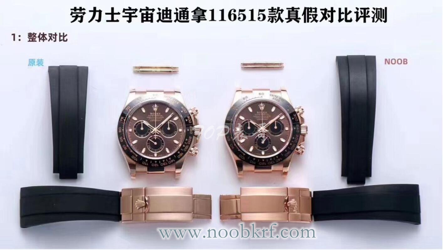 N厂这次终于提供了真假对比素材,可谓是久违的了,现在评价一款复刻表的好坏如果没有直接的对比,出来的结果是不够客观、全面的。而这款劳力士迪通拿116515LN咖啡面在外观方面还是不错的,整体外观上还原度还是值得肯定。