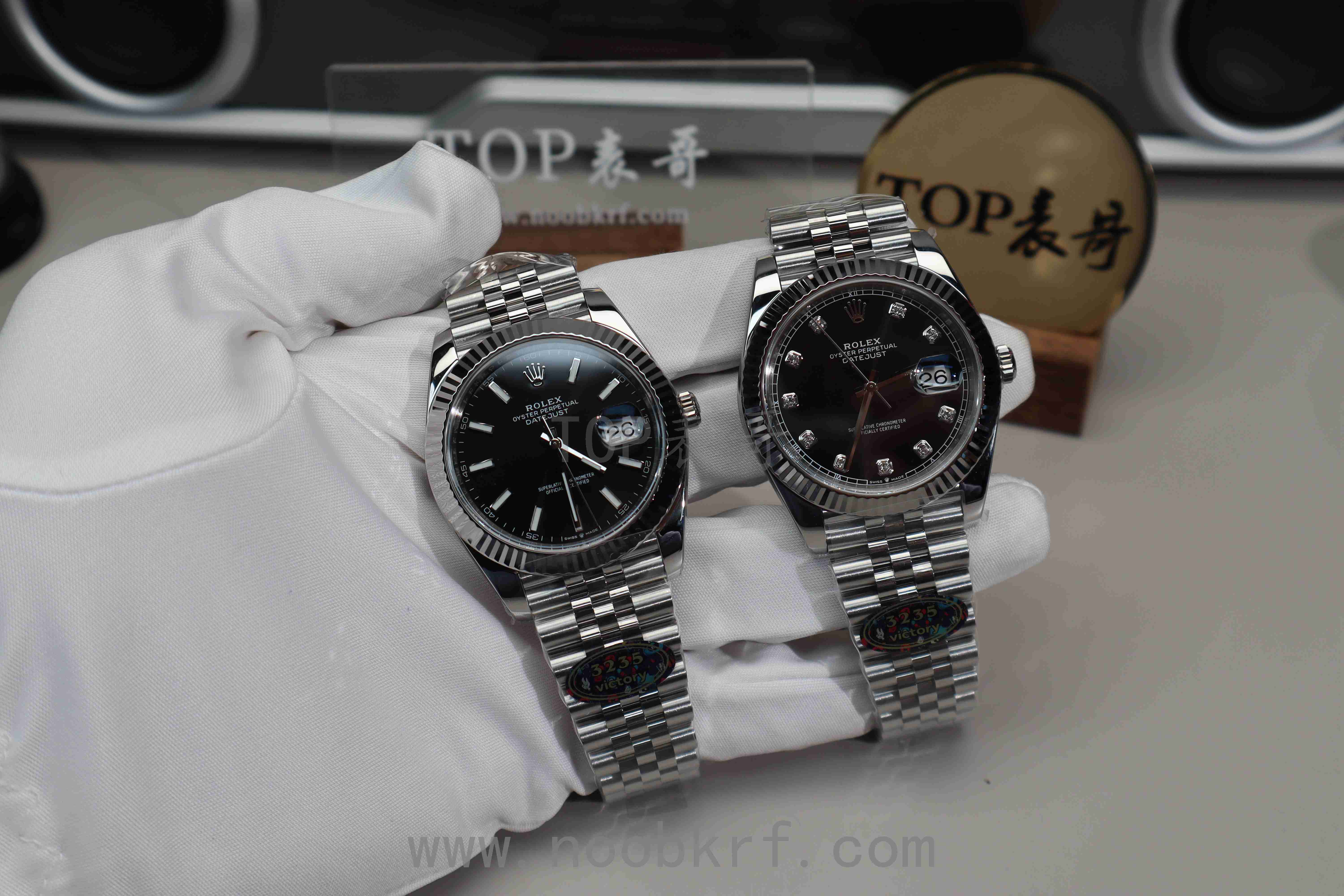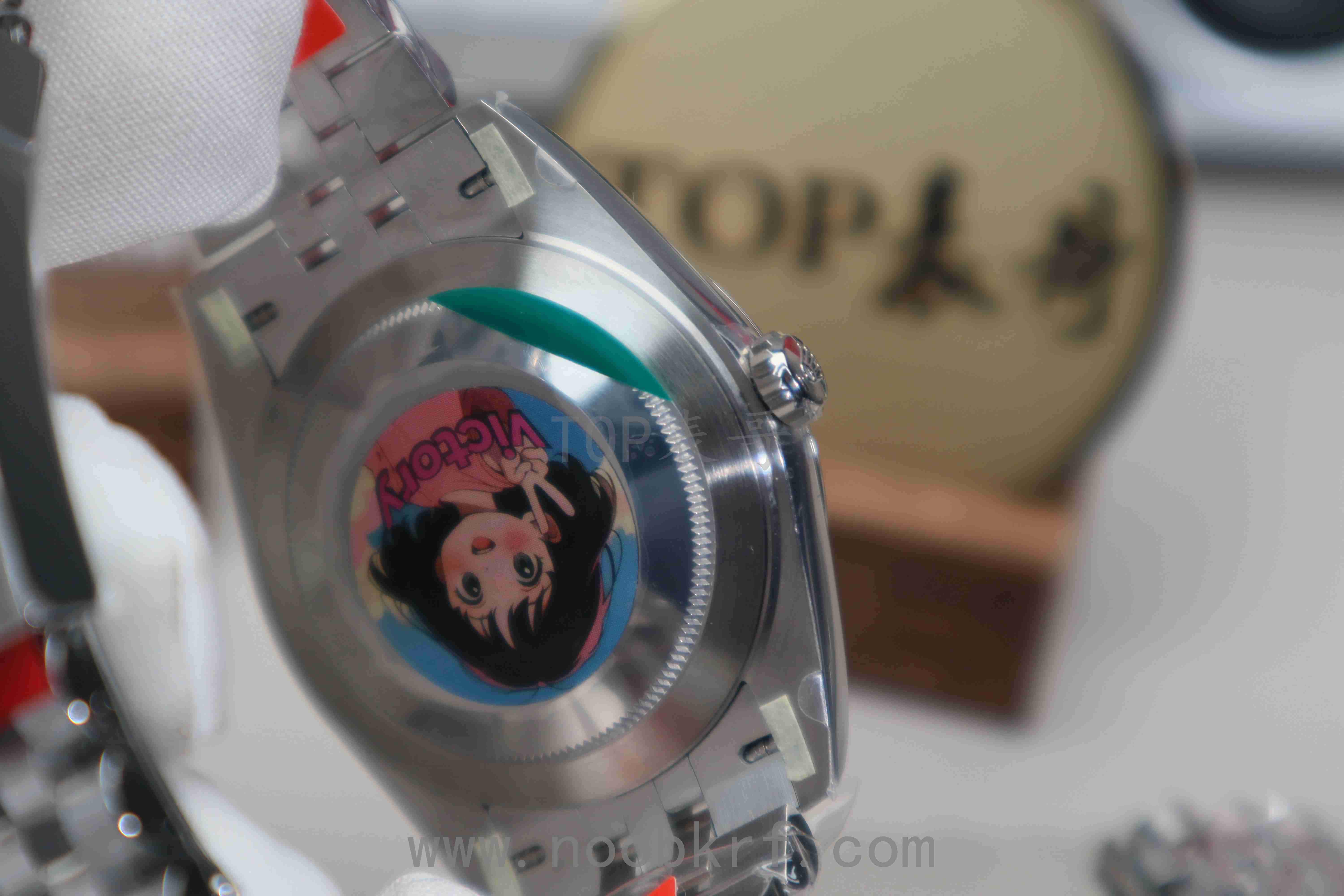 在盘面颜色上这个黑盘基本不存在明显的色差,clean的盘面调色工艺是非常到位的,v厂同样也是延续了clean工厂的优秀做工品质,盘面太阳放射纹路清晰,反光有质感,表壳的壳型、指针、中轴等细节,唯一美中不足的是相比较VS工厂的v2版本,外圈上没有进行电镀白金处理,外圈色泽与质感、亮度上有所欠缺,同时在三点位置的泡泡放大镜目前仅有VS工厂做到了对版的偏白光镀膜处理,反观V厂的有点偏蓝光的不足,不过在表壳、指针、中轴方面还是延续了clean工厂的底蕴,并且也是直接搭载了丹东3235机芯,相比较之前的上海3235机芯在稳定性和可靠性上做到了极大的增强。加上V厂的出货速度和拉满的产能铺货量,目前在出货速度这个方面在这一款而言是要比vs好的,如果追求更高的品质那么表哥还是更加推荐VS工厂的v2版本。