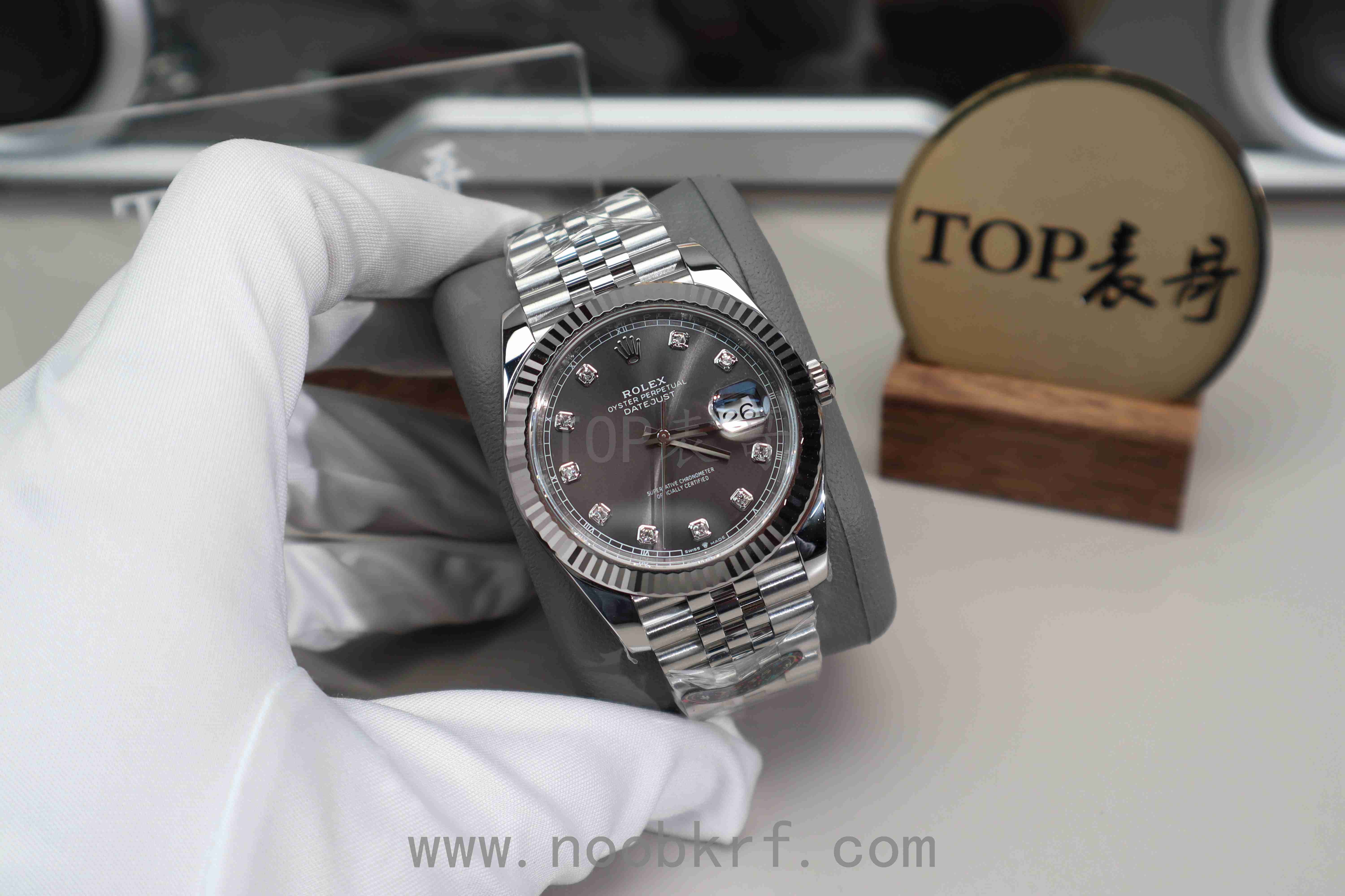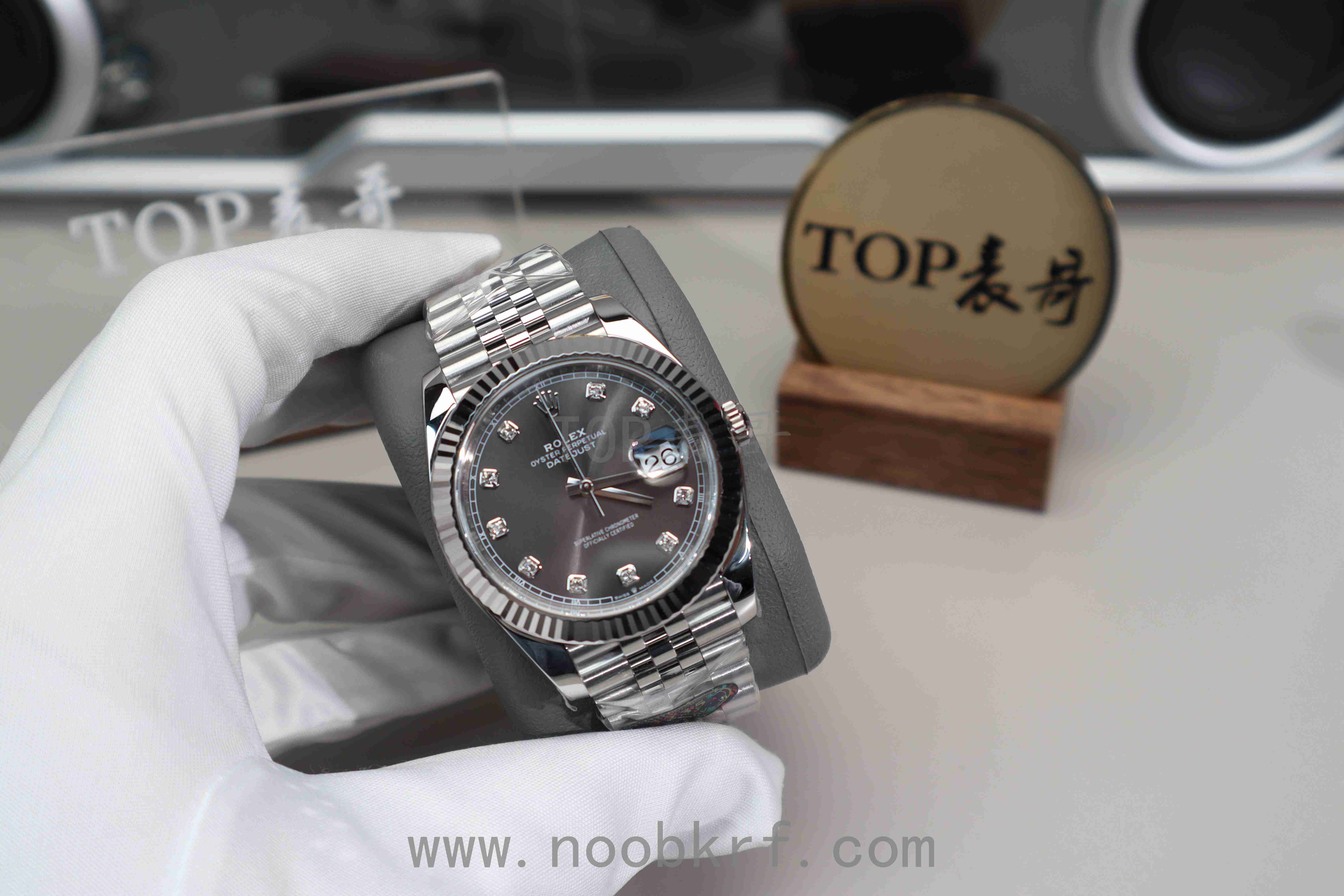 hello,大家好,我是TOP表哥,今天带给大家的腕表评测来自V厂的劳力士日志41毫米系列126334灰钻腕表,粤语又称“会赚”,腕表官方型号:劳力士日志型系列m126334-0006腕表(钻石刻度)、劳力士日志型系列m126334-0014腕表(条钉刻度)。