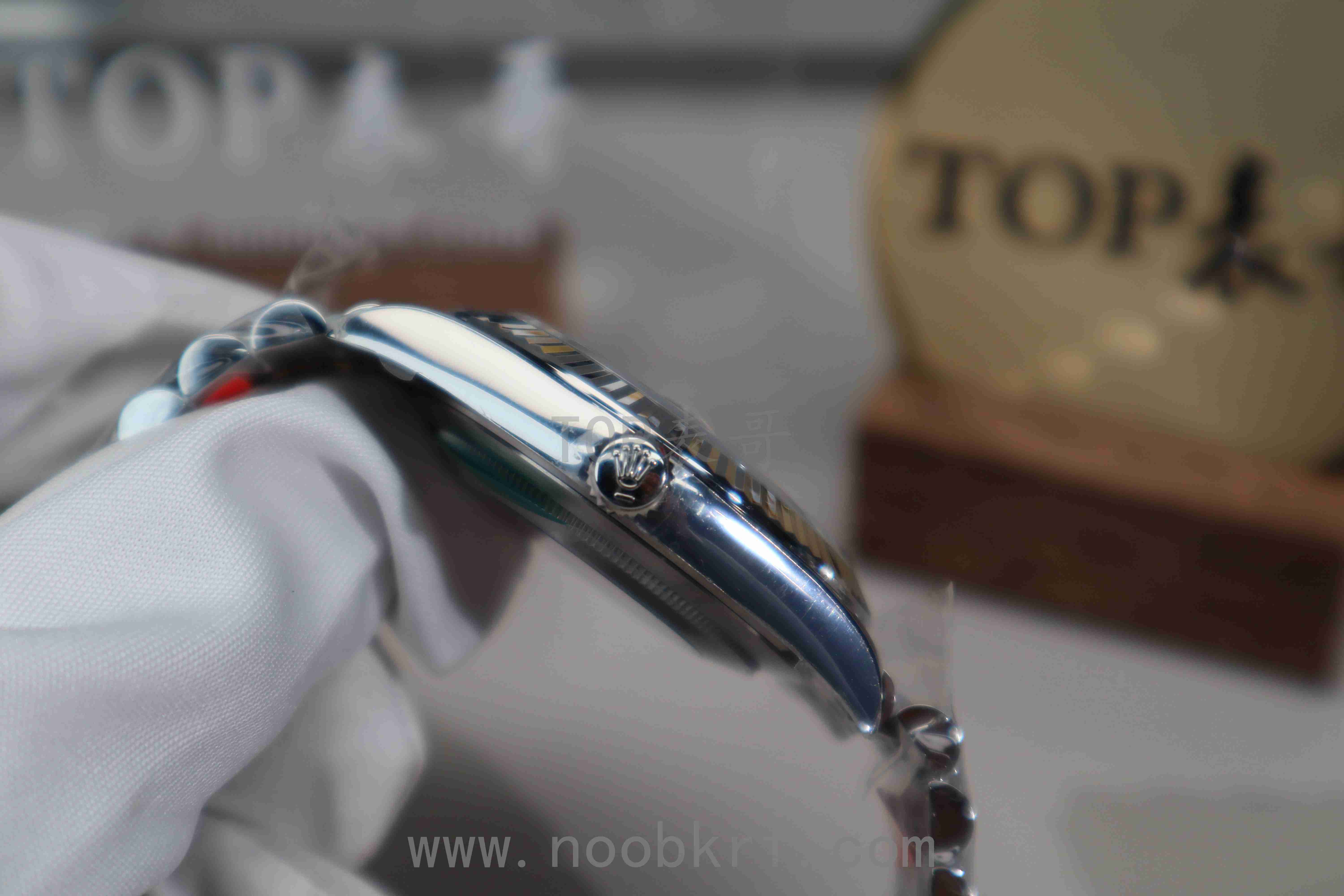 在盘面颜色上这个灰盘基本不存在明显的色差,clean的盘面调色工艺是非常到位的,v厂同样也是延续了clean工厂的优秀做工品质,表壳的壳型、指针、中轴等细节,唯一美中不足的是相比较VS工厂的v2版本,外圈上没有进行电镀白金处理,外圈色泽与质感、亮度上有所欠缺,同时在三点位置的泡泡放大镜目前仅有VS工厂做到了对版的偏白光镀膜处理,反光V厂的有点偏蓝光的不足,不过在表壳、指针、中轴方面还是延续了clean工厂的底蕴,并且也是直接搭载了丹东3235机芯,相比较之前的上海3235机芯在稳定性和可靠性上做到了极大的增强。加上V厂的出货速度和拉满的产能铺货量,目前在出货速度这个方面在这一款而言是要比vs好的,如果追求更高的品质那么表哥还是更加推荐VS工厂的v2版本。
