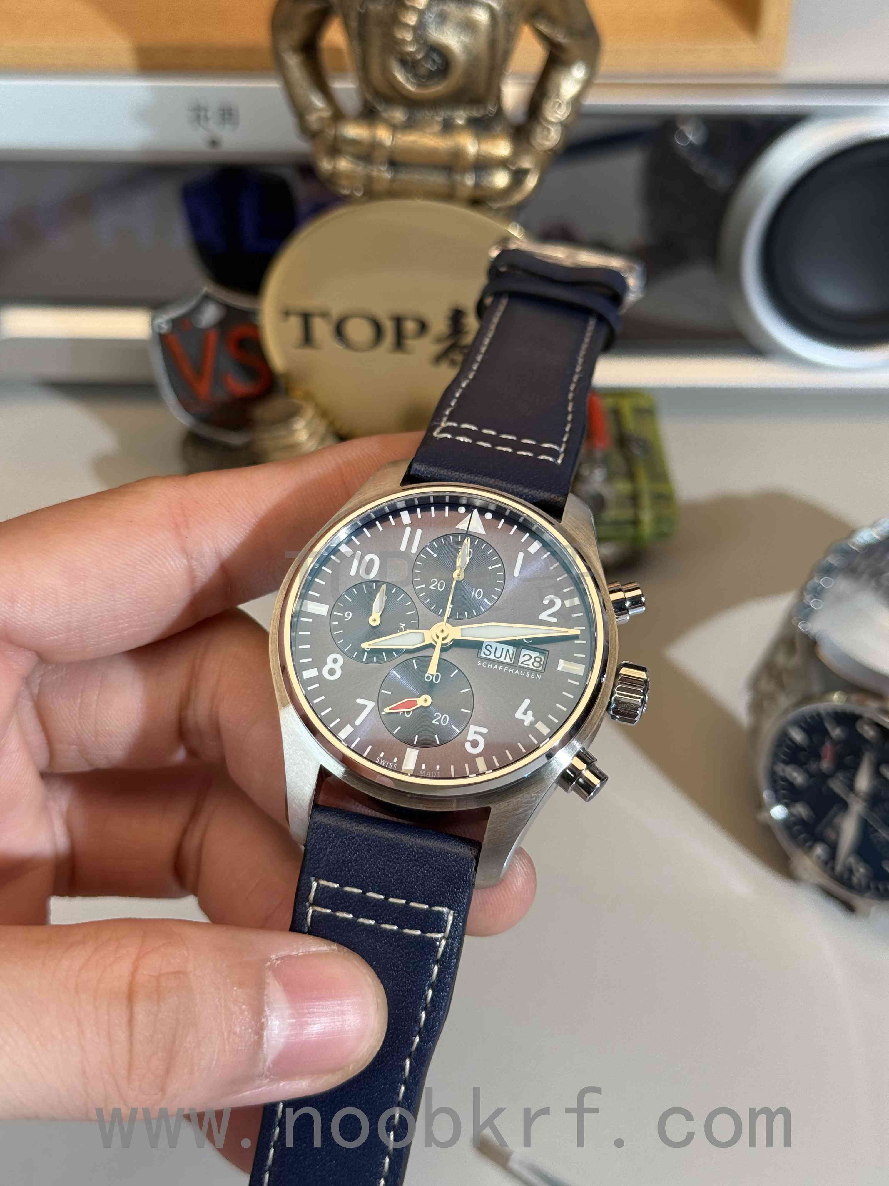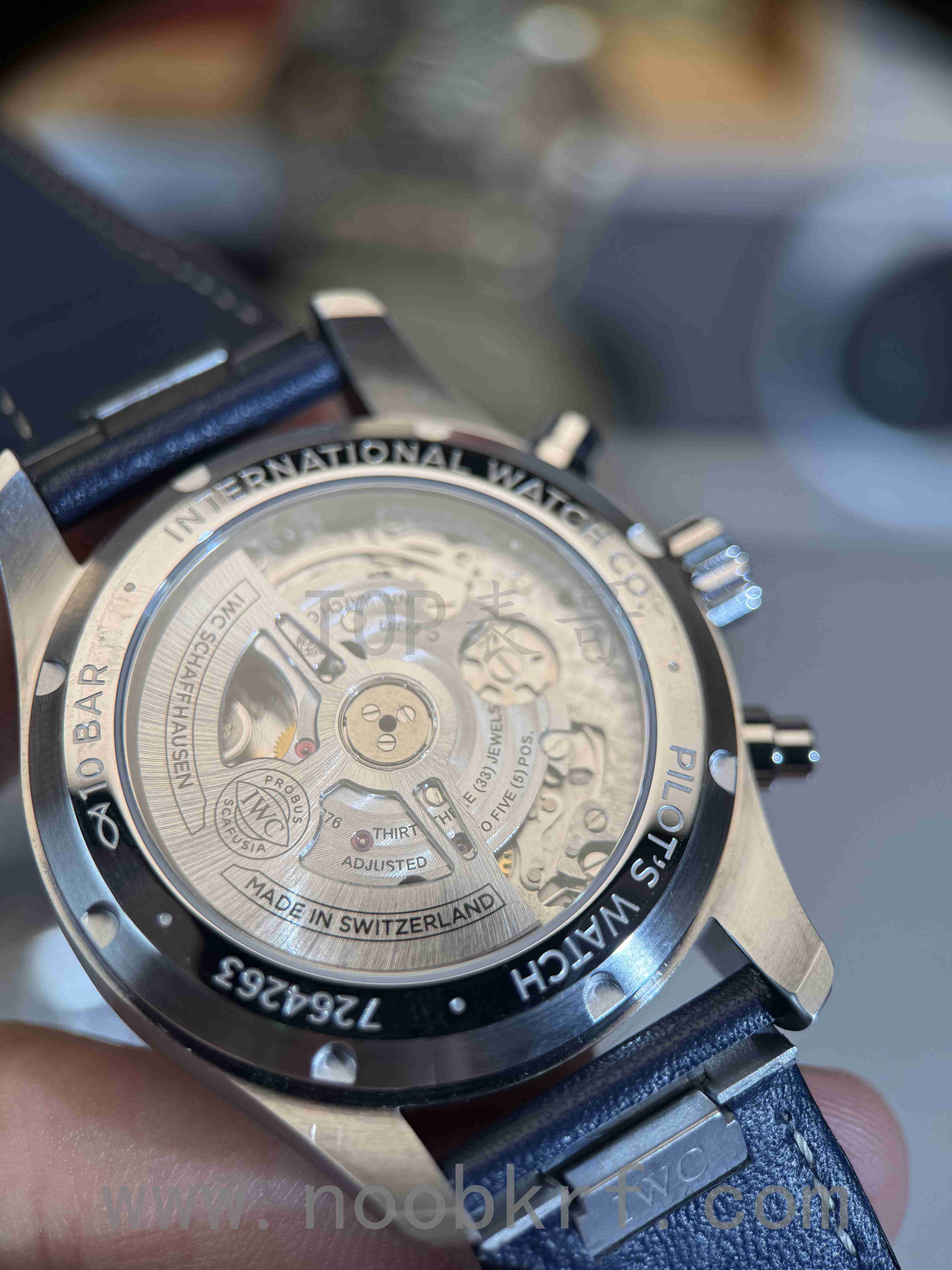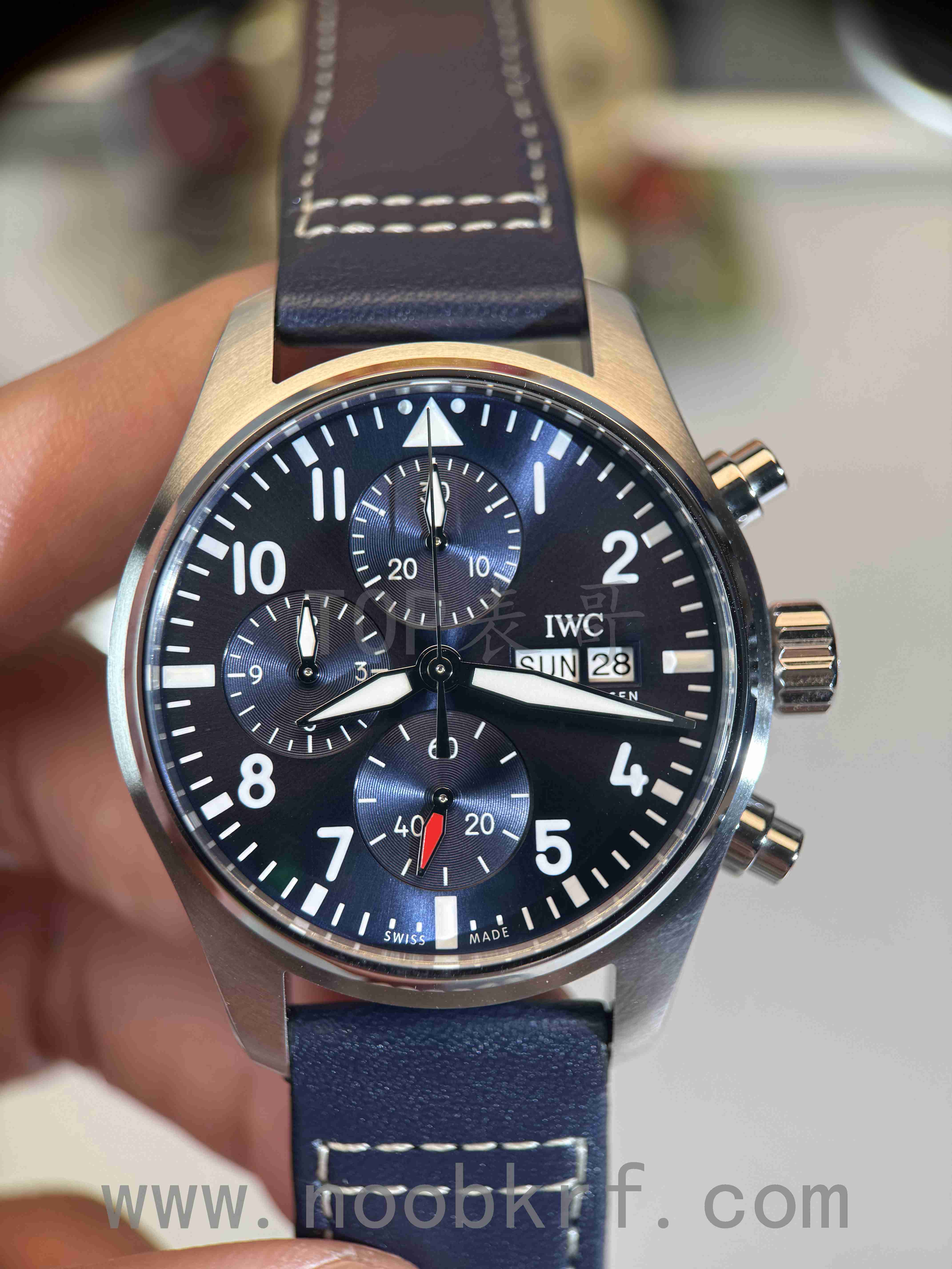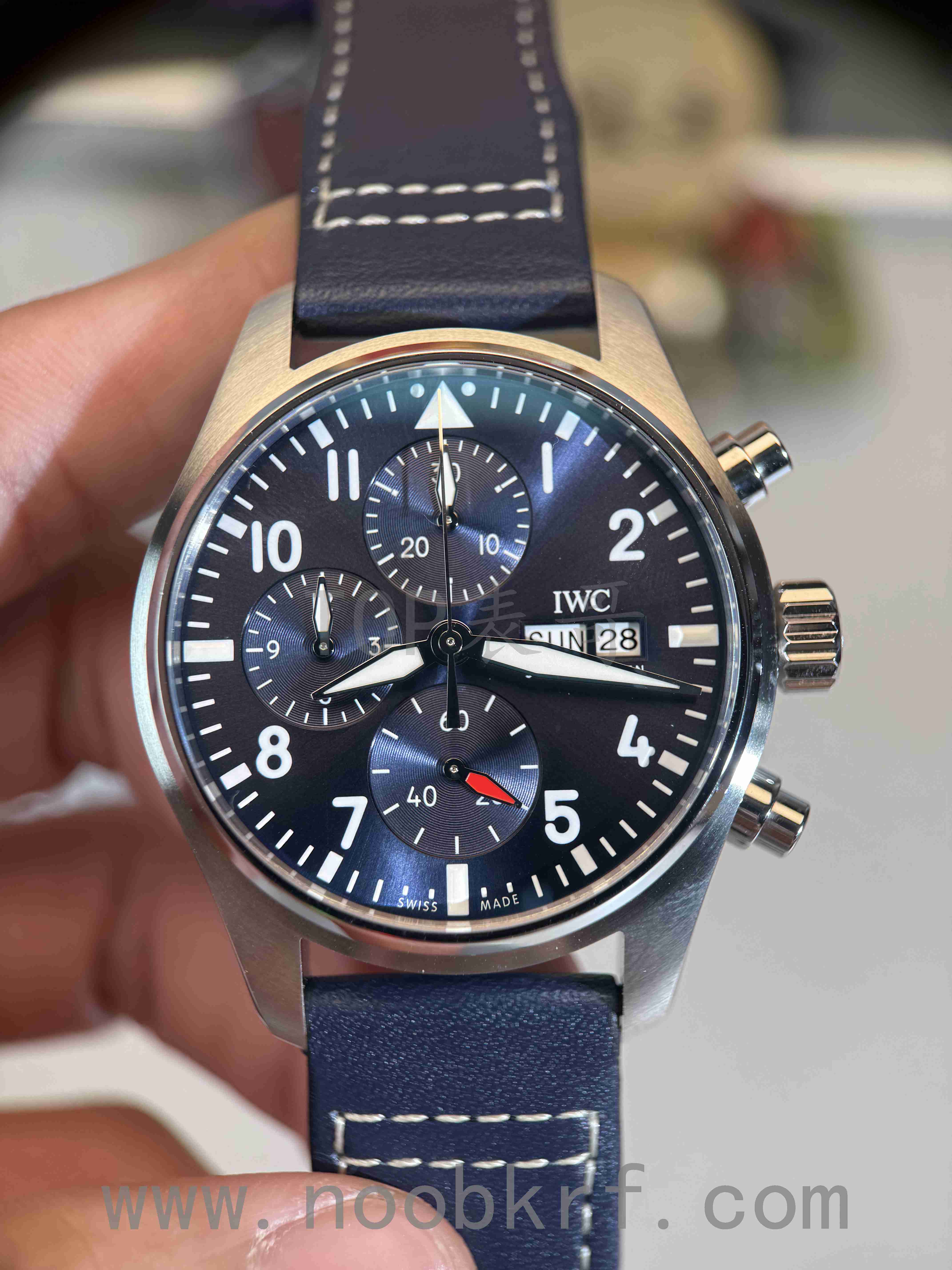 对于APS工厂这一款万国新款飞计41毫米表径蓝盘IW388101腕表来说,最大的对比就是在蓝盘调色上的还原程度,首先要确定的一点就是色差还是存在的,并没有100%做到完全同步的,如果要完全无色差只能是购买正品,不过有一点可以肯定的是APS工厂在这个整体盘面深蓝色的还原程度上有做到90%的程度的,特别是在特定角度反光的程度盘面有几个小区间的深蓝色分布这个方面倒是可以做到对版的分布。相比较新款马克20系列那种强烈的放射纹,新款的飞计41并没有那么强烈,所以在普通灯光下盘面的放射纹路只是浅浅的两三道光束的过度。大部分的情况下,APS的新款飞计41蓝盘都会呈现出如图原版一样的深蓝色盘面,当然了最关键的是就是深邃蓝的效果,表哥所说的10%就是区别于在这点效果的营造上,更多的就是视觉感官上的冲击程度的差异,这种必须是通过实物上手对比才能分辨出来的区别,日常通勤佩戴的情况下只能说是问题不大,前提就是不遇到同款正品。