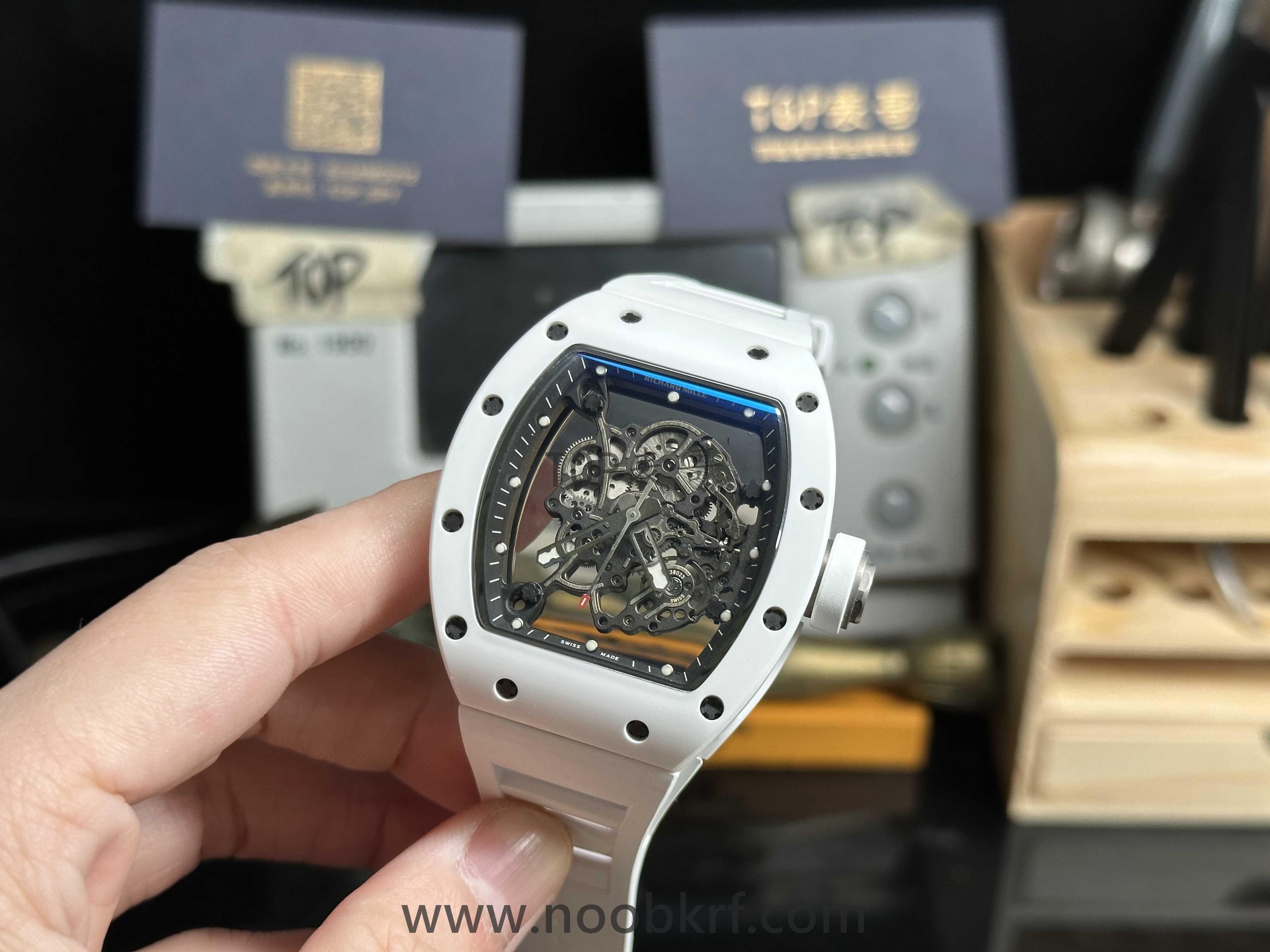 hello,大家好,我是TOP表哥,今天带给大家的腕表评测来自一款非常牛逼的高级订制腕表,RM理查德米勒055白陶瓷,对于理查德米勒腕表的评测一直以来都不多,因为之前是没有实现真正意义上的一体机芯,后面的BBR工厂,RM工厂或者SONIC工厂等等一体机芯都没有完全实现真正的“一体”,具体原因就是理查德米勒独特的镂空机芯设计实在太难复刻了。而今天这款腕表搭载订制的RMUL2机芯真正意思上实现了“原版复刻”,对于其详细的评测只能是通过动态的视频实拍才能展示出来,老板们可以通过观看视频来了解。