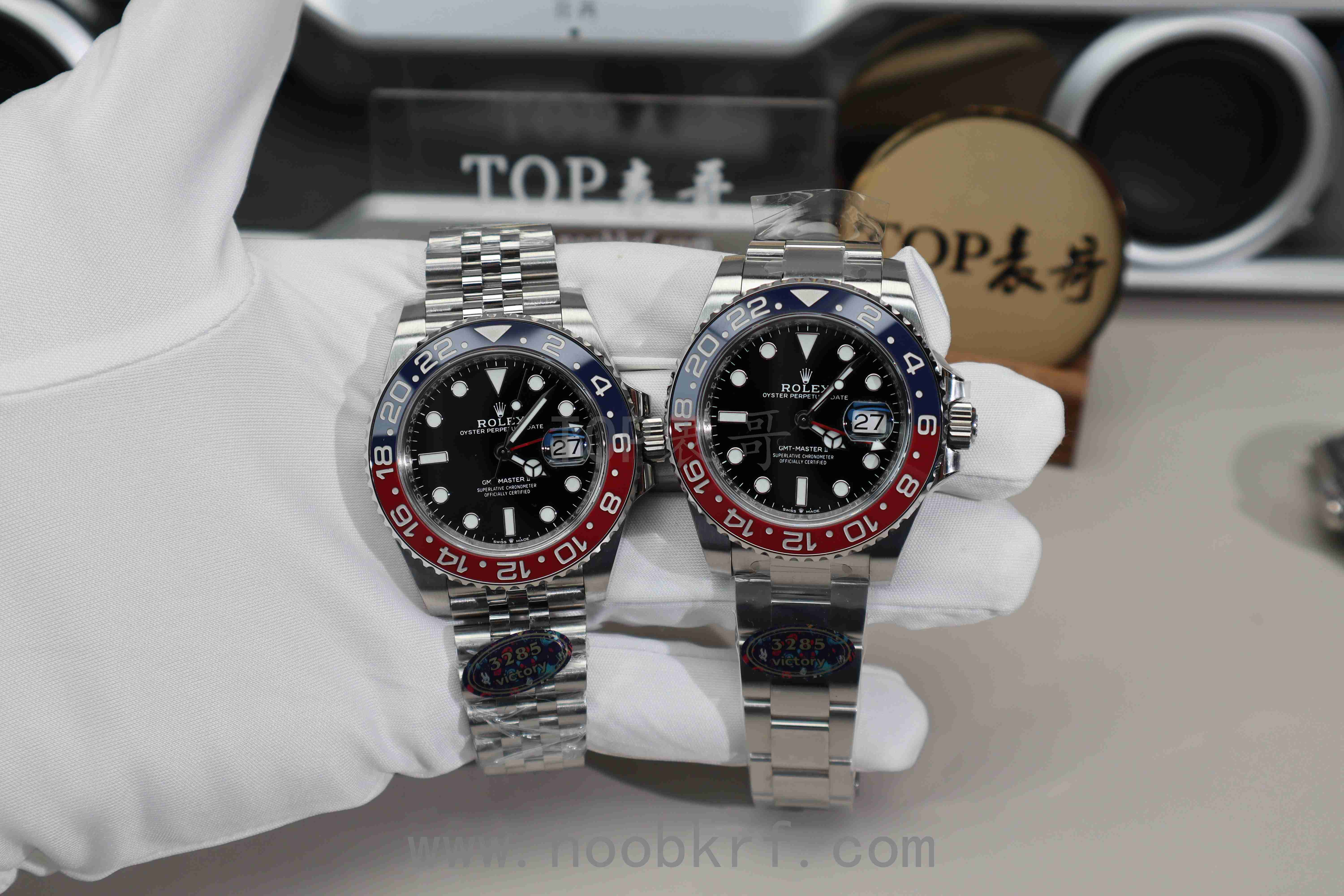 V厂号称是clean工厂的正式接班人,今天表哥也是拿到了全系列的最新样板,当表哥拿到这一批样板的时候的确是有许多曾经clean的影子,首先是外圈的颜色上是对版的一体成型外圈,指针做工还是十分细腻,实心中轴,不过v厂对应的是劳力士旧款的可乐圈,外圈牙口偏细的版本,并且也是搭载了丹东3285机芯,稳定性上是非常可靠的,不过相比较当下VS工厂的最新版本,可以说在价格上仅仅是便宜了三百左右,在细节的做工处理上是不如VS工厂做得更加对版的,只能说在稍微性比价或者要求出货速度比较快的情况下,可以考虑v厂,追求品质更加完美的版本目前表哥还是推荐VS工厂的最新版本。VS工厂劳力士可乐圈v3版本真假对比评测