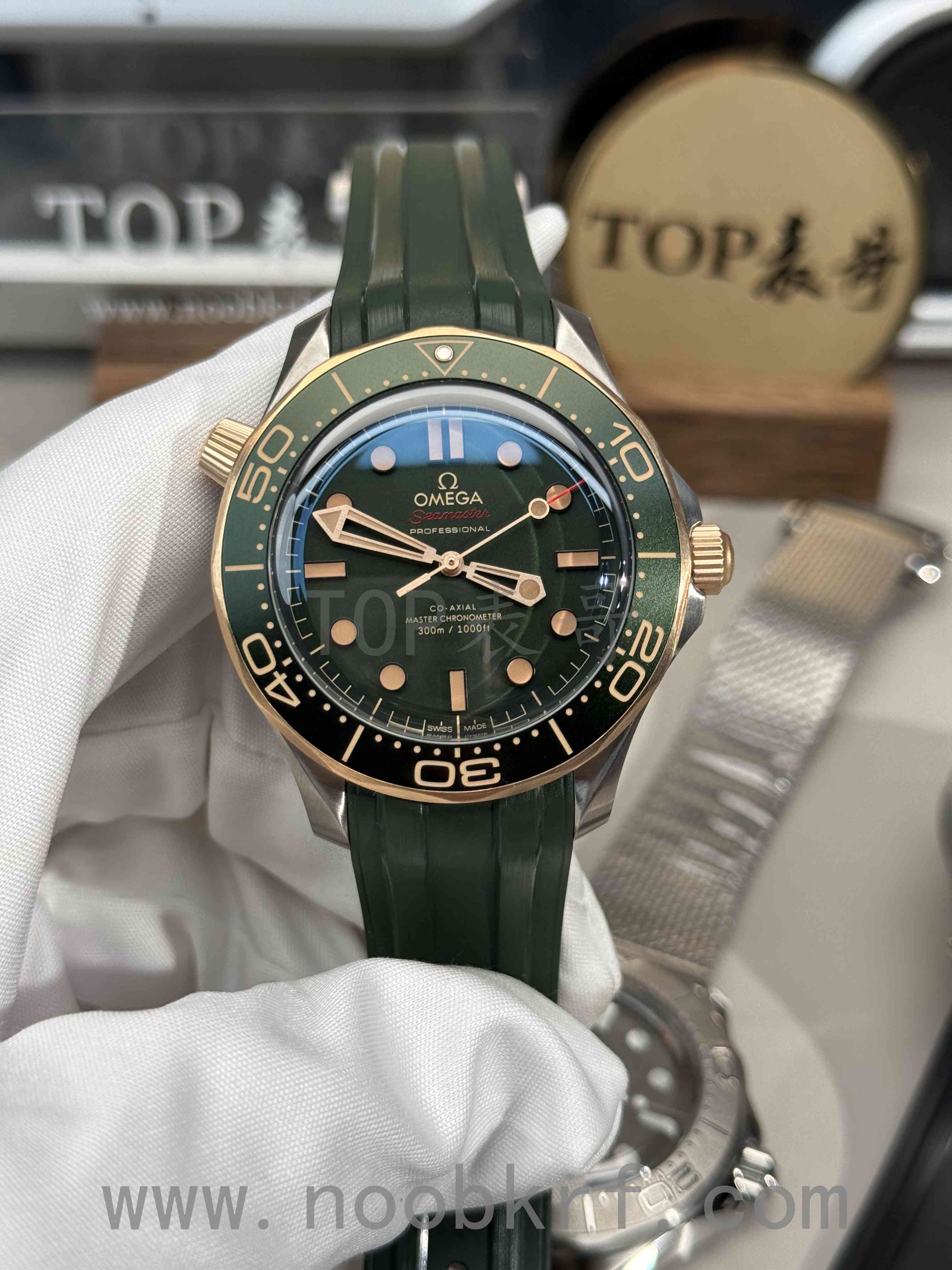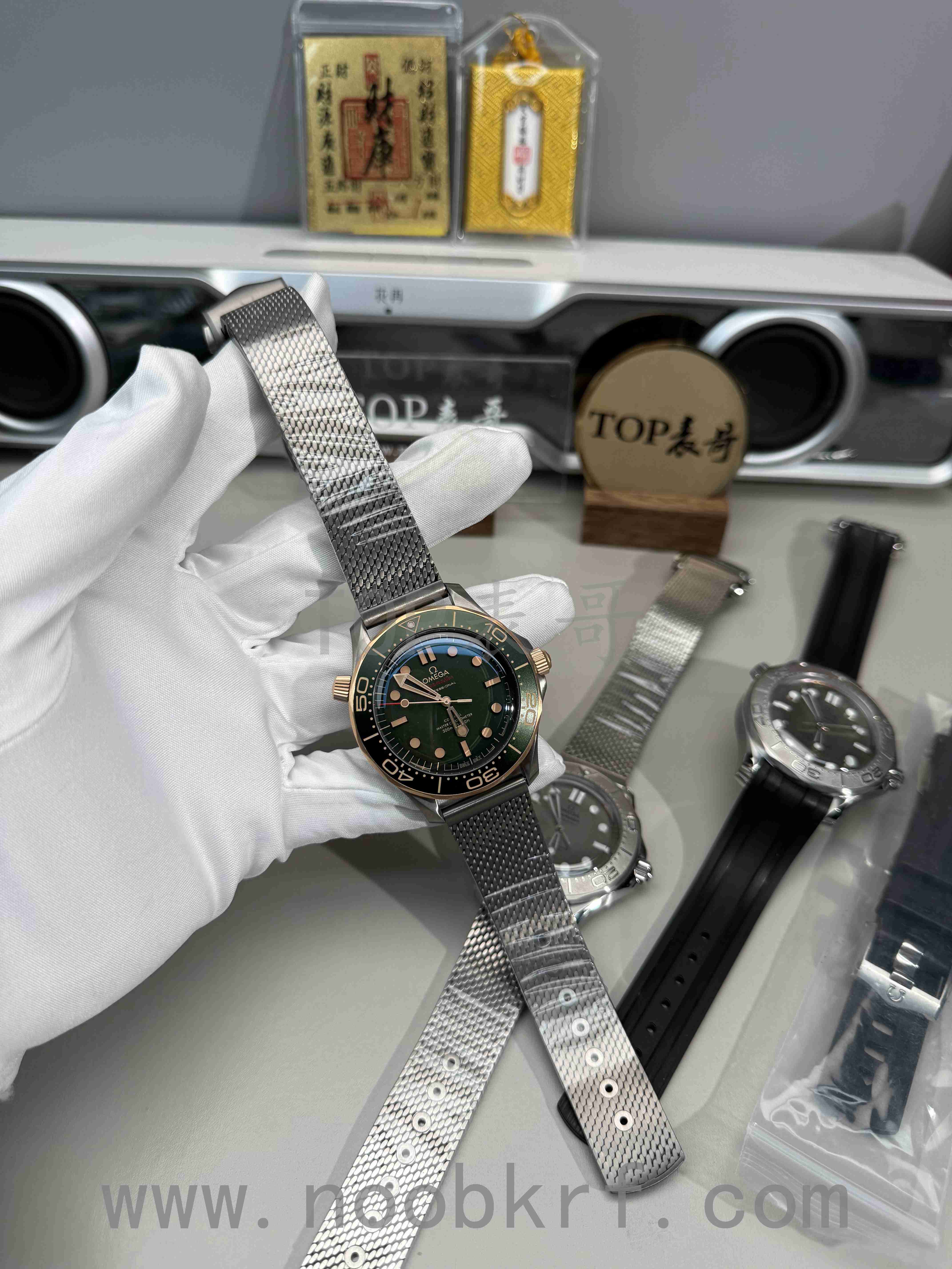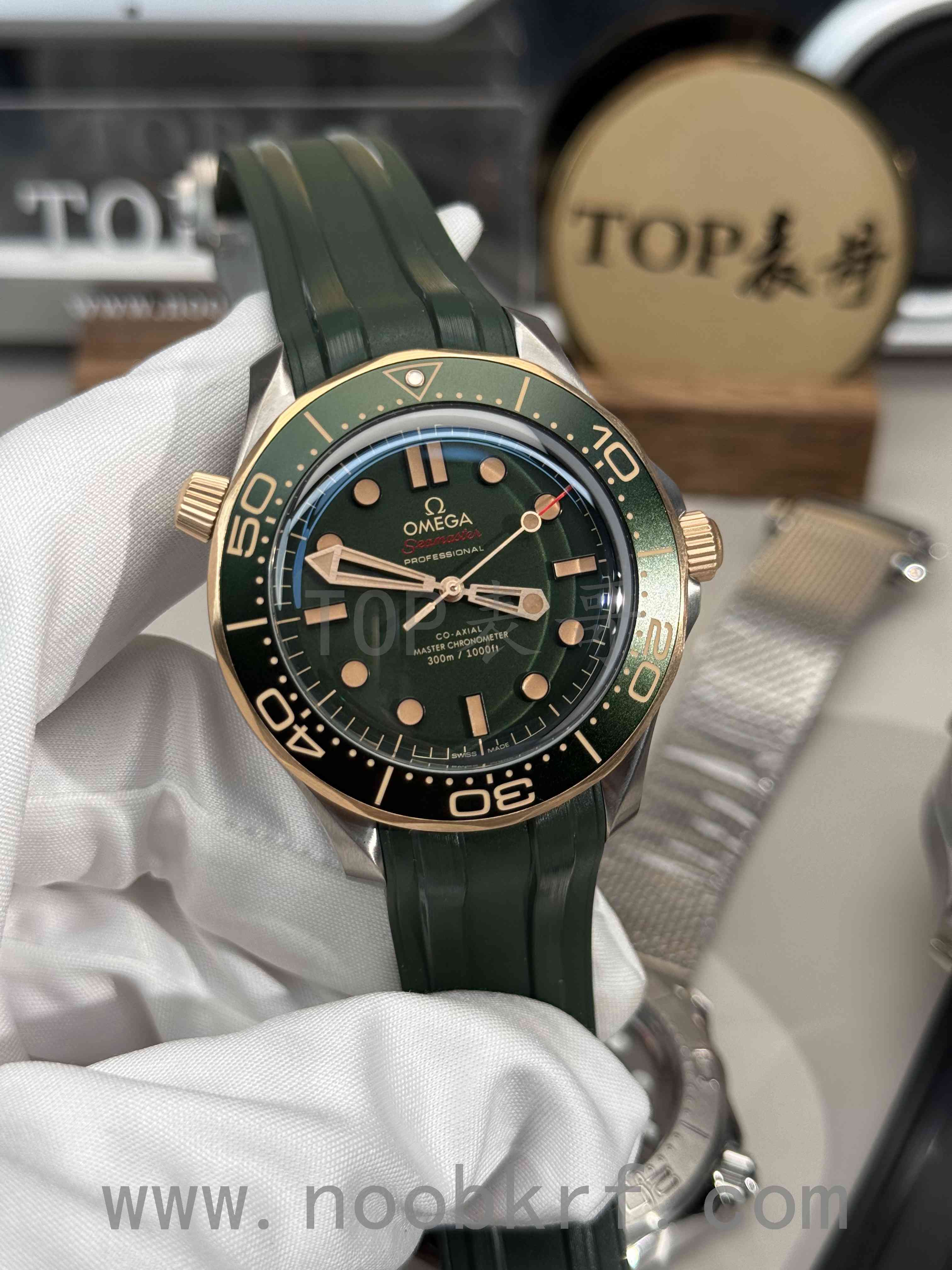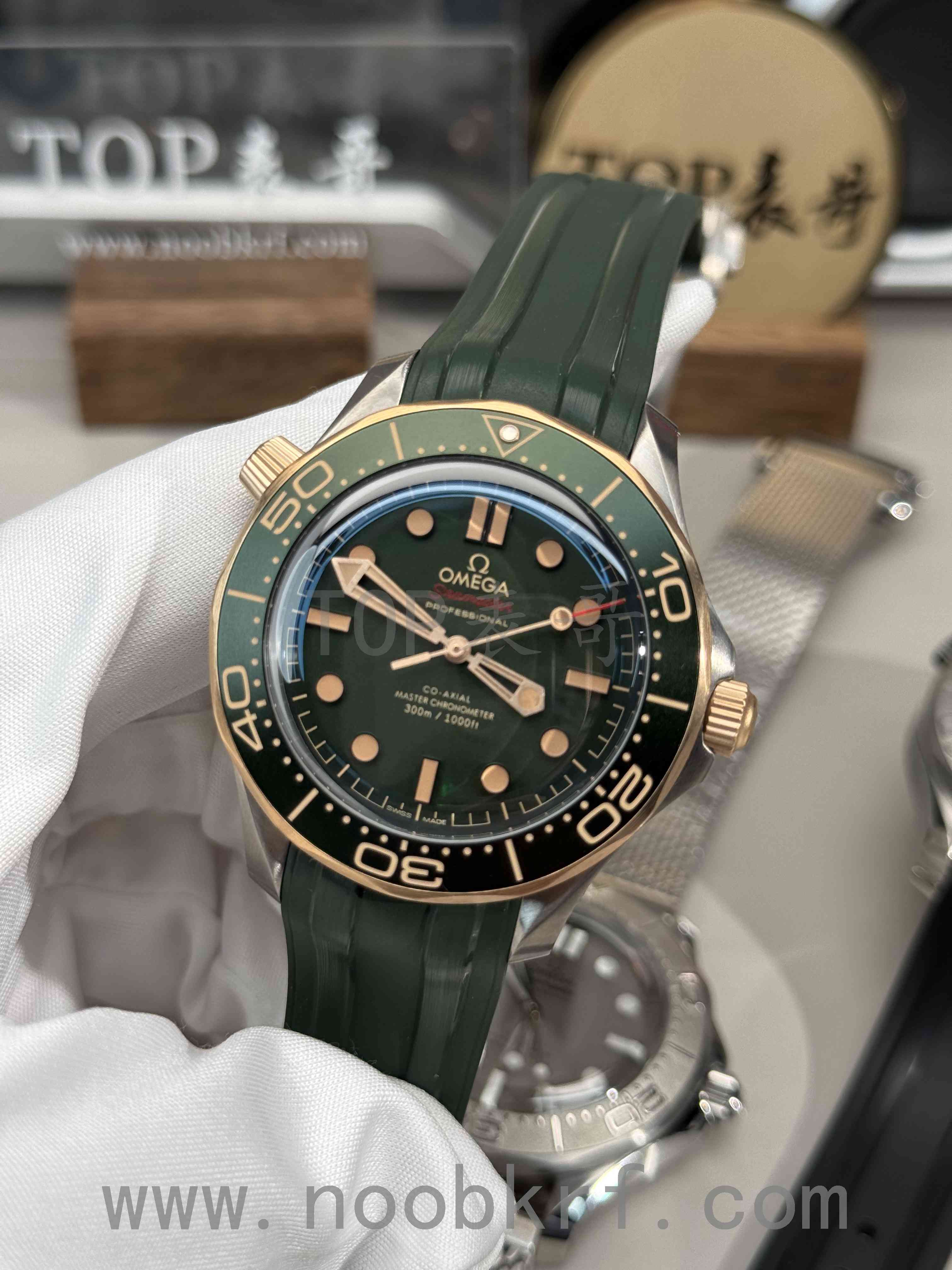 hello,大家好,我是TOP表哥,今天带给大家的腕表评测来自OR工厂的最新样板,全新欧米茄海马300系列的007无暇赴死款式“青铜金绿盘”,腕表官方型号:欧米茄海马系列210.90.42.20.10.001腕表(米兰带款式)、欧米茄海马系列210.92.42.20.10.001腕表(胶带款)。