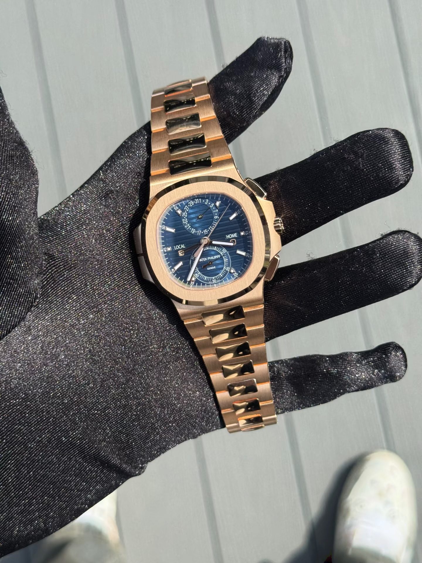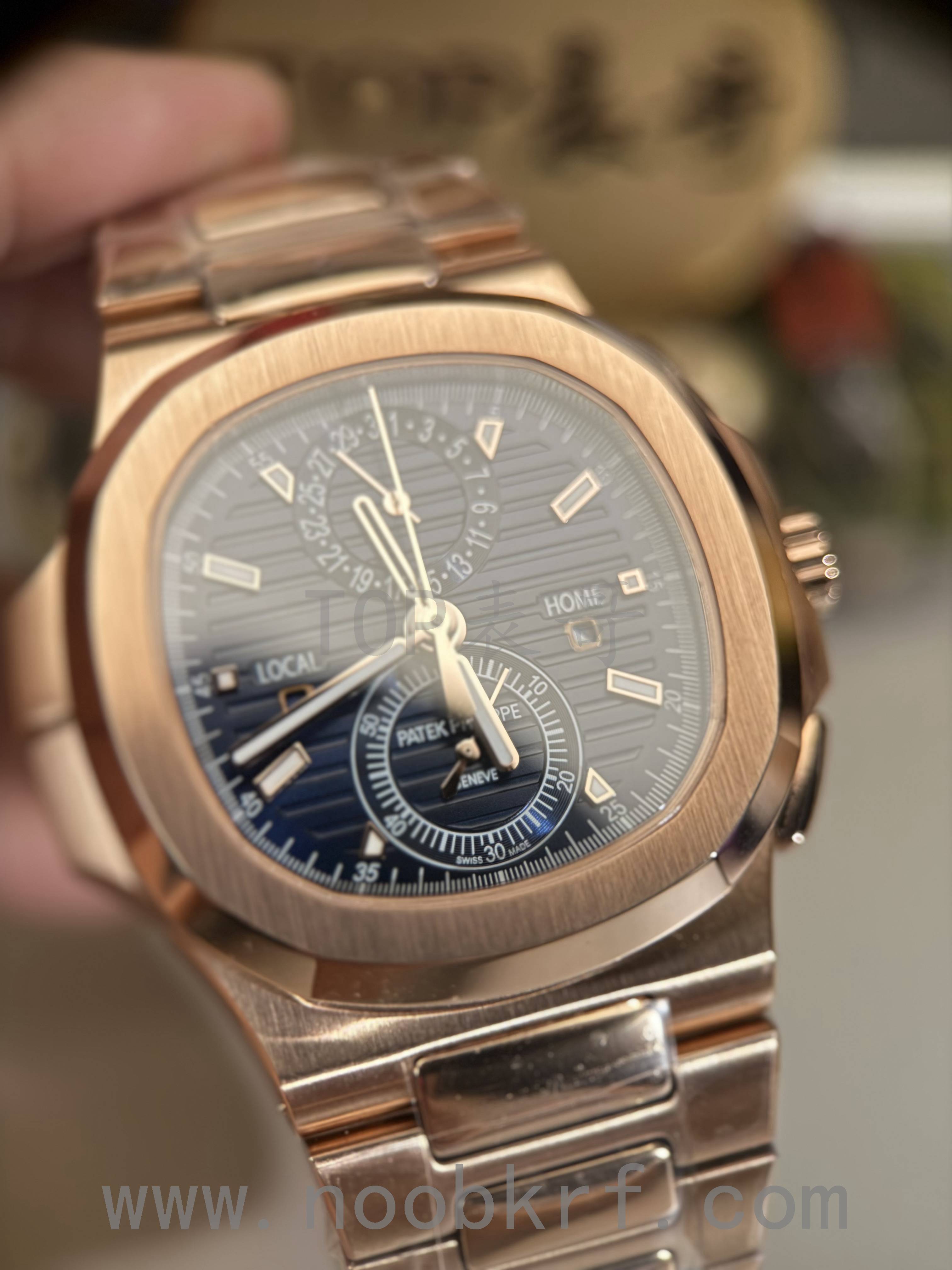 这款腕表之所以成为收藏热点,不仅在于其品牌溢价,更在于 “稀缺性 + 实用性 + 美学价值” 的三重稀缺性:玫瑰金材质在运动表中本就少见,叠加双时区 + 计时的复杂功能,使其在鹦鹉螺系列中脱颖而出,成为商务精英、明星名流(如劳塔罗・马丁内斯、肖恩・科里・卡特等)的首选配饰。