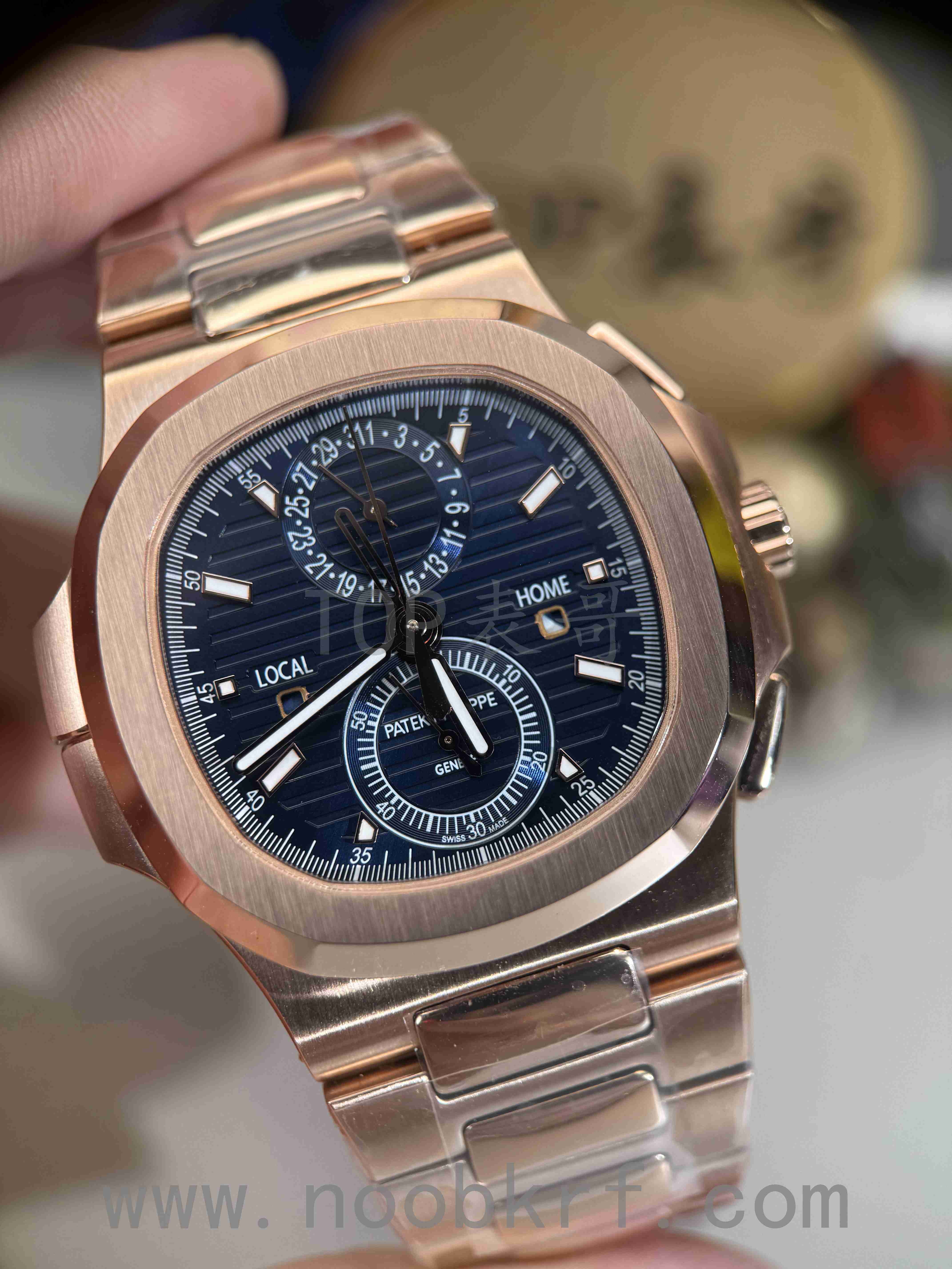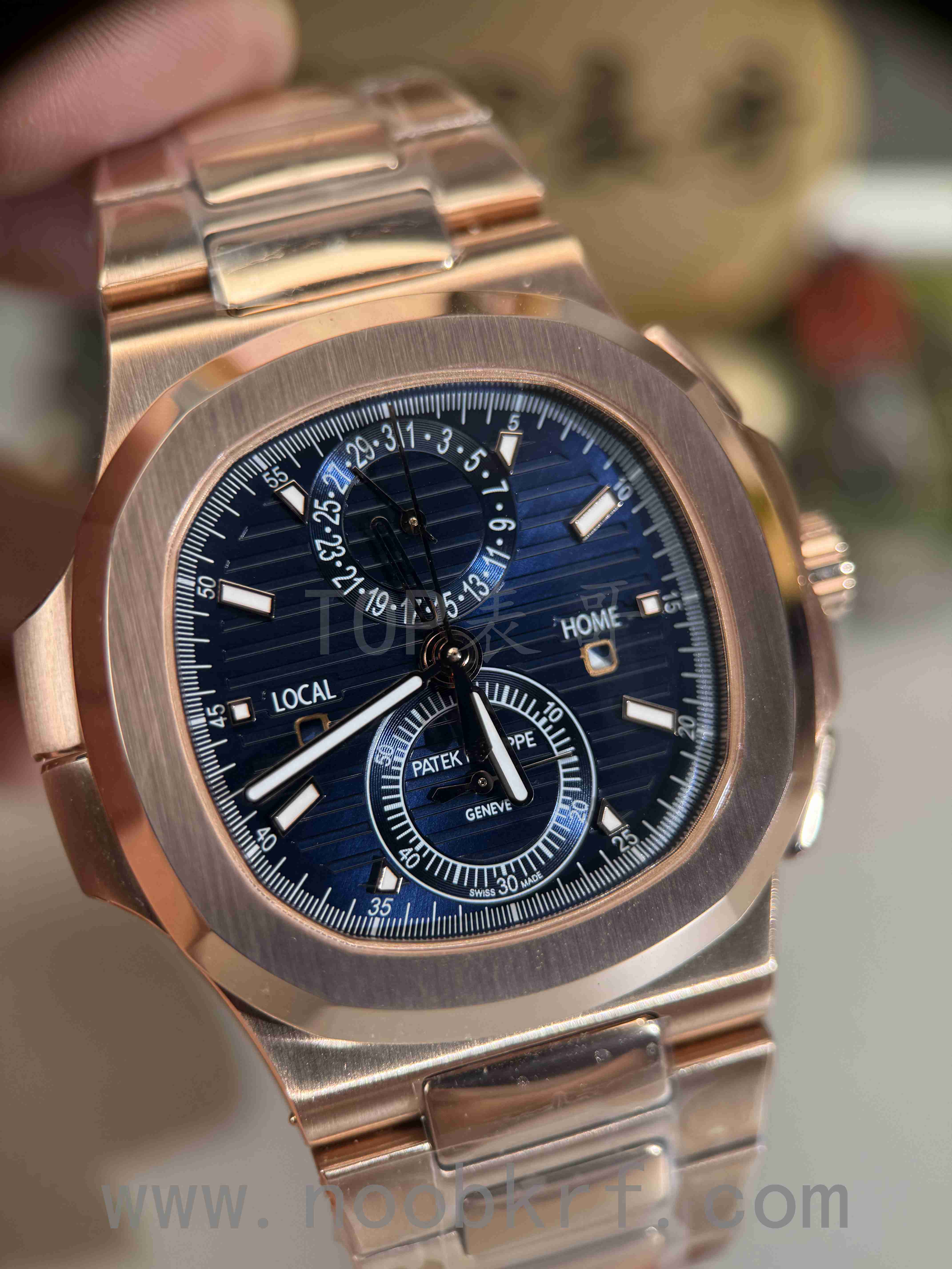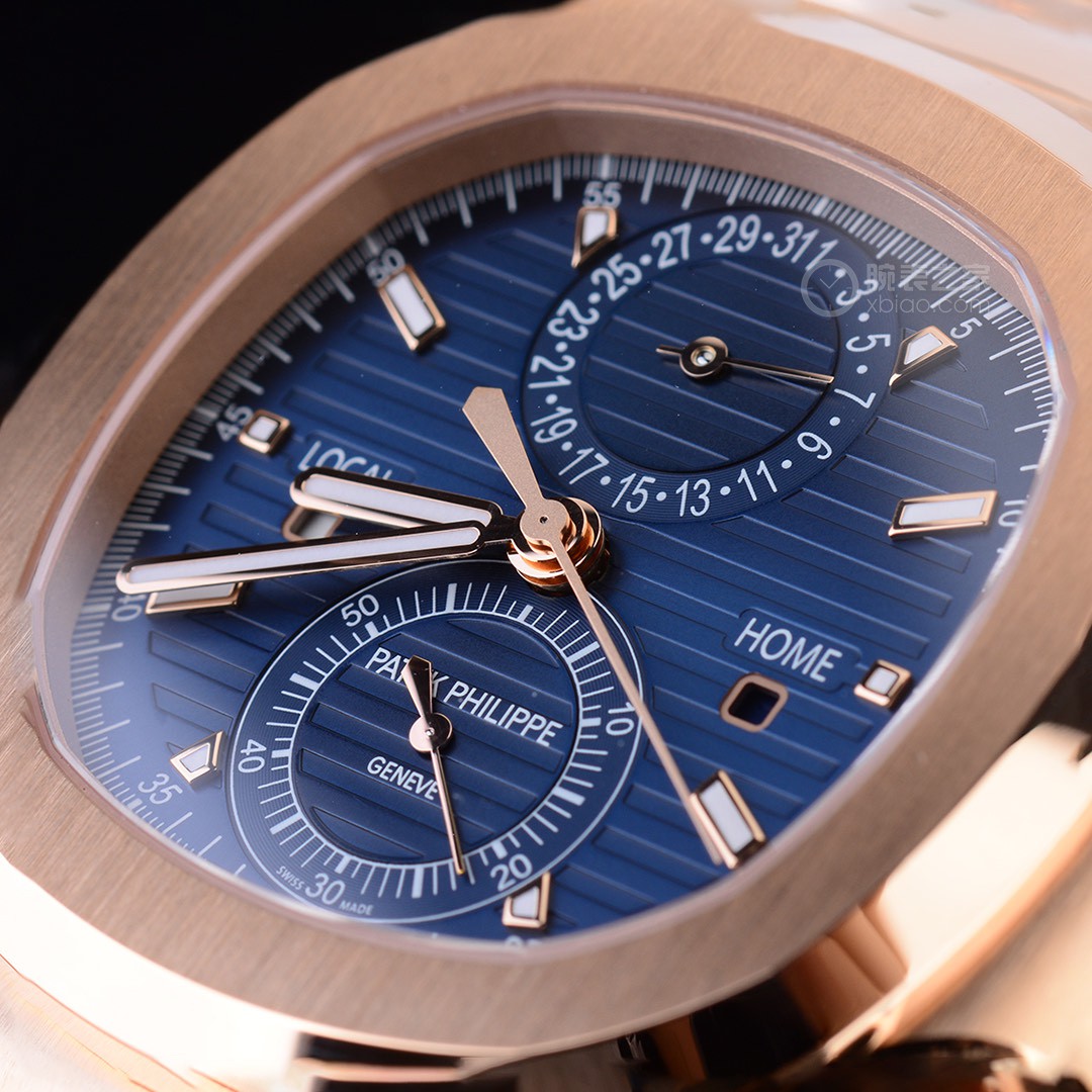 自 1976 年诞生以来,百达翡丽鹦鹉螺系列便以 “可佩戴的奢华运动表” 理念颠覆行业认知。其中,型号 5990/1R-001(简称 5990R)作为系列中的复杂功能旗舰,将 18K 玫瑰金的温润质感与深海蓝的神秘深邃完美融合,既是商务精英的身份象征,也是钟表收藏家眼中的 “毕业级” 珍品。它不仅延续了鹦鹉螺的经典基因,更以精湛机芯与实用功能,重新定义了高端运动腕表的标杆。