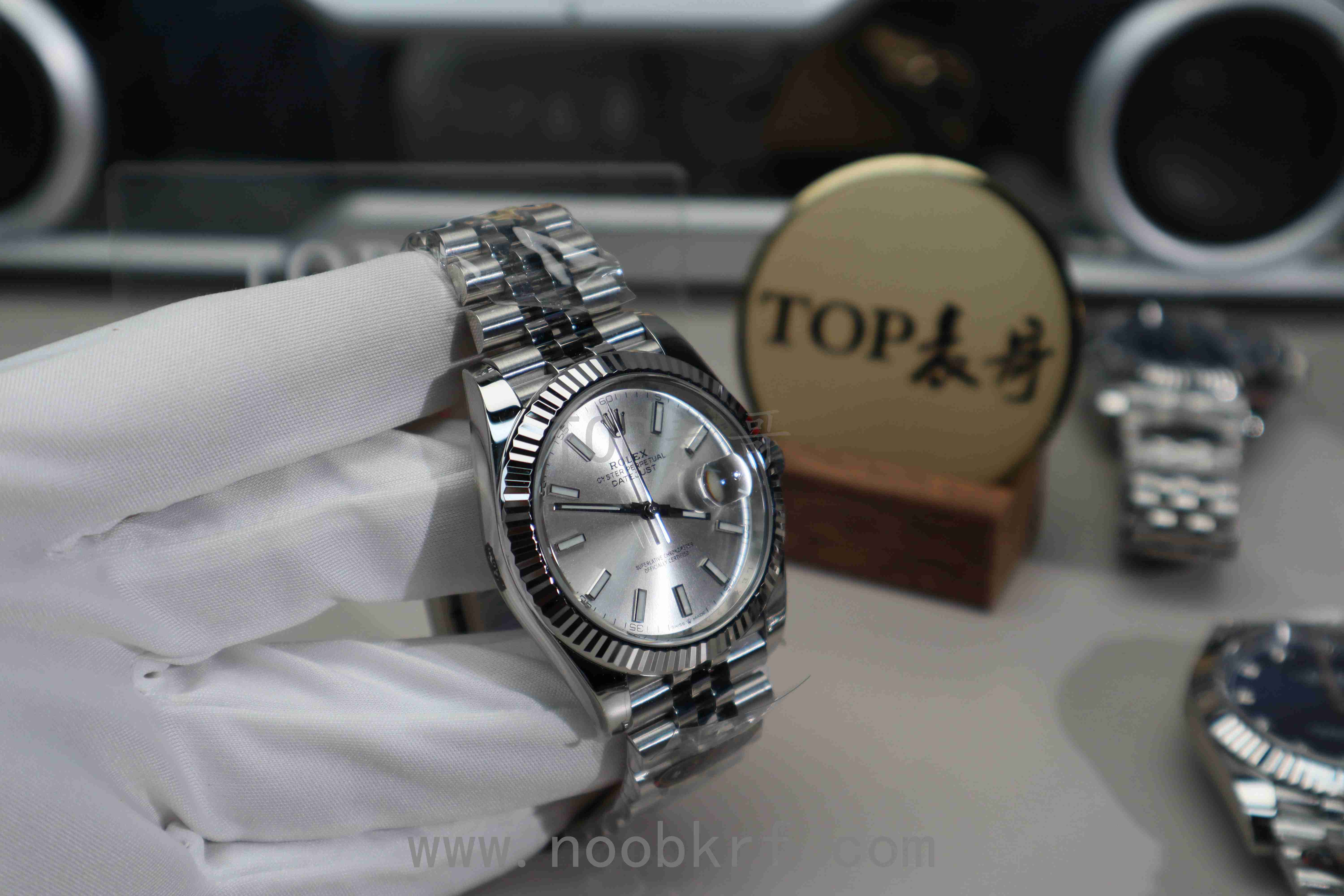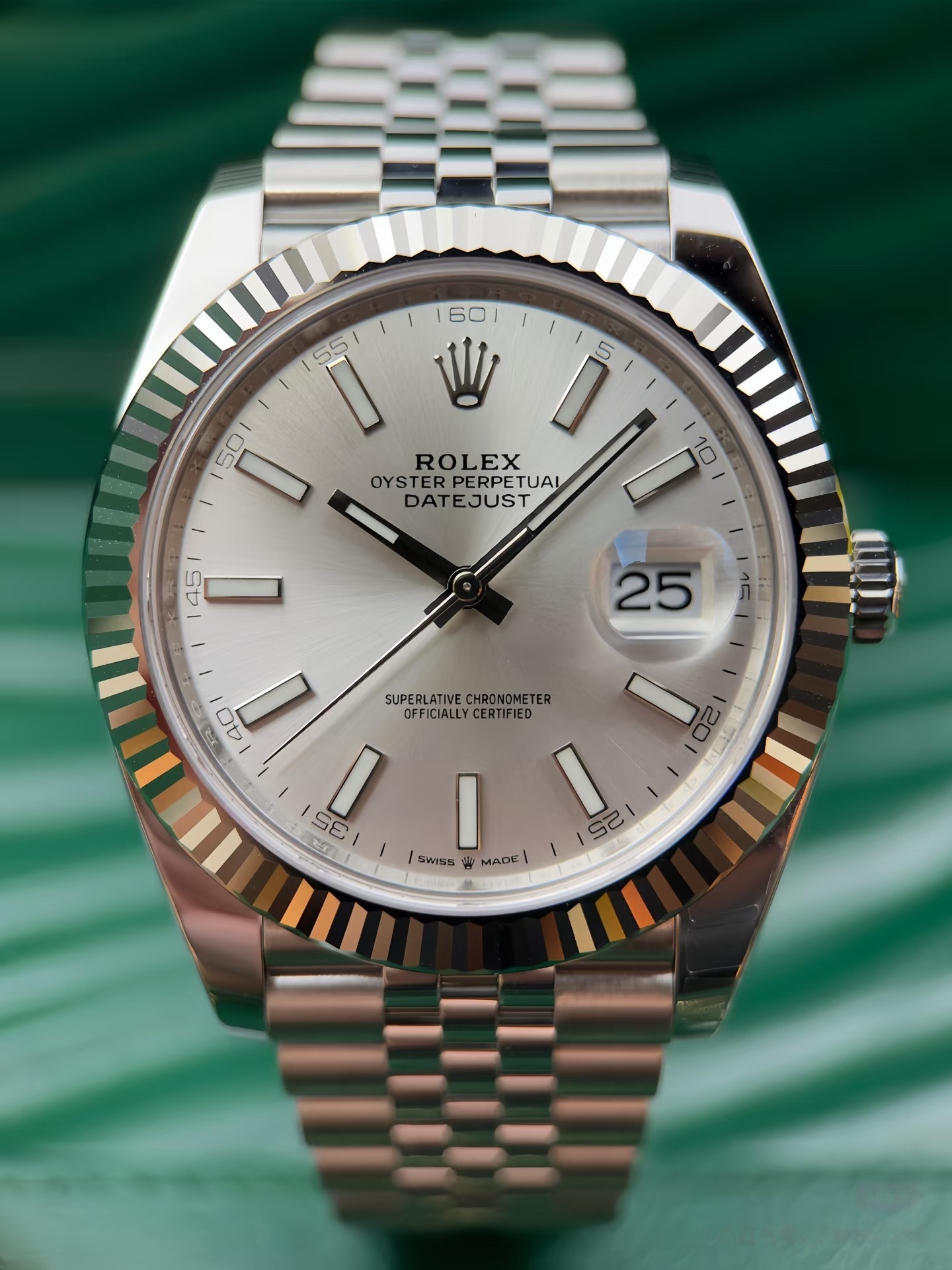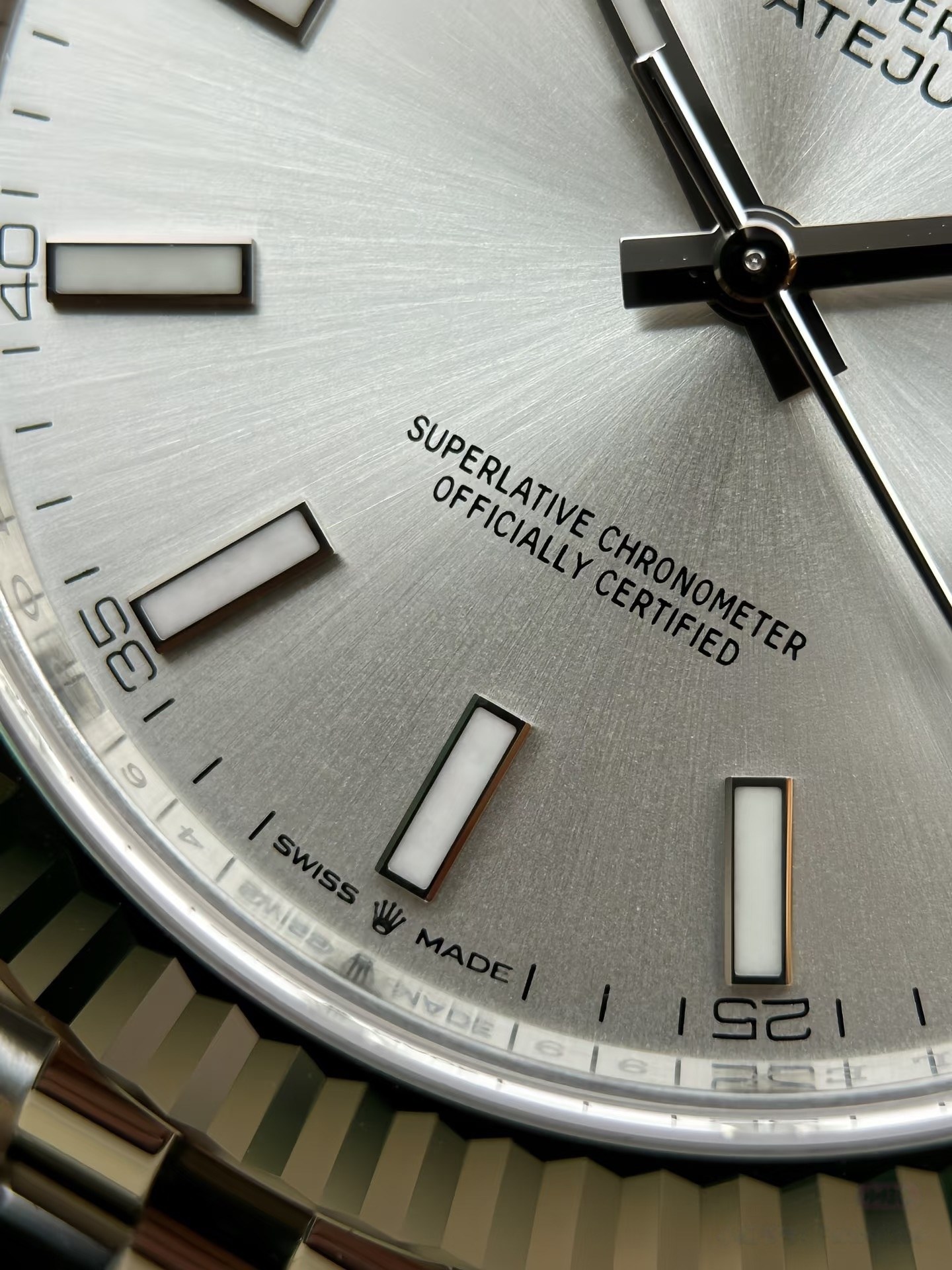 银色太阳纹:采用劳力士独特刷光工艺,光线照射时呈现从中心向外扩散的细腻光影效果