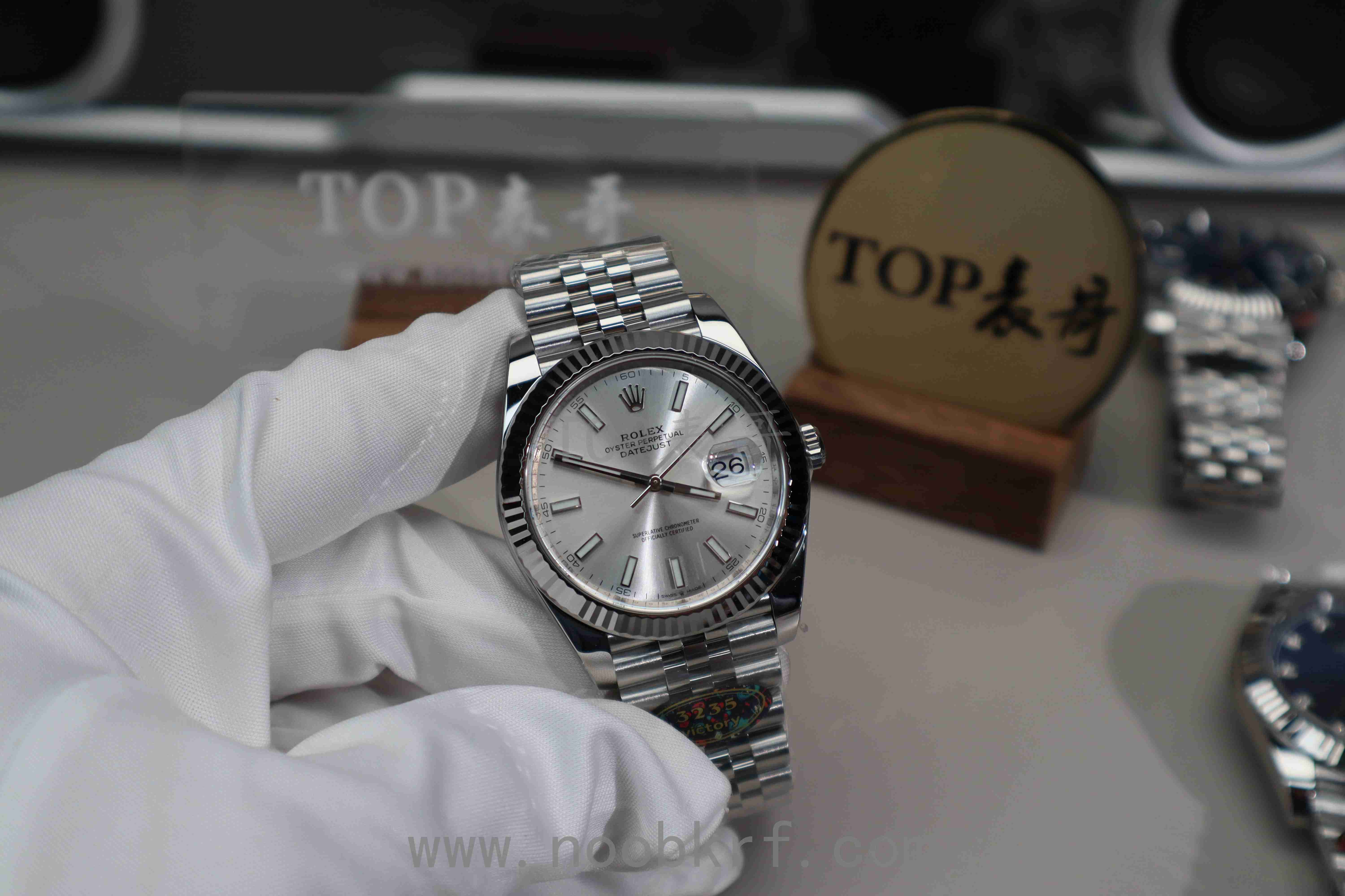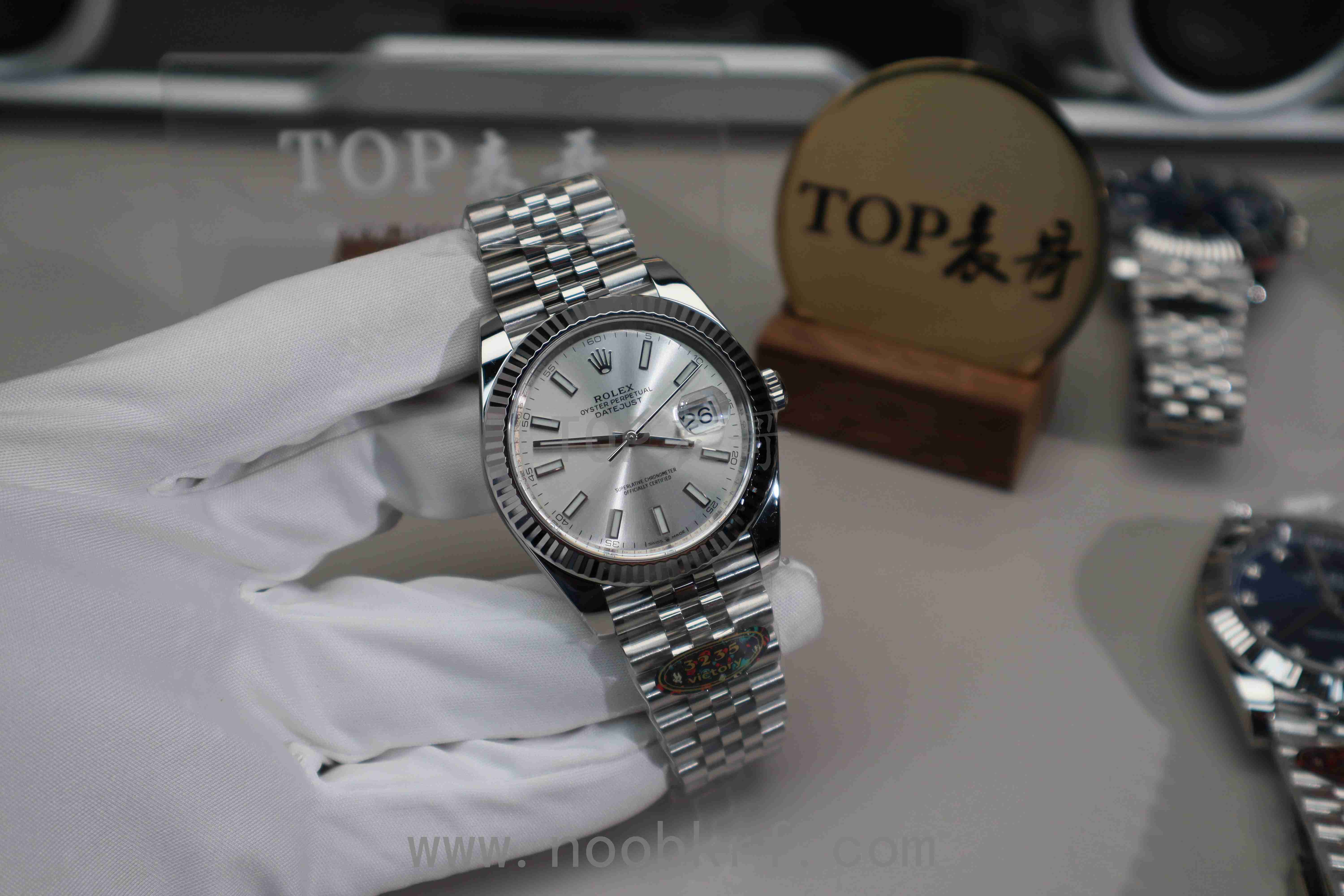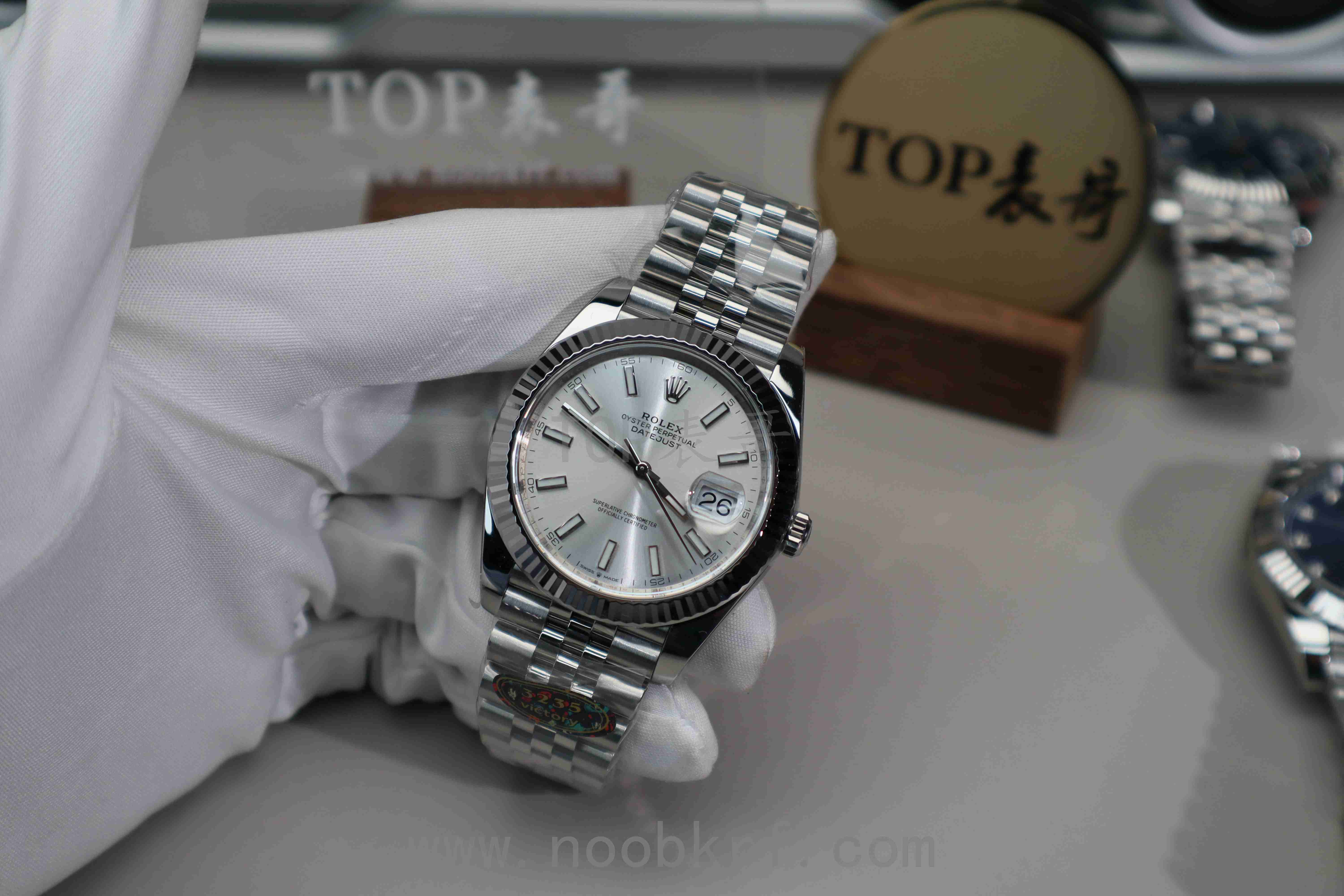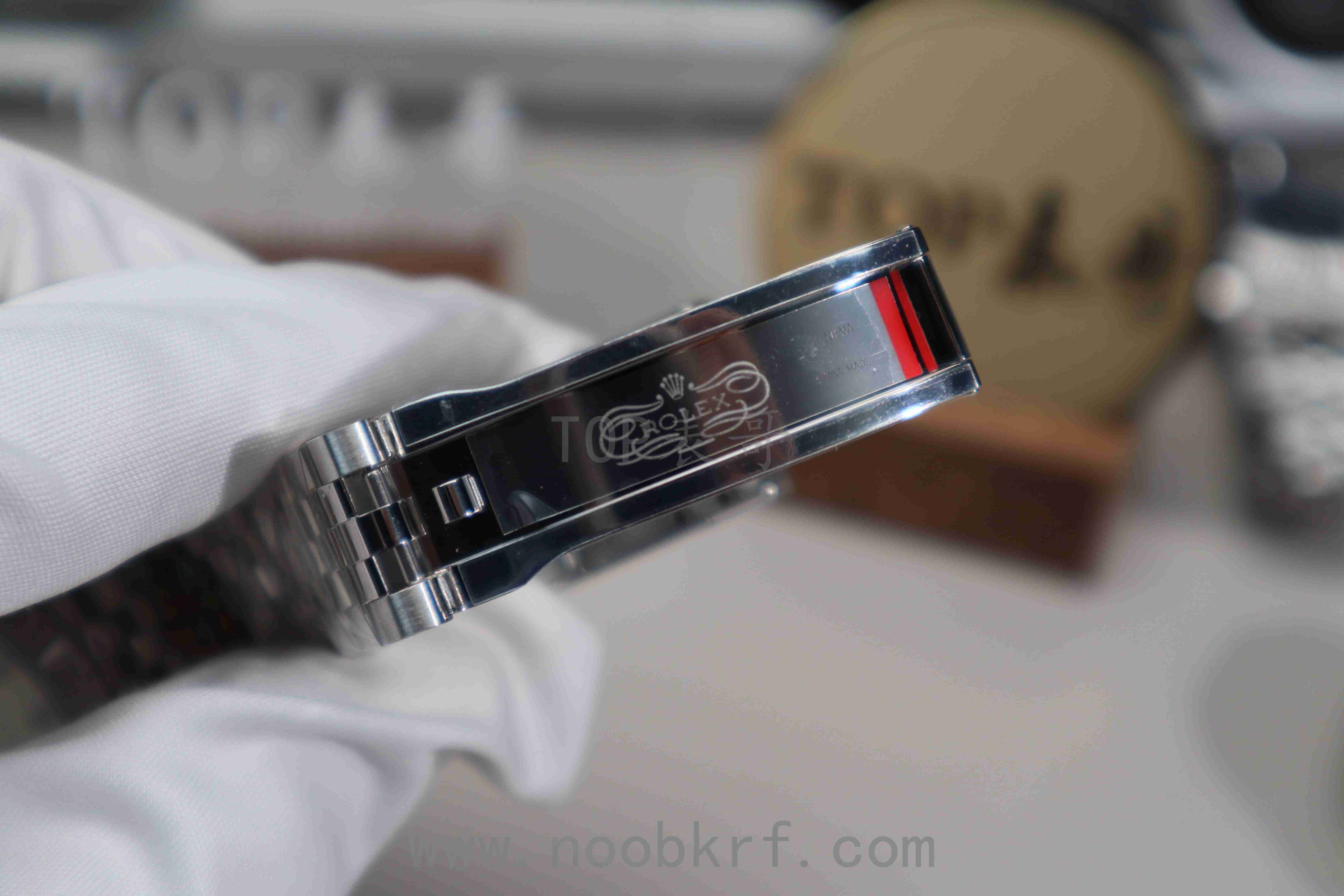 唯一美中不足的是相比较VS工厂的v2版本,外圈上没有进行电镀白金处理,外圈色泽与质感、亮度上有所欠缺,同时在三点位置的泡泡放大镜目前仅有VS工厂做到了对版的偏白光镀膜处理,反观V厂的有点偏蓝光的不足,不过在表壳、指针、中轴方面还是延续了clean工厂的底蕴,并且也是直接搭载了丹东3235机芯,相比较之前的上海3235机芯在稳定性和可靠性上做到了极大的增强。加上V厂的出货速度和拉满的产能铺货量,目前在出货速度这个方面在这一款而言是要比vs好的,如果追求更高的品质那么表哥还是更加推荐VS工厂的v2版本。
