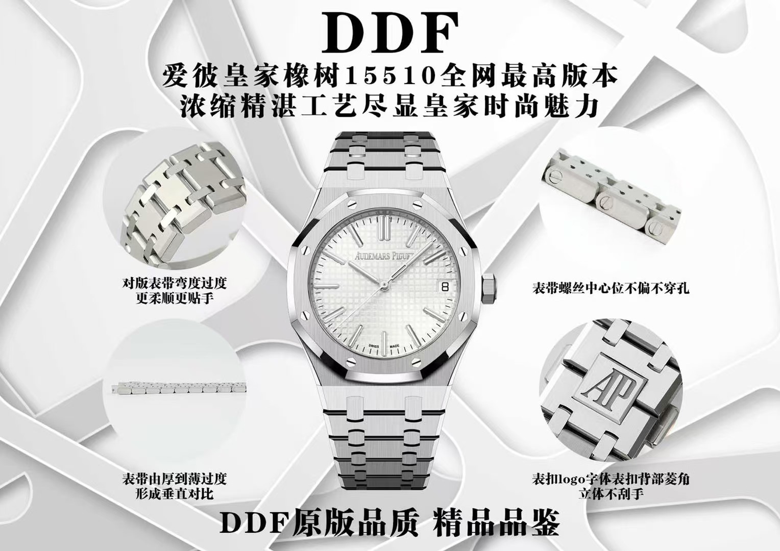 hello,大家好,我是TOP表哥,今天带给大家的腕表评测来自DDF工厂的爱彼皇家橡树15510ST精钢白盘腕表的评测,腕表官方型号:爱彼皇家橡树系列15510ST.OO.1320ST.08腕表。