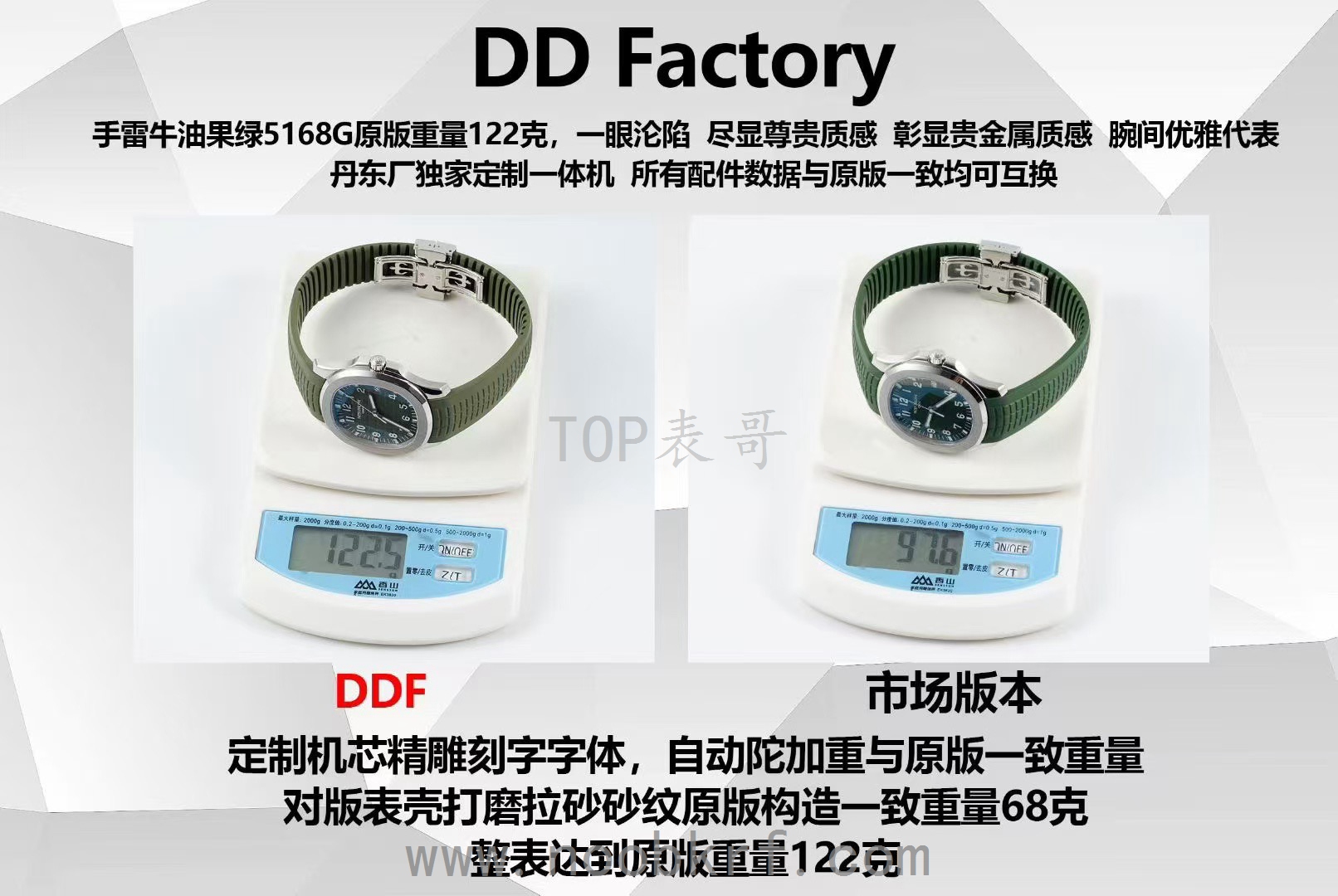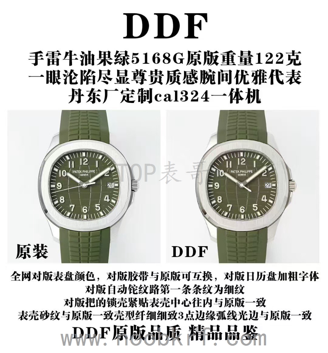 hello,大家好,我是TOP表哥,今天带给大家的腕表对比评测来自DDF工厂的百达翡丽绿手雷5168G-010,又称牛油果的腕表评测。