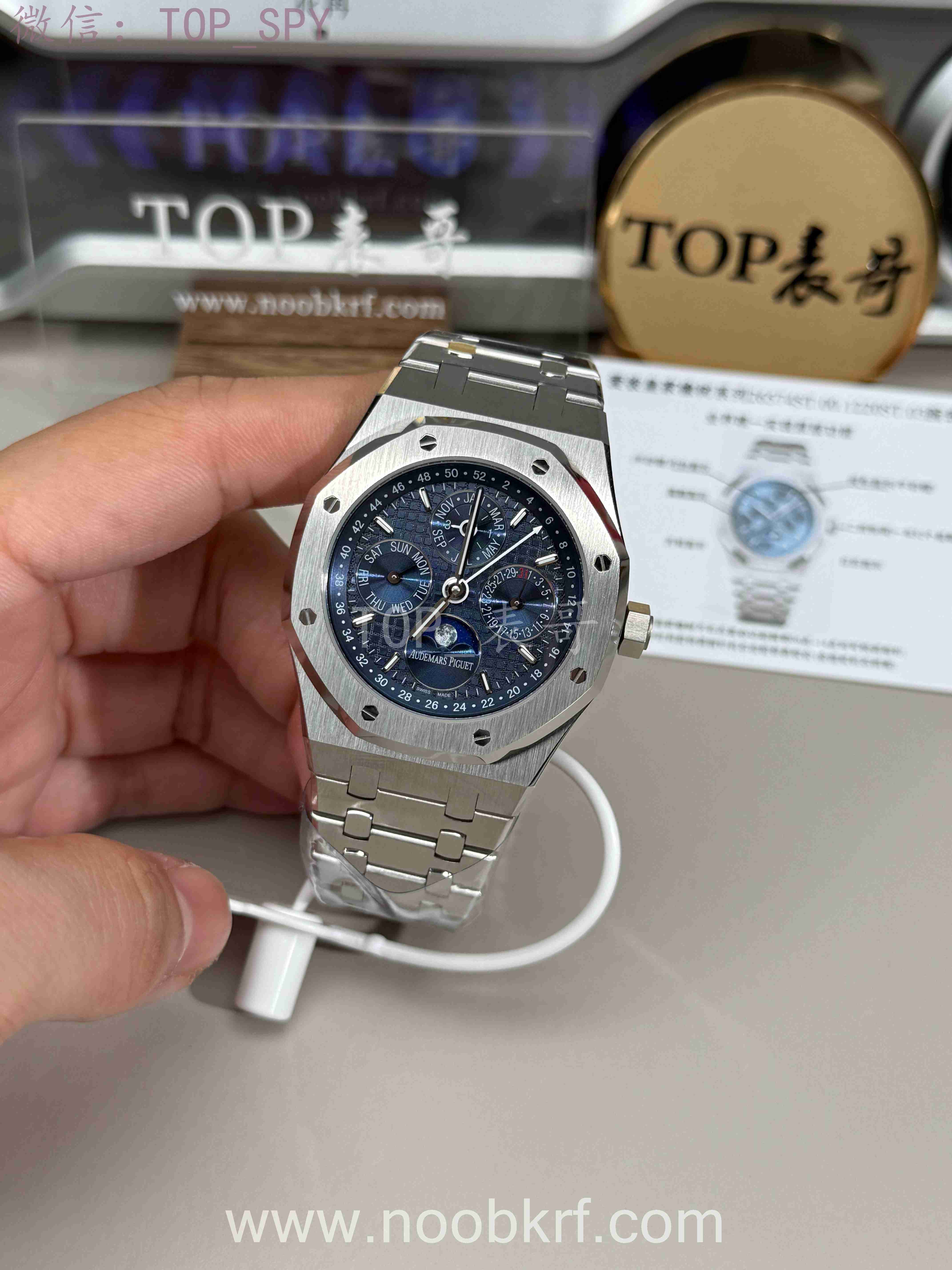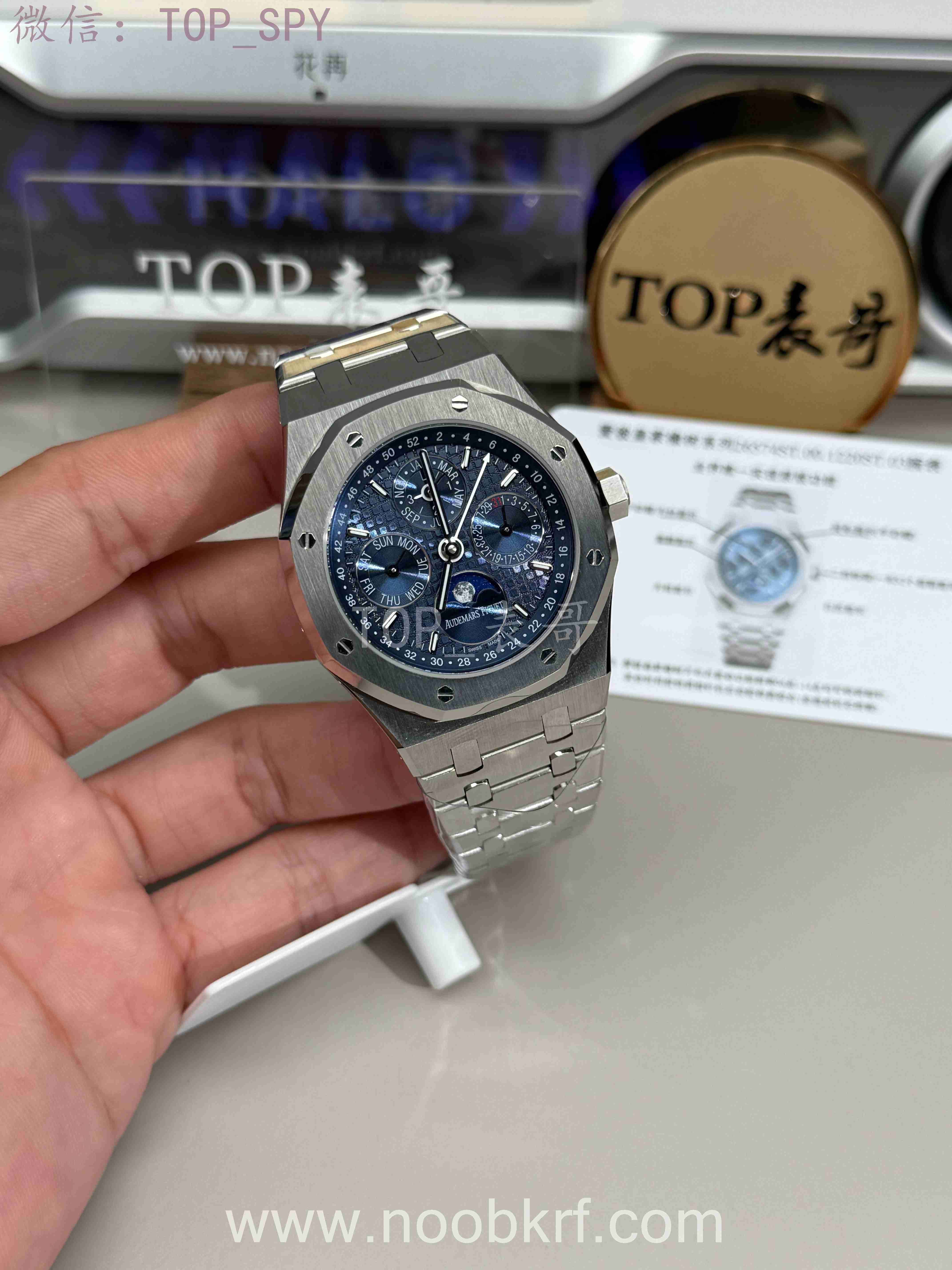 爱彼26574ST.OO.1220ST.01(蓝盘)是皇家橡树系列标杆级超薄自动万年历钢款,融合杰罗·尊达经典设计、顶级复杂制表工艺与实用性能,定位顶级奢华复杂功能腕表,既是商务格调担当,也是腕表藏家追捧的经典藏品,兼顾颜值、工艺与收藏价值,是高端腕表市场“钢款复杂功能”的代表性作品。