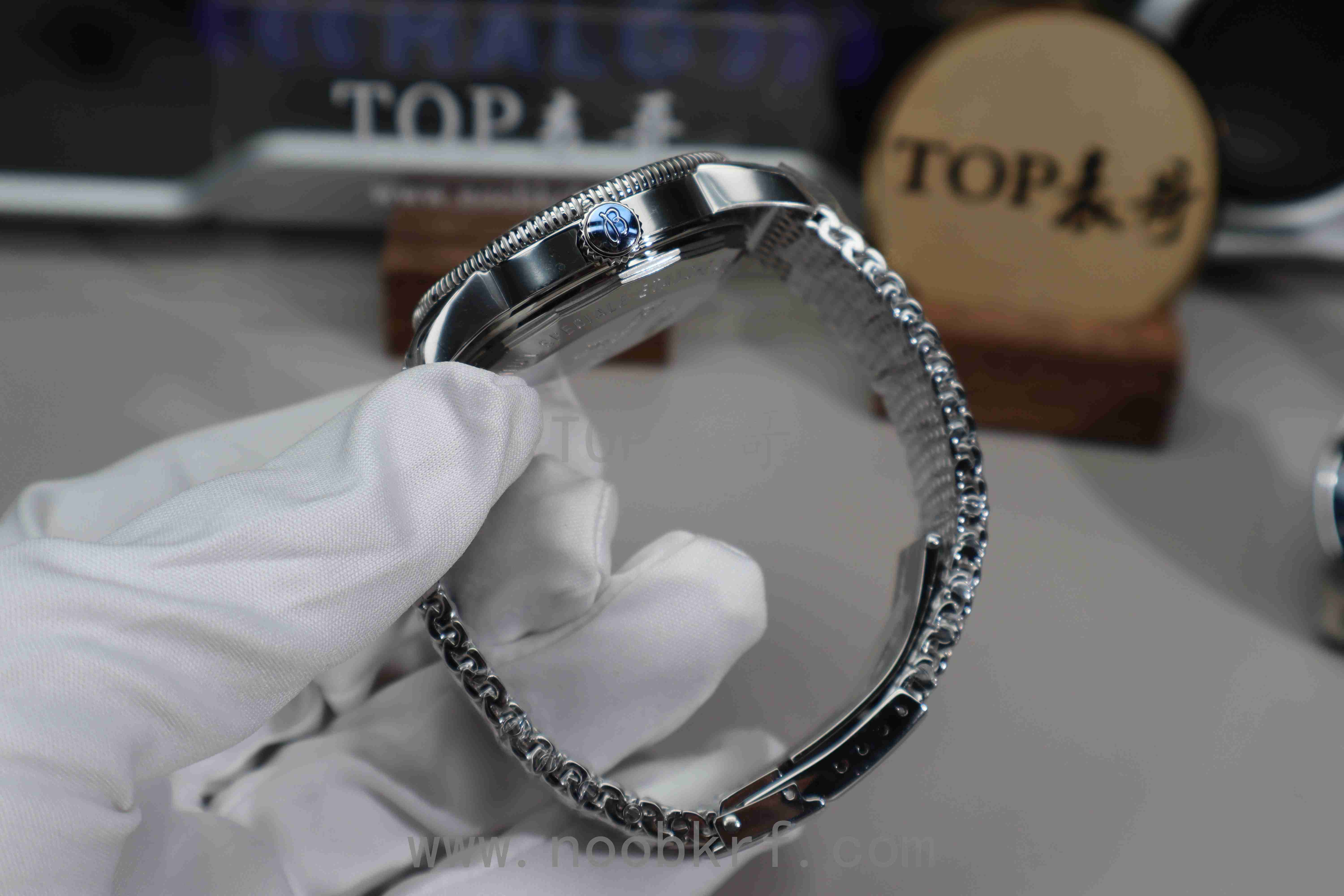 新款海洋文化使用B20机芯,即百年灵版的帝舵MT5612机芯。百年灵B20机芯和帝舵MT5612原版的最大变化,就是百年灵对这枚机芯进行了打磨装饰。帝舵由于受到定位影响,帝舵的机芯不能进行太多的打磨装饰,不然的话就超过帝舵的公价范围了。所以帝舵自用的MT5612机芯,机芯夹板上只有比较简单的喷砂和拉丝。百年灵对B20机芯进行了日内瓦条纹装饰,对机芯上的刻字进行了鎏金处理。虽然百年灵海洋文化也是实心底盖,看不到机芯,但打磨装饰都是有的。不过在GF工厂上搭载的海鸥机芯,得益于密底的设计,对于复刻版来说确实是极大的加分项。