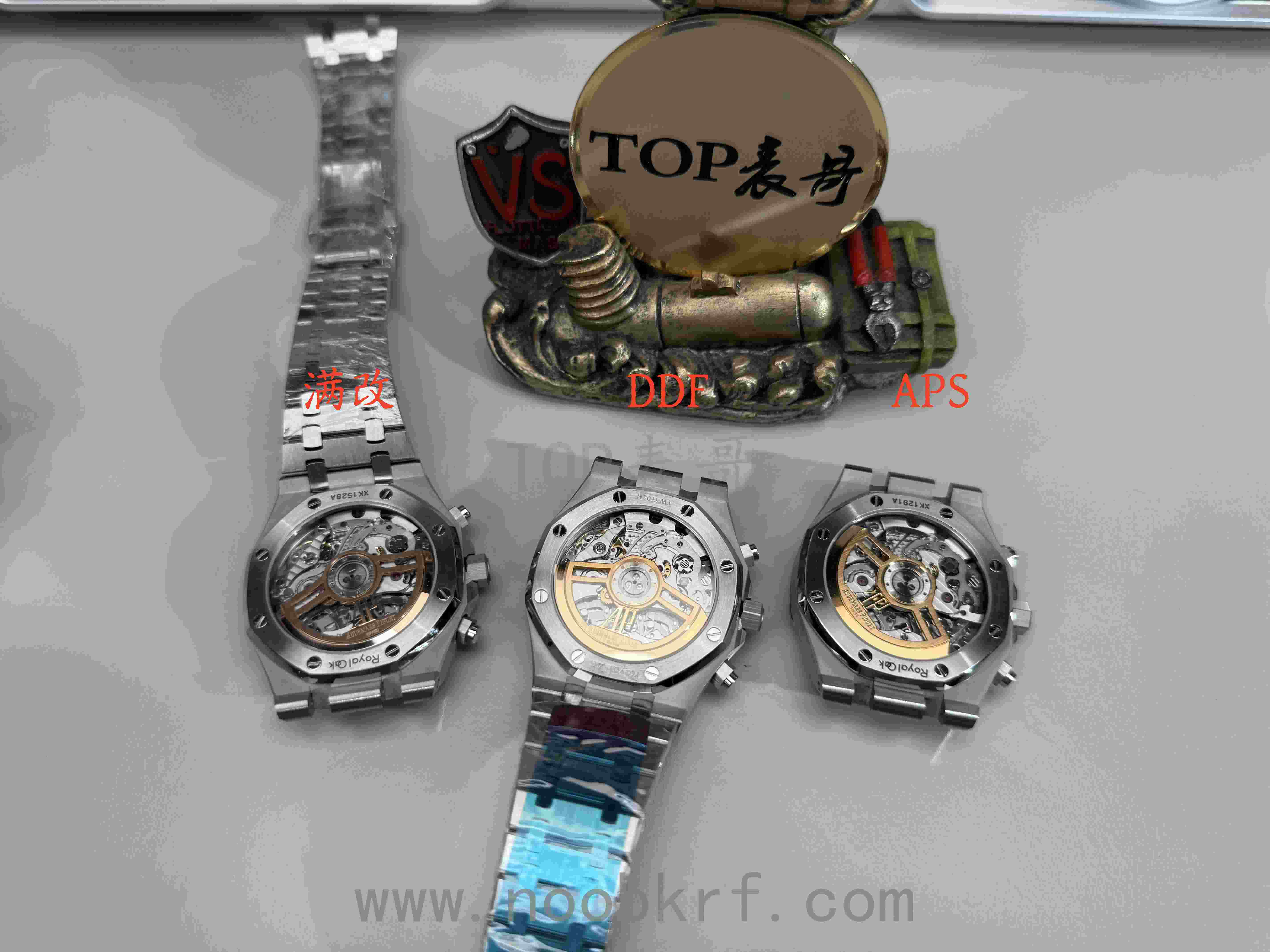 简单总结一下,DDF工厂的爱彼26240ST精钢黑盘腕表,在表壳的工艺处理上的确要比APS工厂的要好,外圈的拉丝相比较APS会更加细腻,外圈螺丝良品率非常高,一字开口居中,不过在盘面的整体颜色还原程度上不如APS工厂做得优秀,特别是在小表盘的CD纹路上细节处理不如APS工厂的做到优秀,在机芯方面毫无疑问的是一体的4401机芯,结构上和功能上是对版的,不过在夹板刻字上并非是真正意义上的真刻字,这一点明显不如APS的上海4401机芯做工优秀,更何况现在APS工厂在爱彼26240的v2版本上升级了无卡度真砝码装置,机芯方面APS是要比DDF的丹东4401机芯要更加出色的。