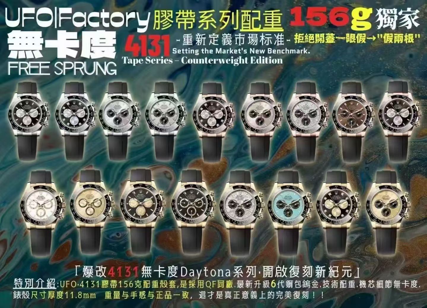 UFO新品上市 4131膠帶無卡度 膠帶系列 重新定義復刻市場標準 告別拆蓋一眼假 市場 (2跟假)膠帶配重(157克)提示:與QF同殼套配件 可以包金!