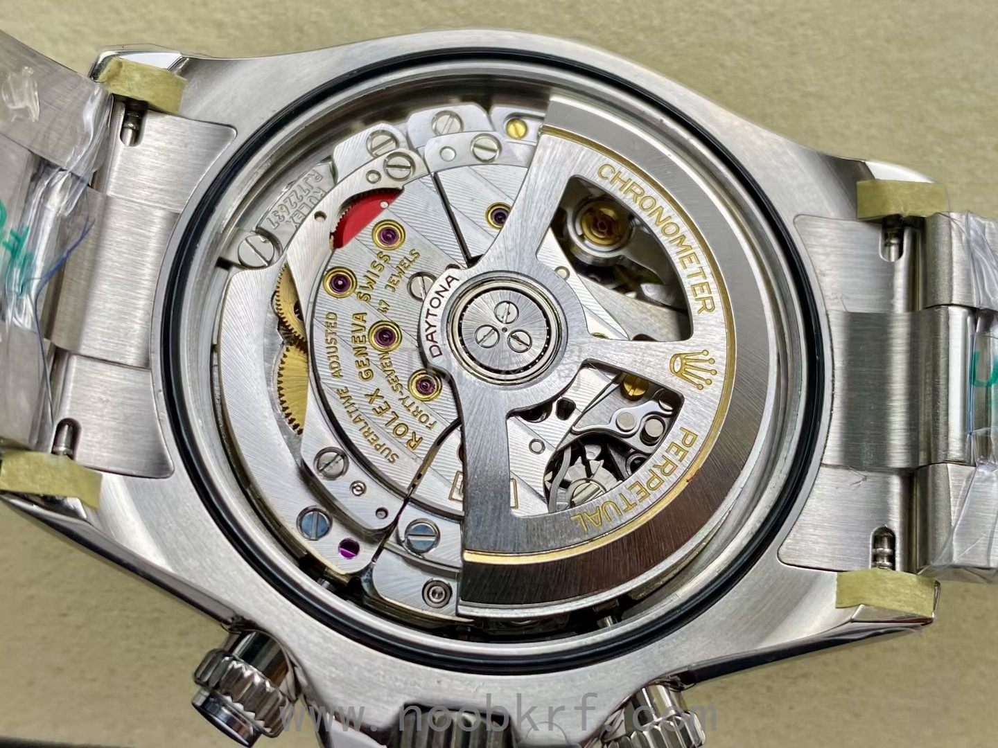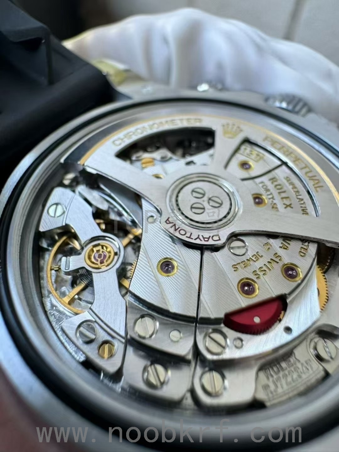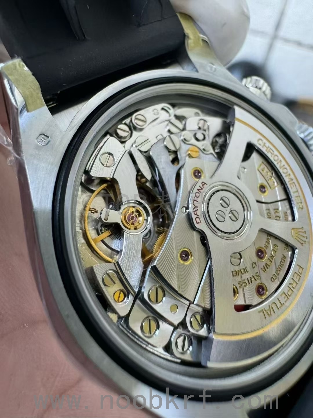 这一点表哥感觉就是有点鸡肋,劳力士绝大部分腕表都是密底的设计,迪通拿里面目前透底的热门款式也就是新款冰蓝迪和勒芒限量款,其他的基本均为密底设计。UFO工厂这一点机芯改为无卡度尺设计,在工艺技术上来说确实是有进步的,不过对于密底的复刻版来说没有什么特别的意义,反而在成本上增加了不少,有点得不偿失的感觉,在外观上和当下热门的VS工厂、clean工厂(C plus工厂)在不相伯仲之间,不过售价上贵了不少,反而是缺少了竞争力。毕竟单单一个卡度尺并不能改变了这是一个丹东复刻机芯的基础,在机芯材质、打磨程度上是完全不一样水平的东西,虽然丹东4131机芯结构上同步原版,动能储存能够做到70小时,不过机芯打磨的细腻程度就是有很大的差距,所以表哥当下还是建议大家选择VS工厂的劳力士新款迪通拿版本。